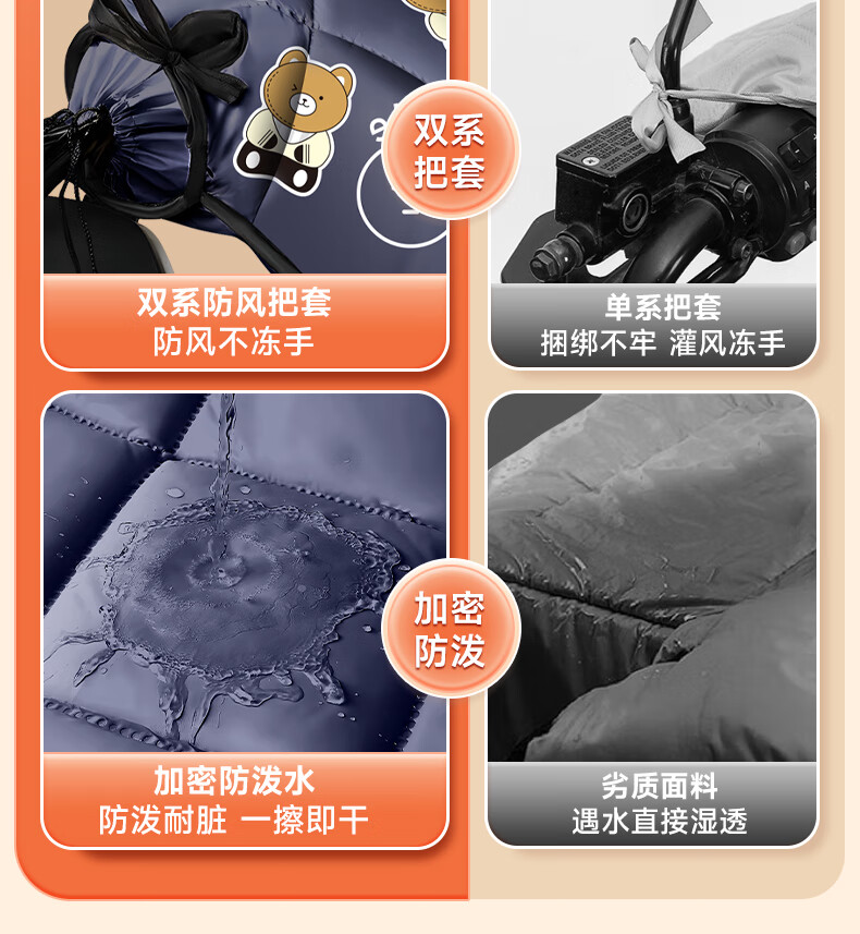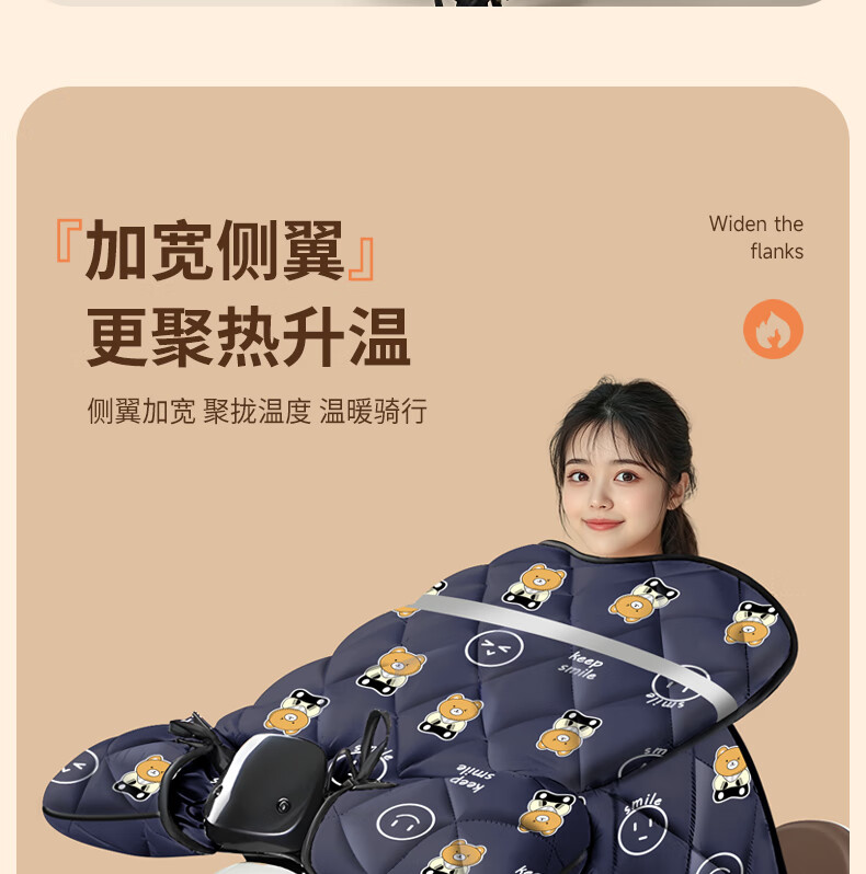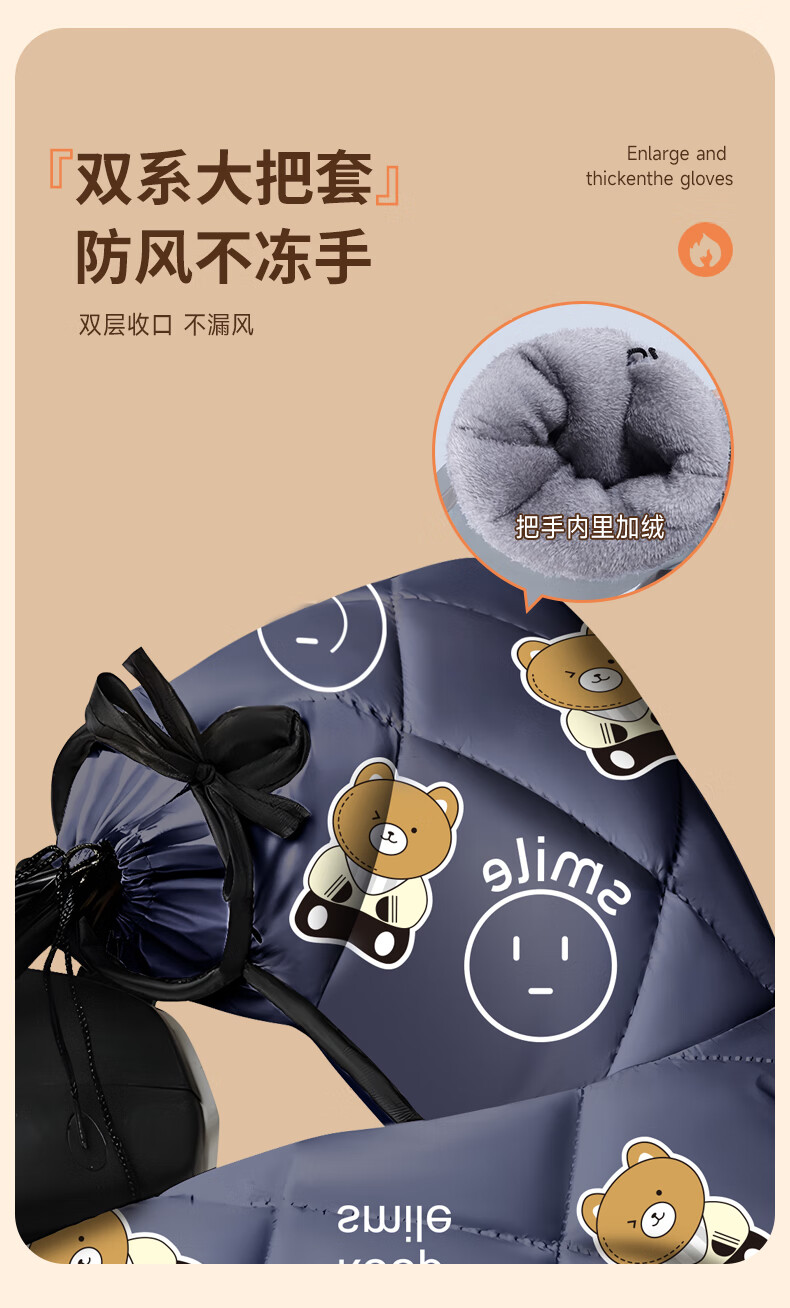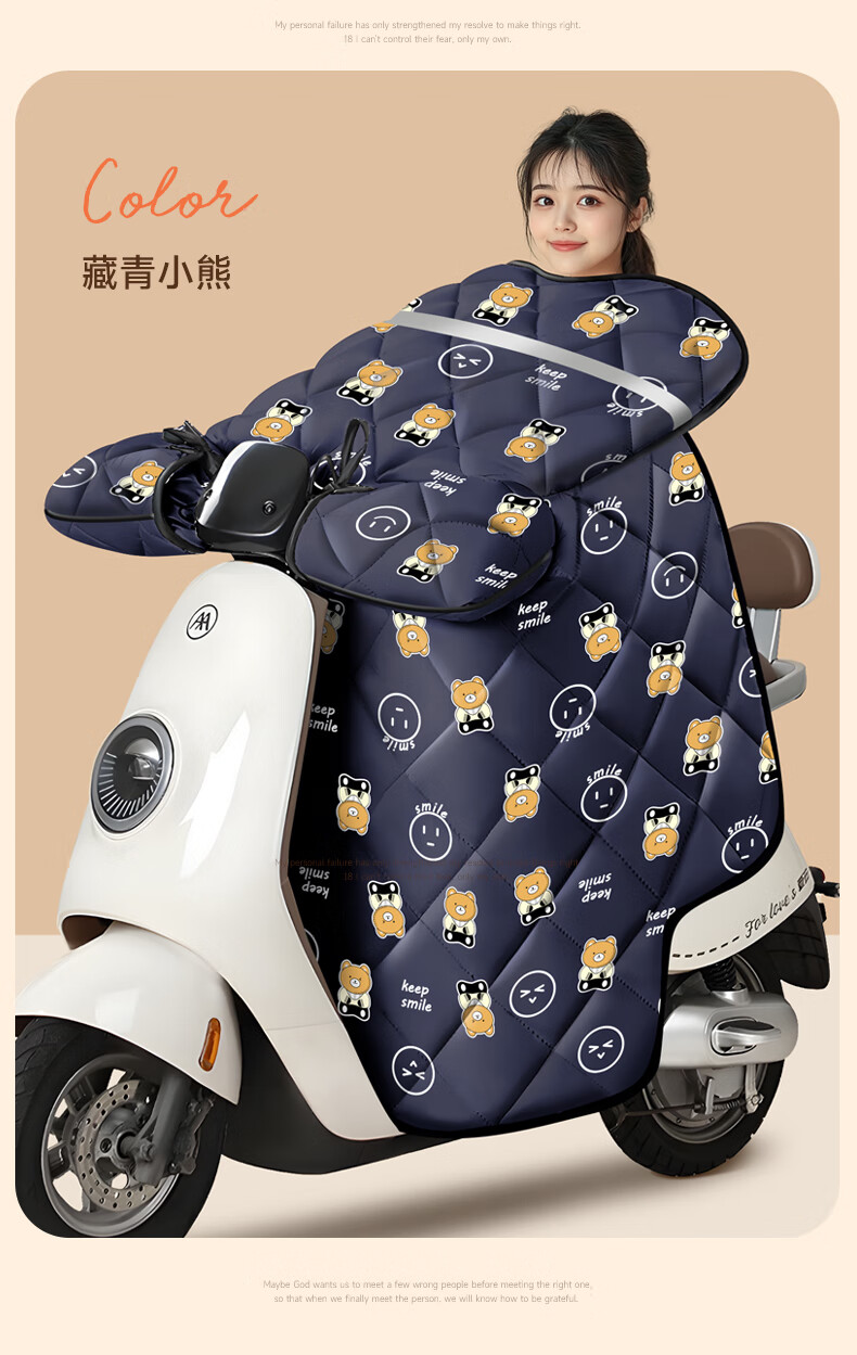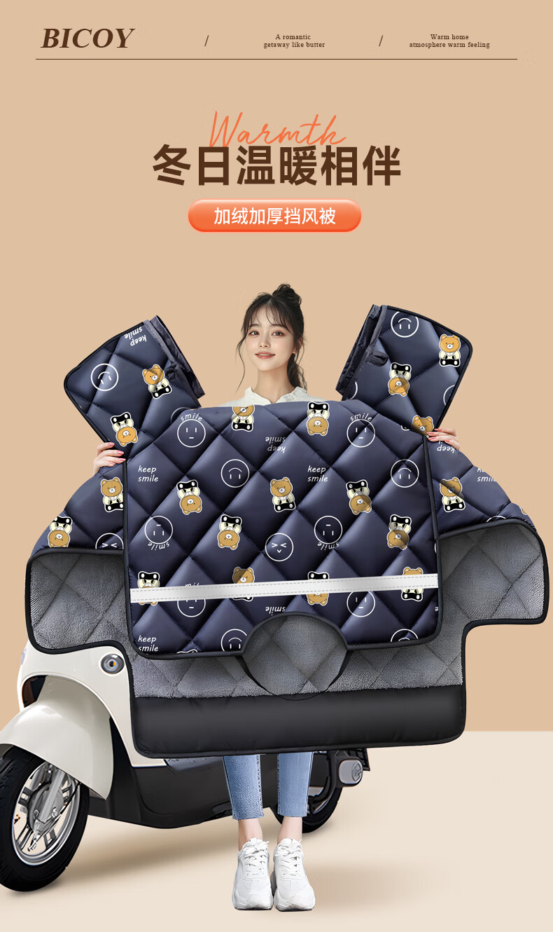 百草园电动车挡风被冬季加大加厚加宽电瓶车挡风罩加绒摩托车挡风篷小熊