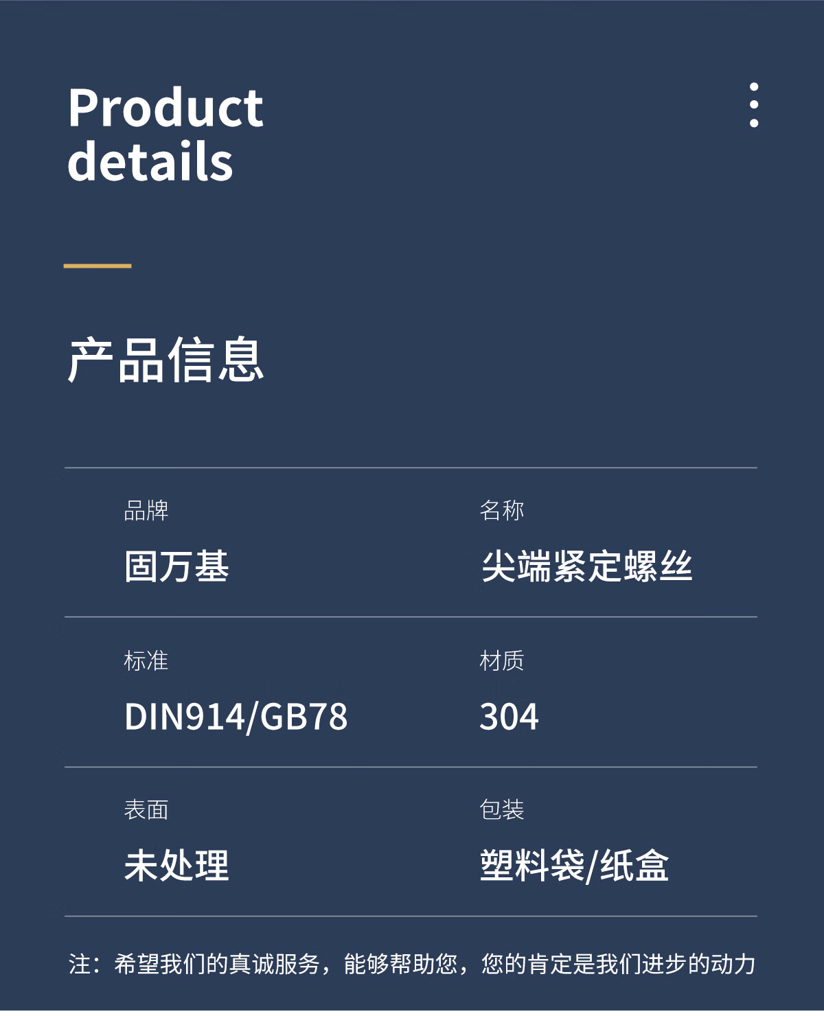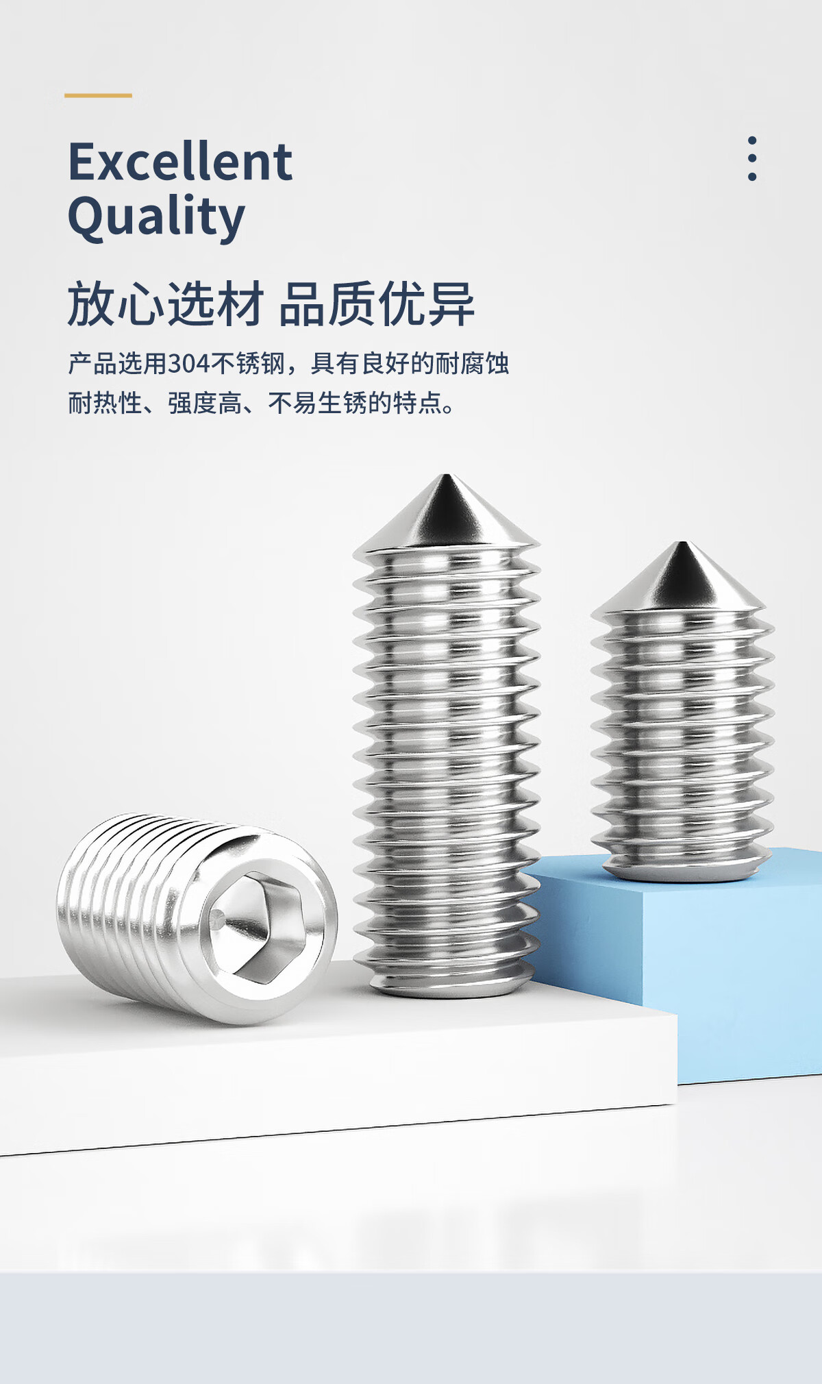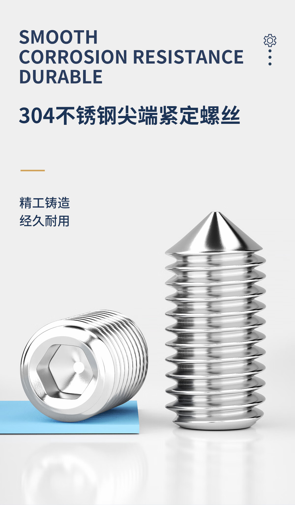 固万基(GUWANJI)304不锈钢内六角尖端紧定螺钉DIN914无头机米螺丝顶丝M2M3M4-M16 M2x3[100个]