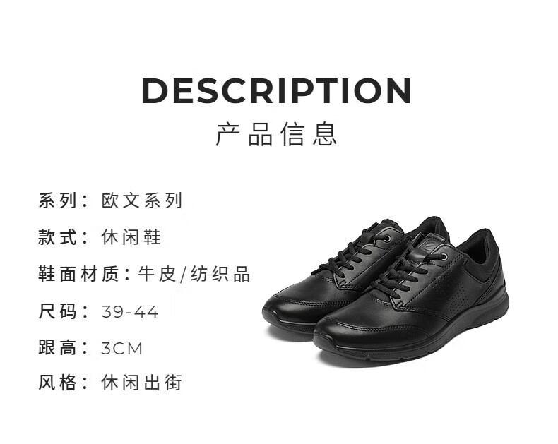 爱步(ECCO)休闲皮鞋男运动鞋健步鞋 欧文511734 51052黑色 41送男友礼物