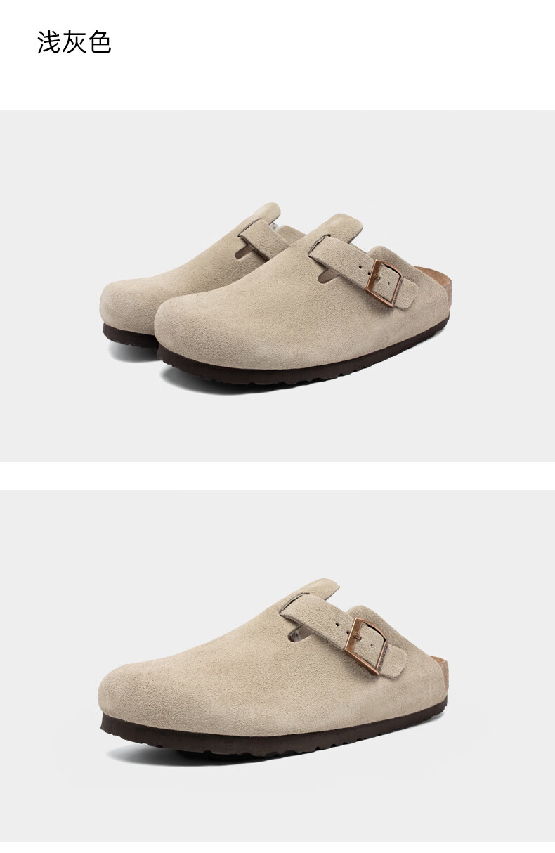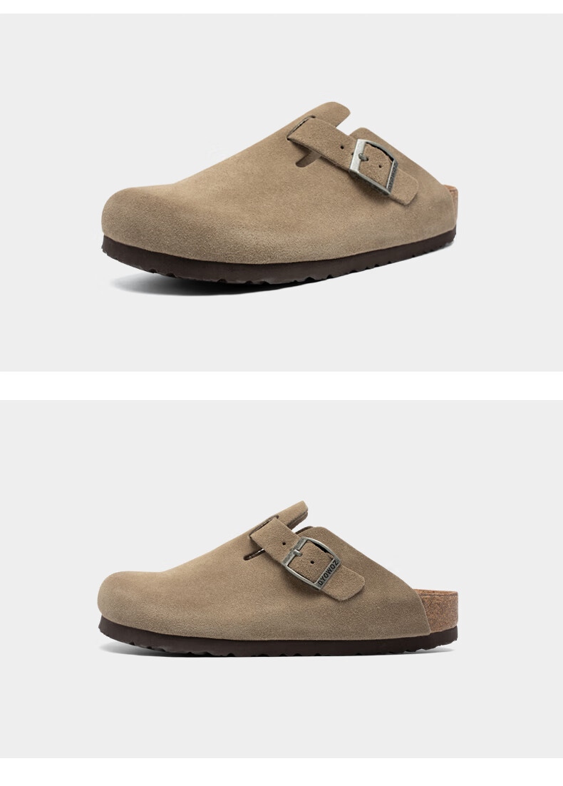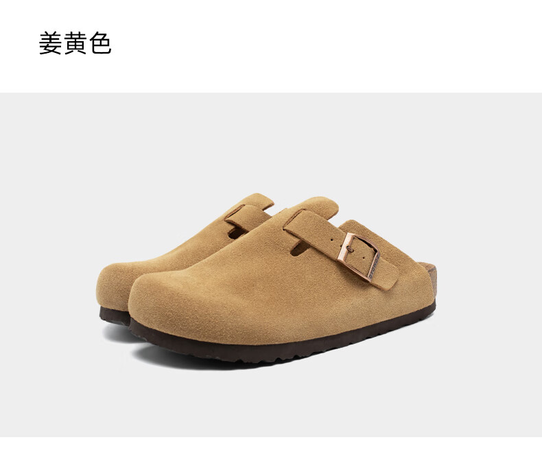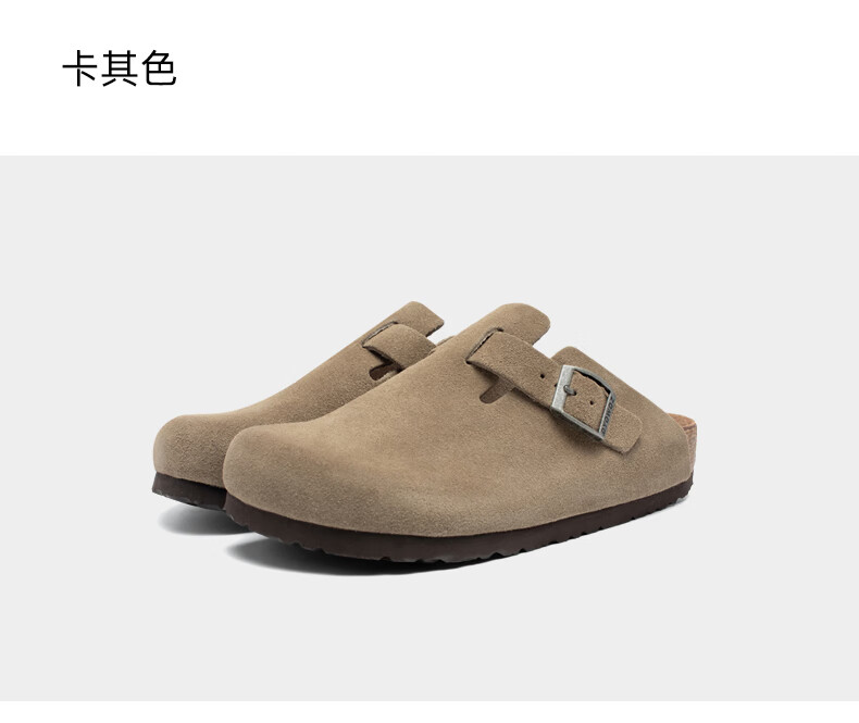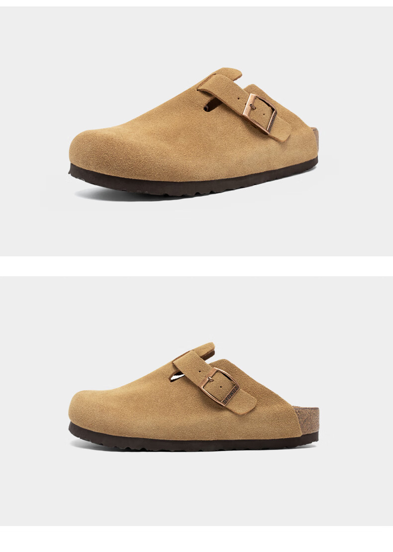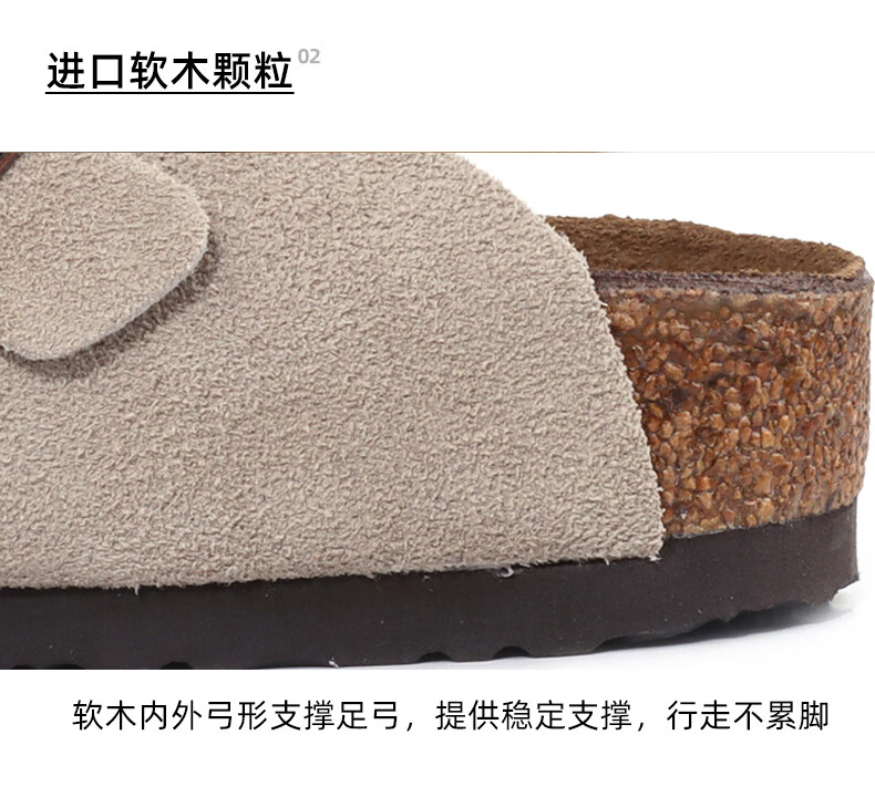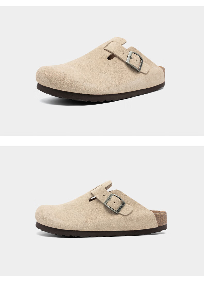 东园物作软木拖鞋真皮休闲日系时尚百搭外穿防滑情侣款Boston半包勃肯鞋 沙色 37 正码