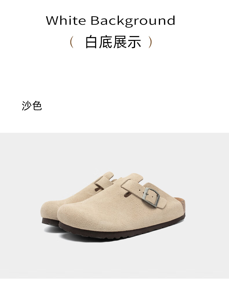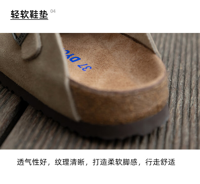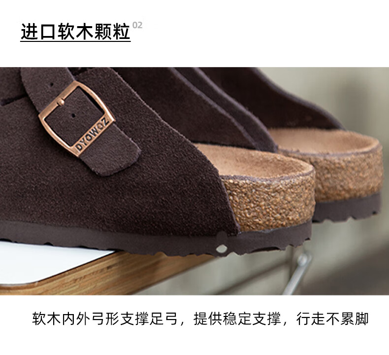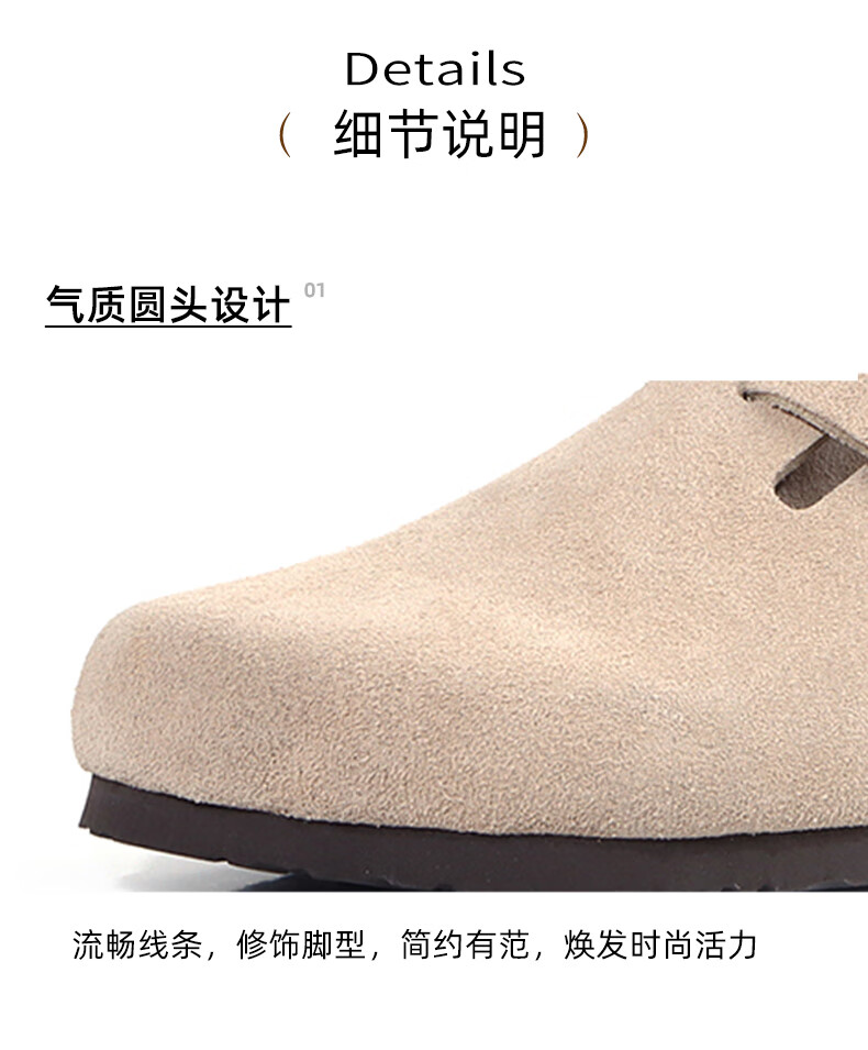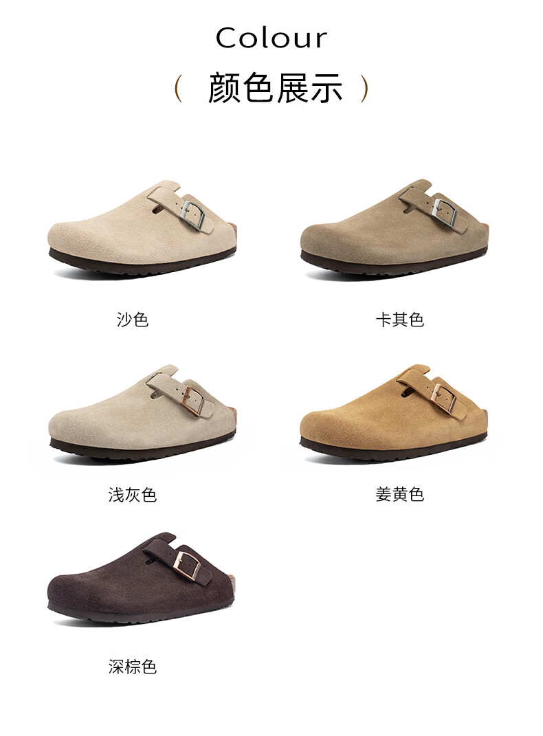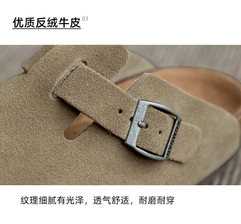 东园物作软木拖鞋真皮休闲日系时尚百搭外穿防滑情侣款Boston半包勃肯鞋 沙色 37 正码