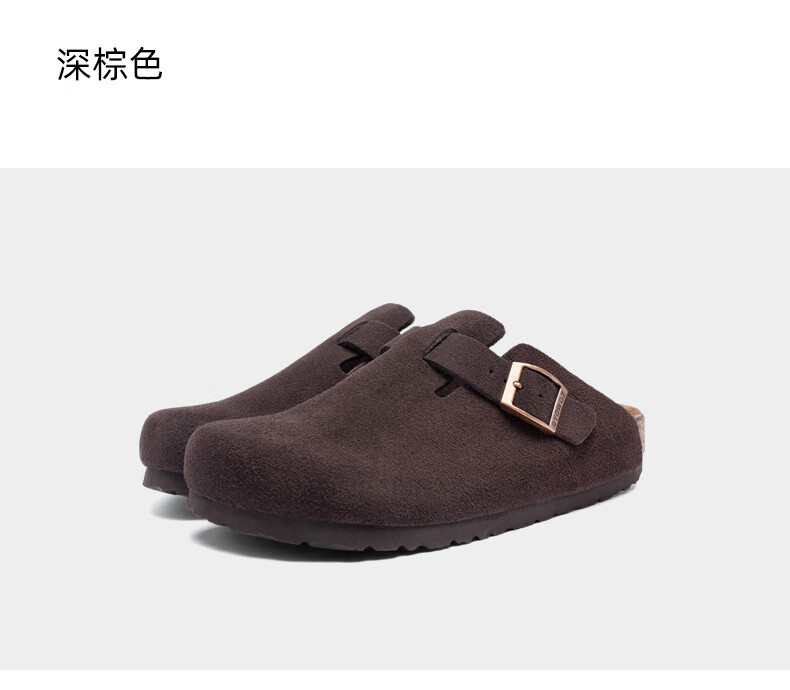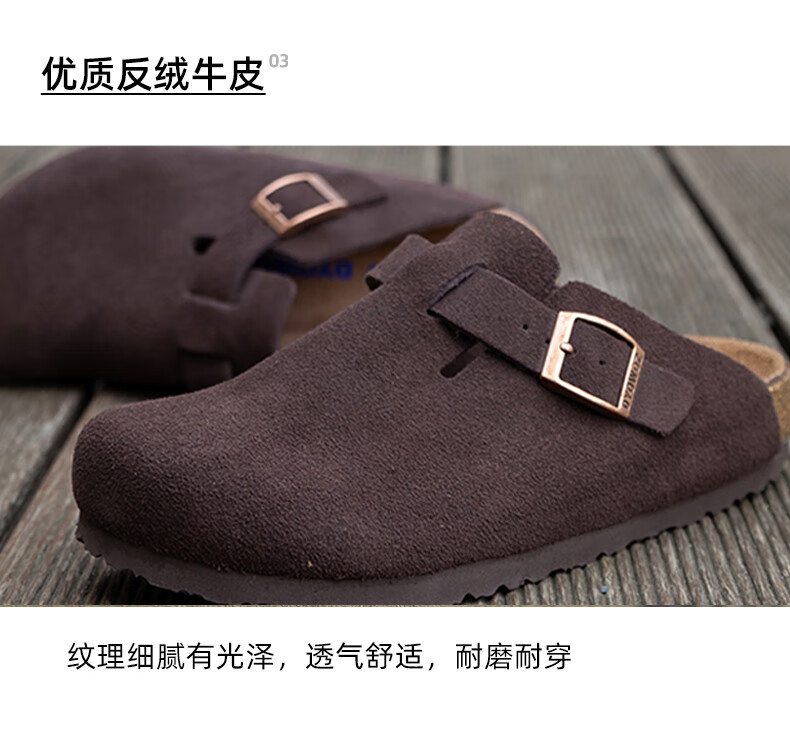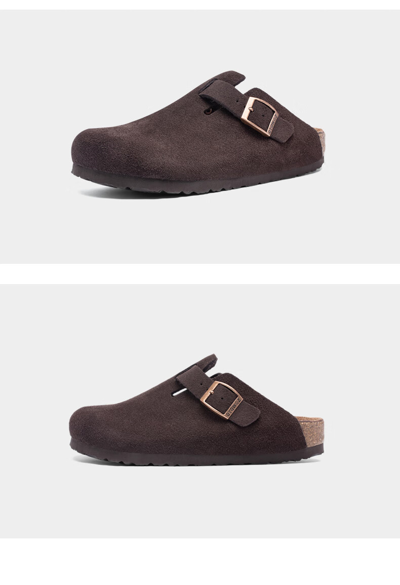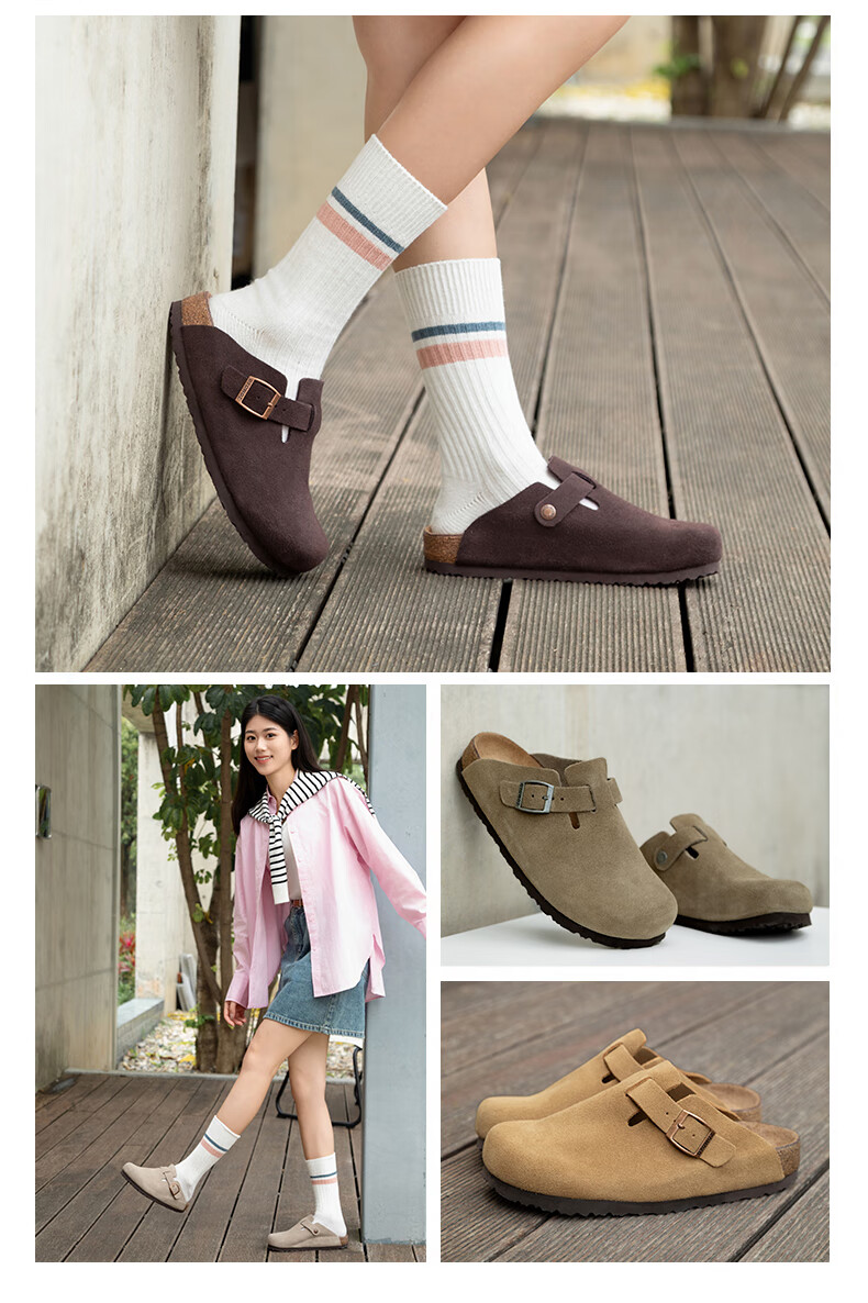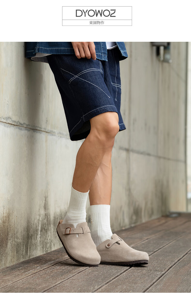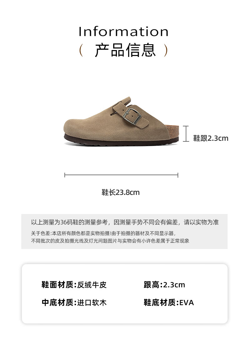 东园物作软木拖鞋真皮休闲日系时尚百搭外穿防滑情侣款Boston半包勃肯鞋 沙色 37 正码