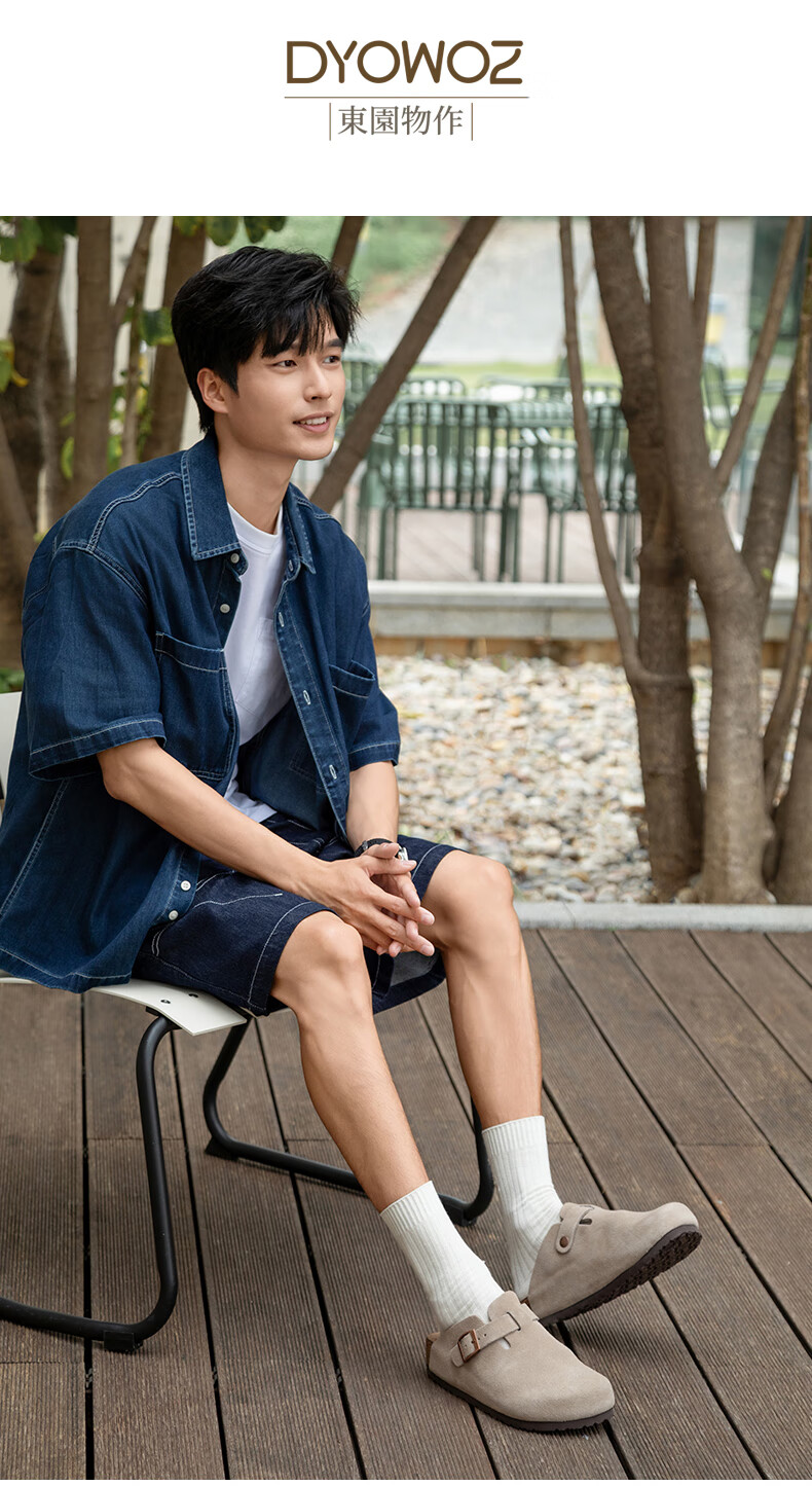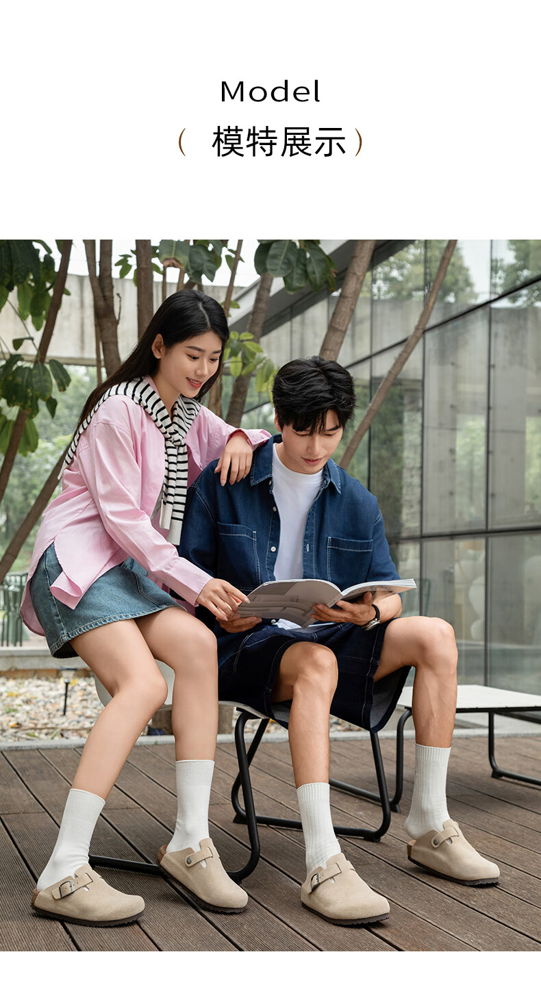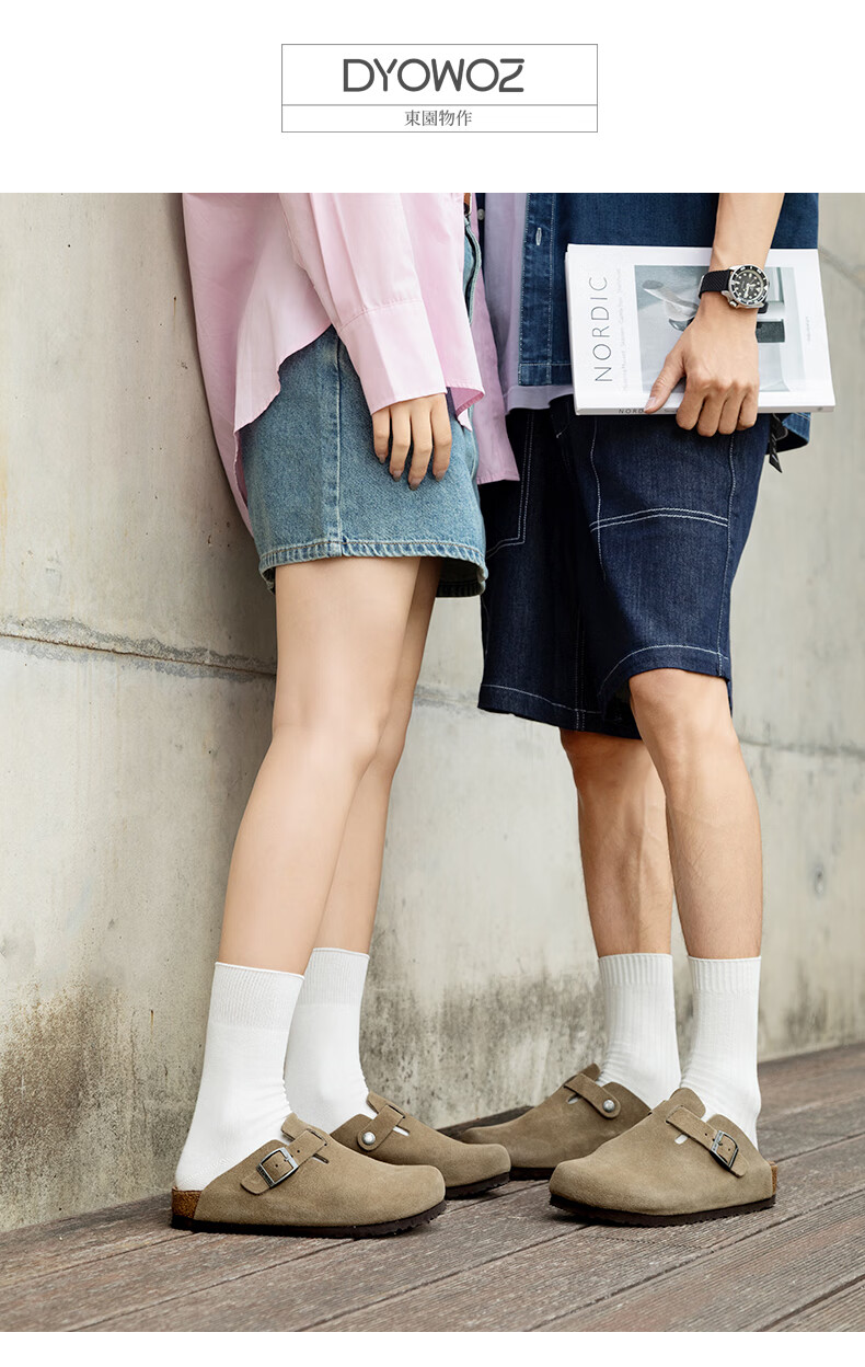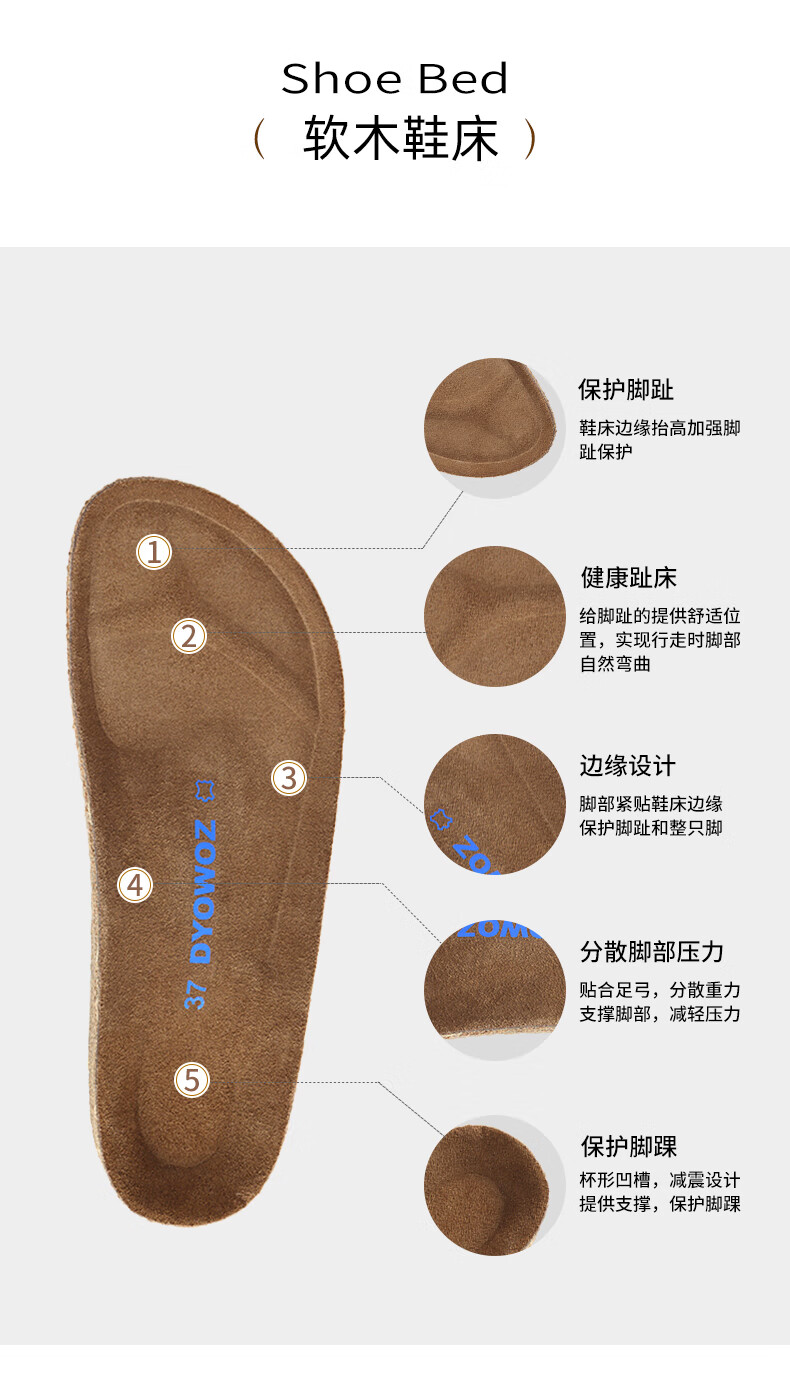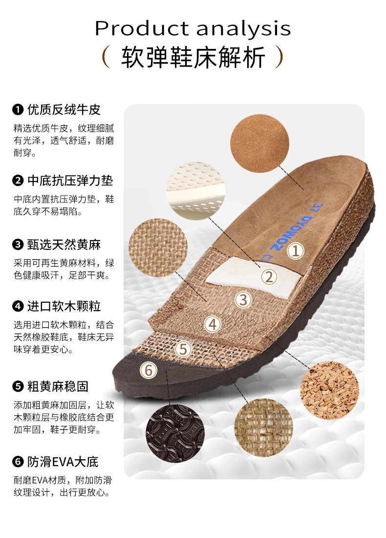 东园物作软木拖鞋真皮休闲日系时尚百搭外穿防滑情侣款Boston半包勃肯鞋 沙色 37 正码