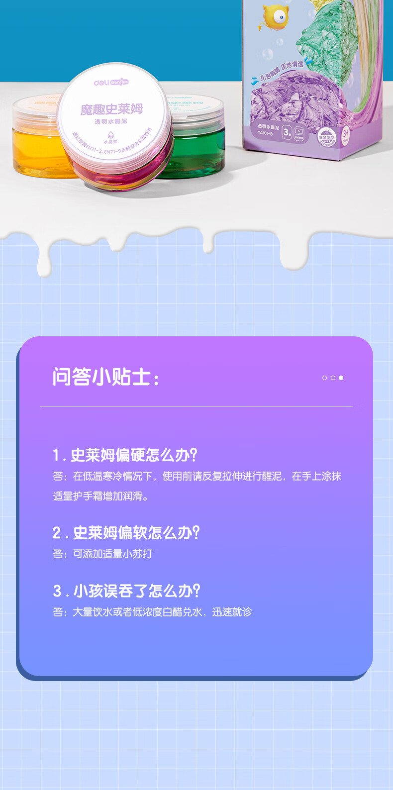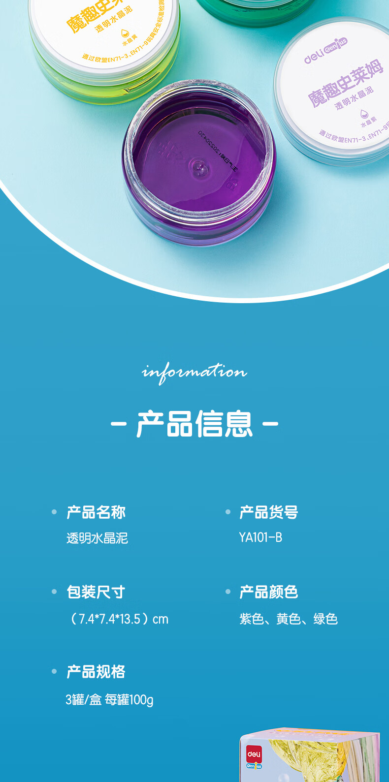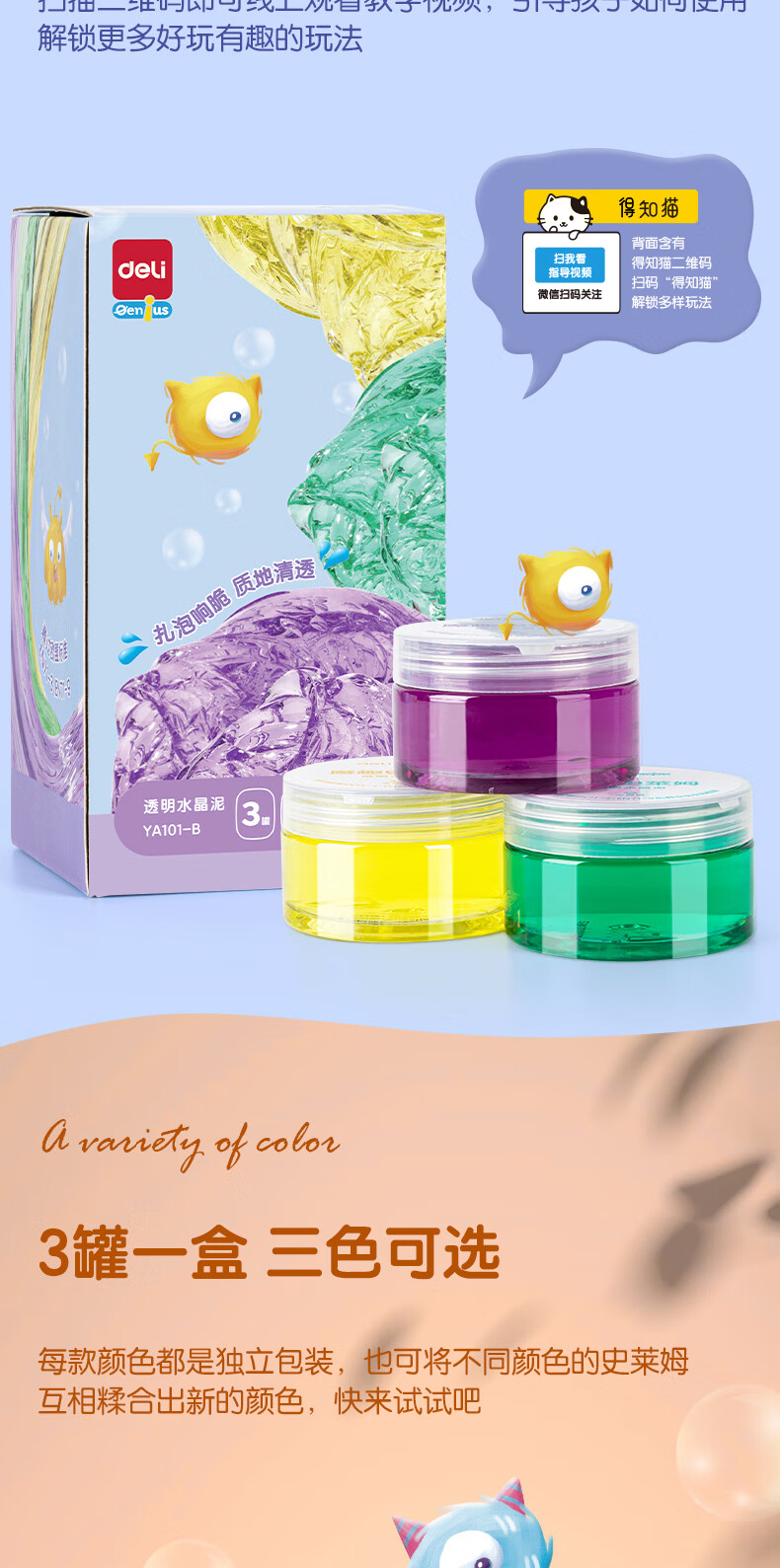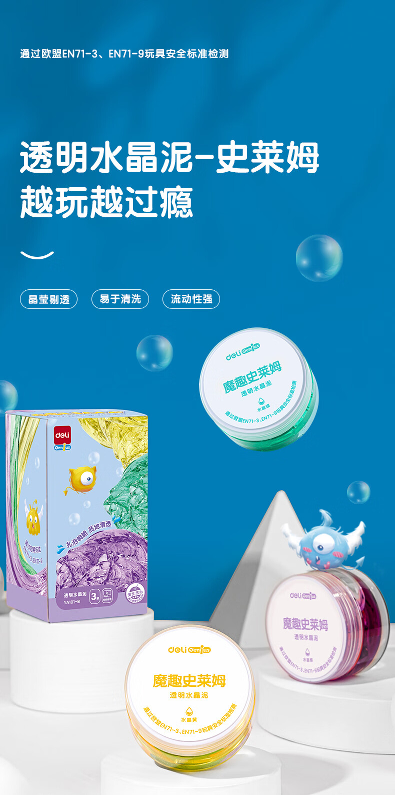 得力(deli)3杯装水晶泥手工DIY橡皮泥粘土黏土解压玩具史莱姆泡泡泥彩泥男女孩毕业儿童节文具生日礼物