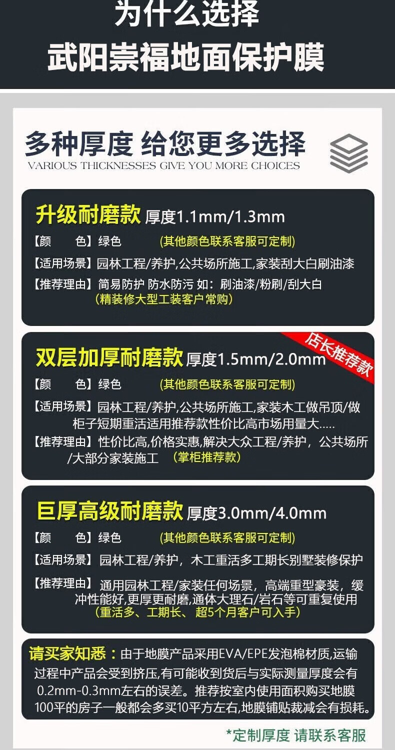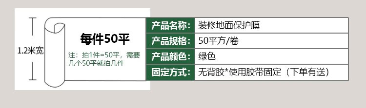 武阳崇福地面保护膜装修加厚防滑耐磨瓷砖保护膜地板防护垫EVA地砖保护膜 升级巨厚款绿EA棉4.0mm厚 150平方240米专用胶带+美工刀