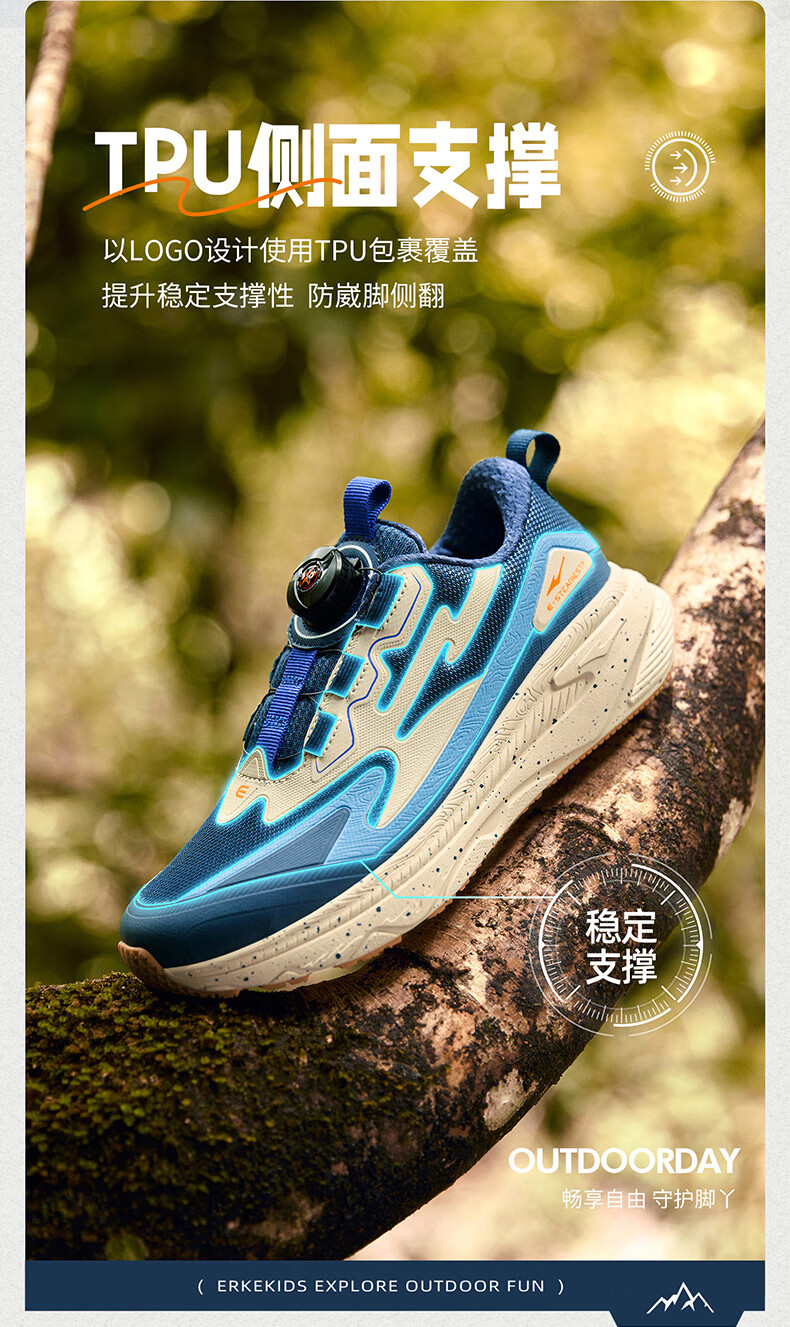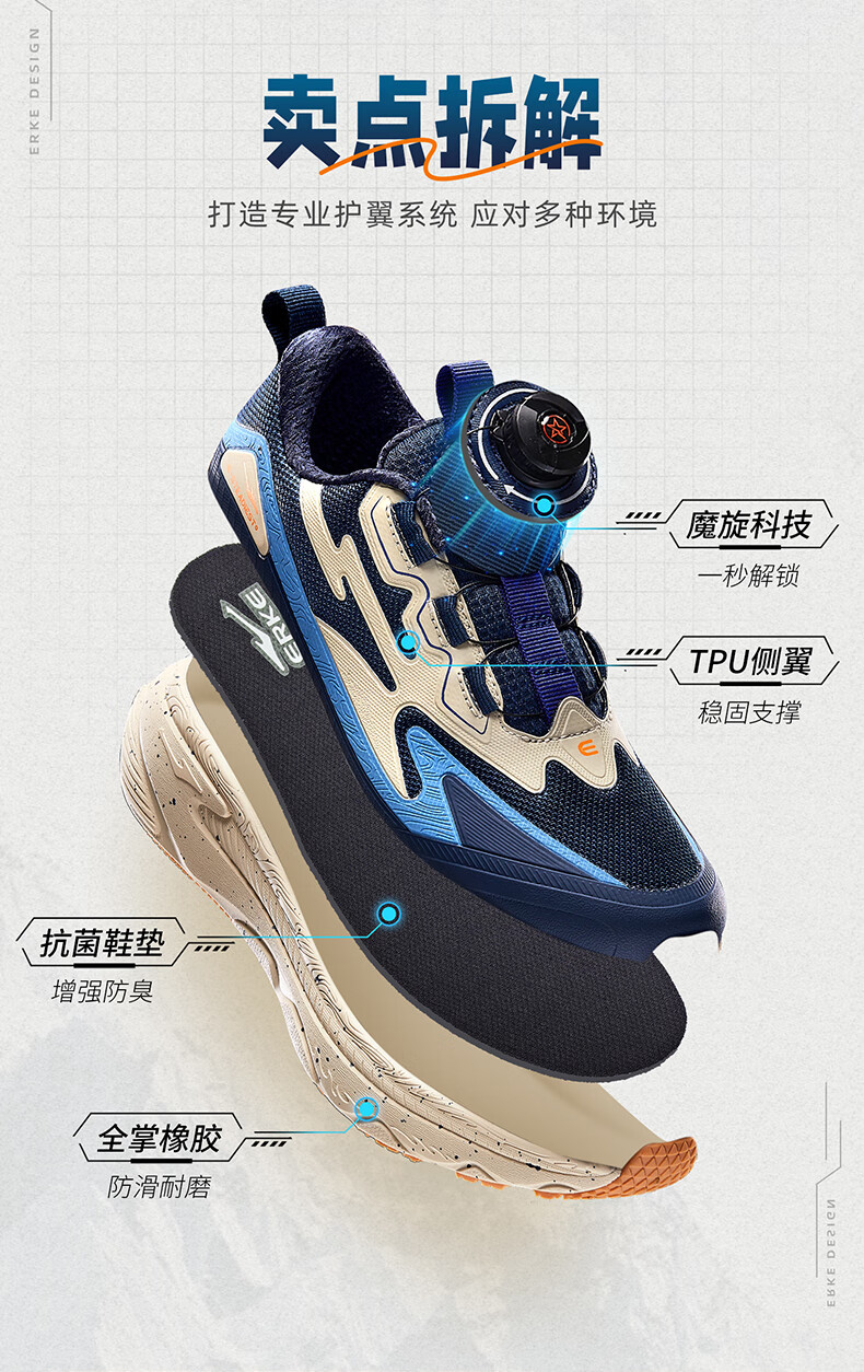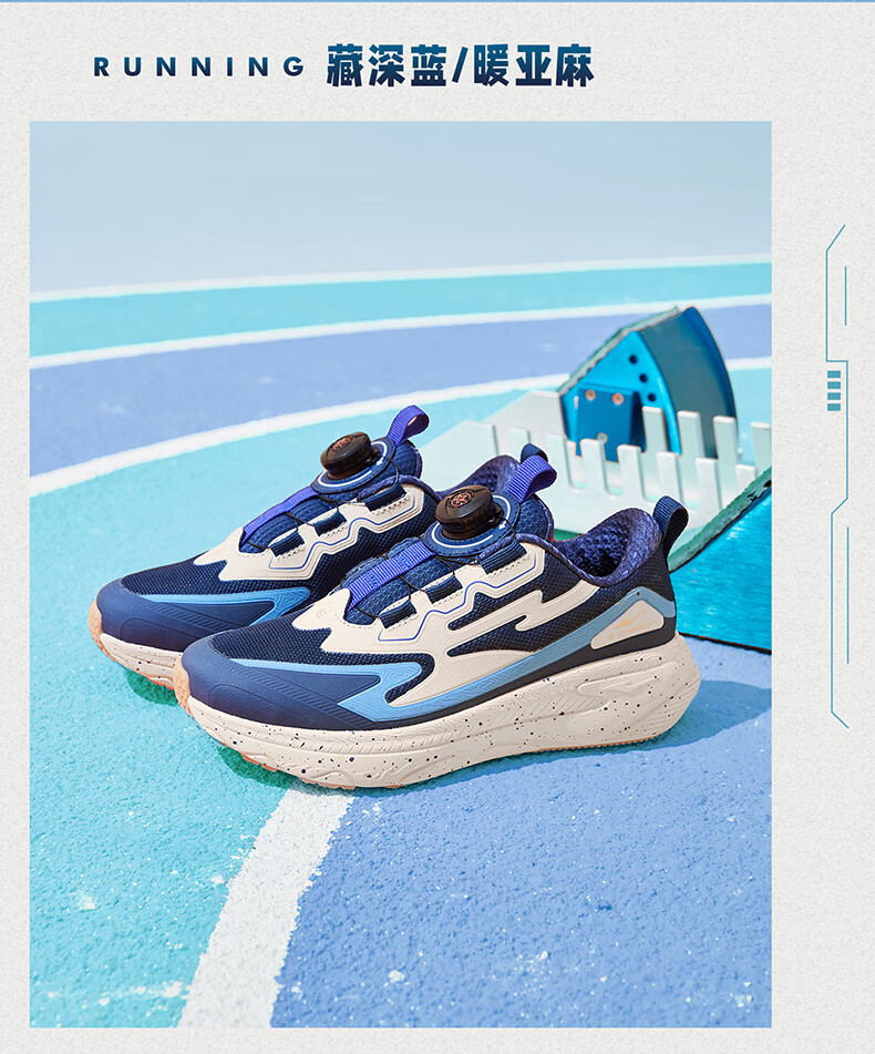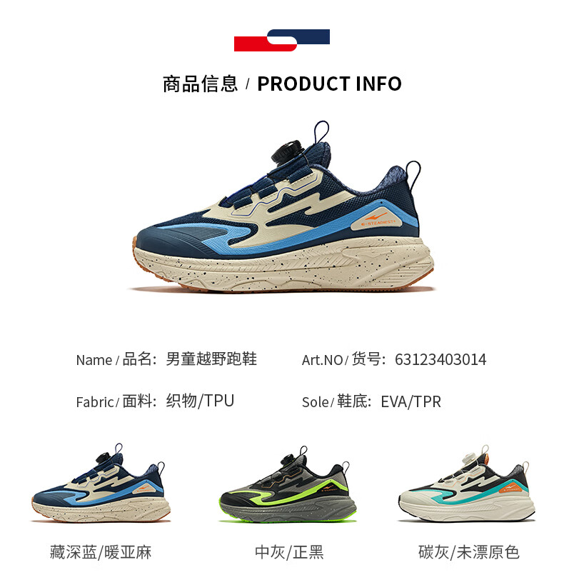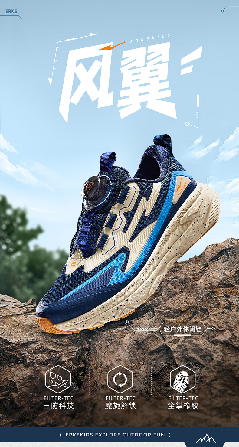 鸿星尔克(ERKE)童鞋童中性中大童越野跑鞋儿童耐磨运动鞋藏深蓝/暖亚麻33