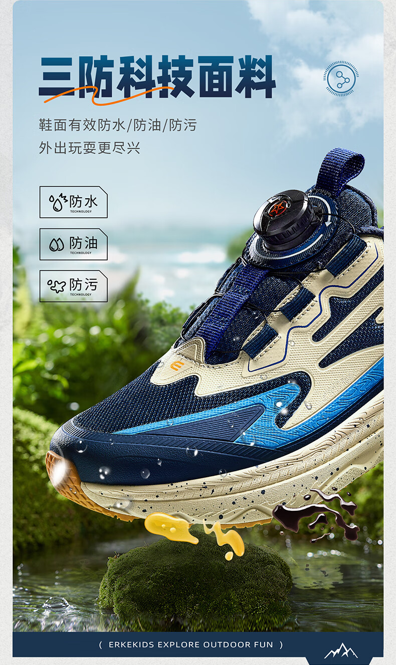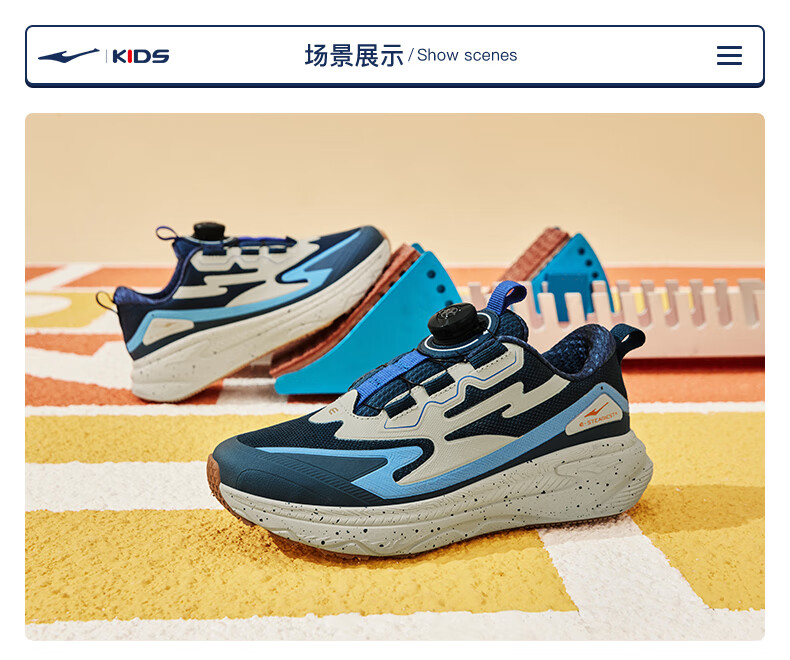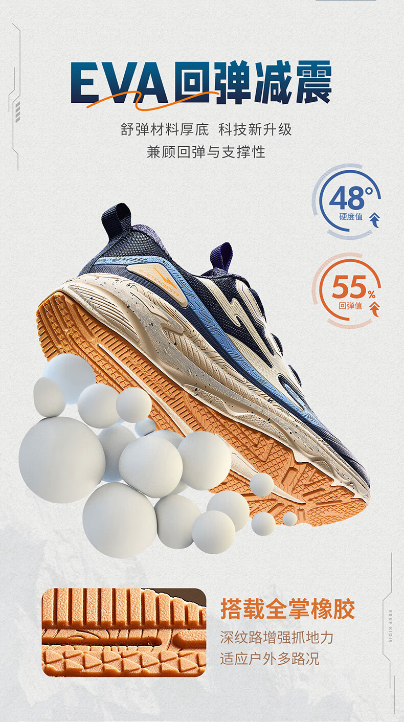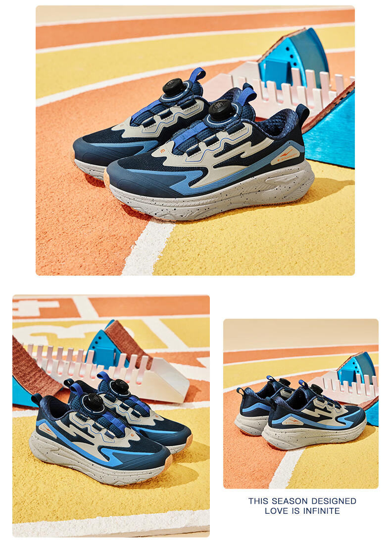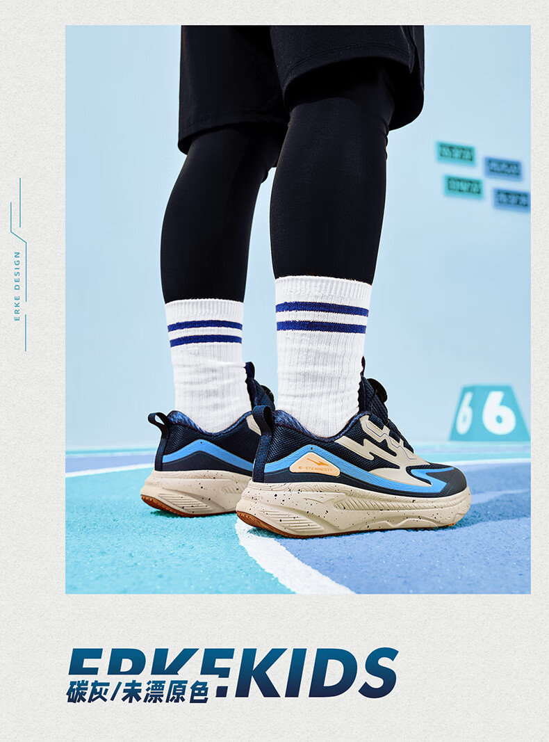 鸿星尔克(ERKE)童鞋童中性中大童越野跑鞋儿童耐磨运动鞋藏深蓝/暖亚麻33