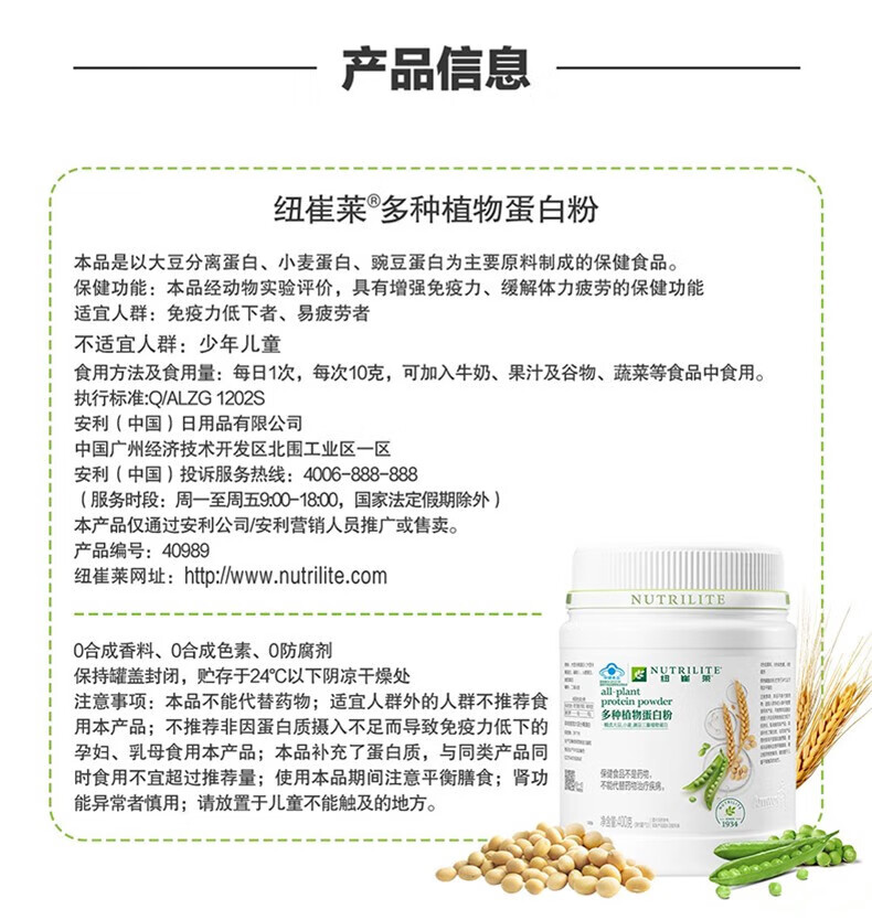 安利纽崔莱蛋白质粉770g多种植物营养粉术后增强免疫力男女节日送礼品 【**百万人购买**】多种植物蛋白粉770g/罐
