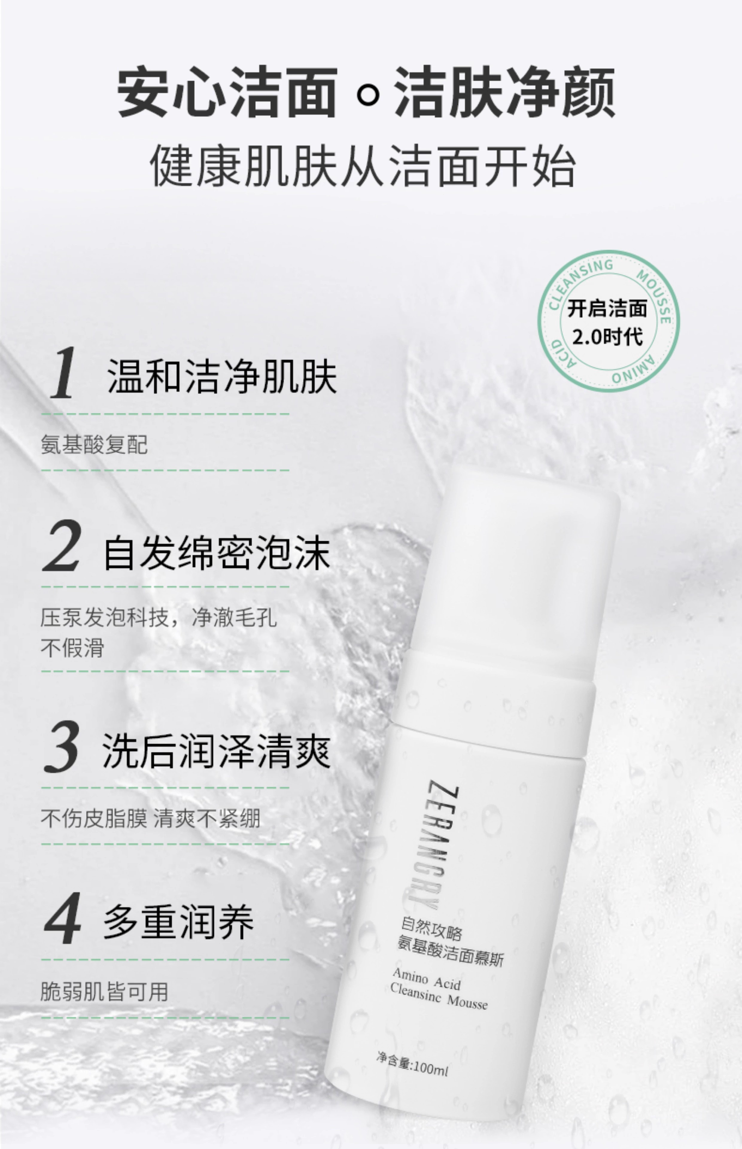 自然攻略氨基酸泡沫洁面慕斯清洁清爽不紧绷保湿洗面奶去油不糊眼收缩毛孔 450ml