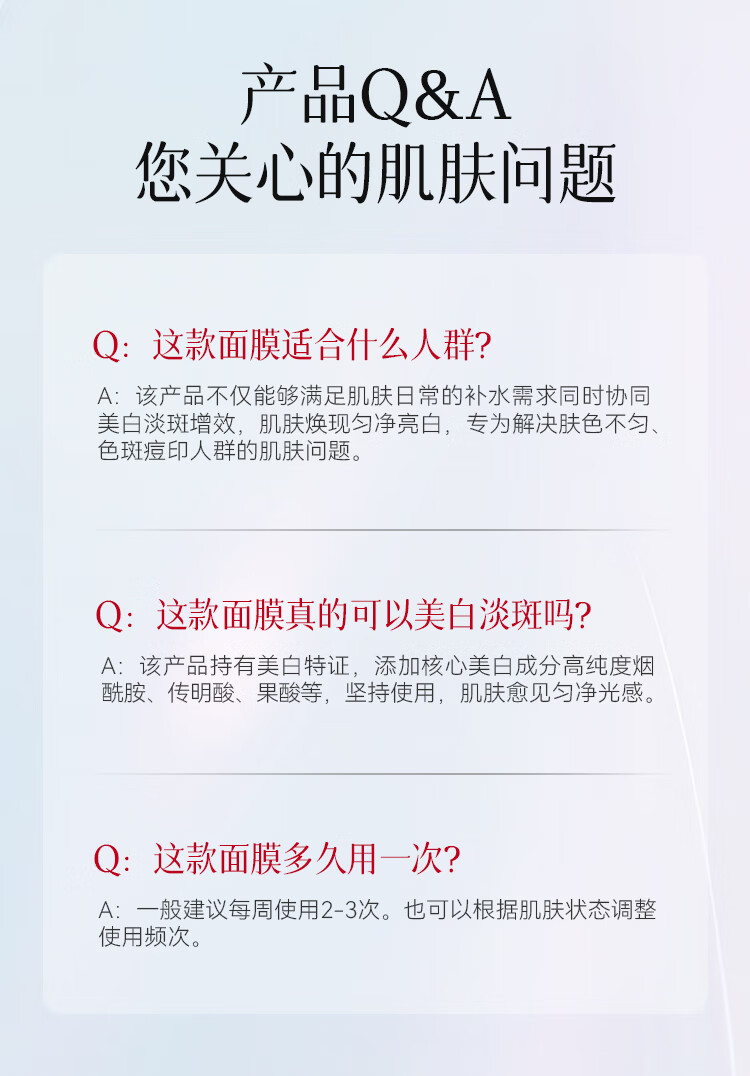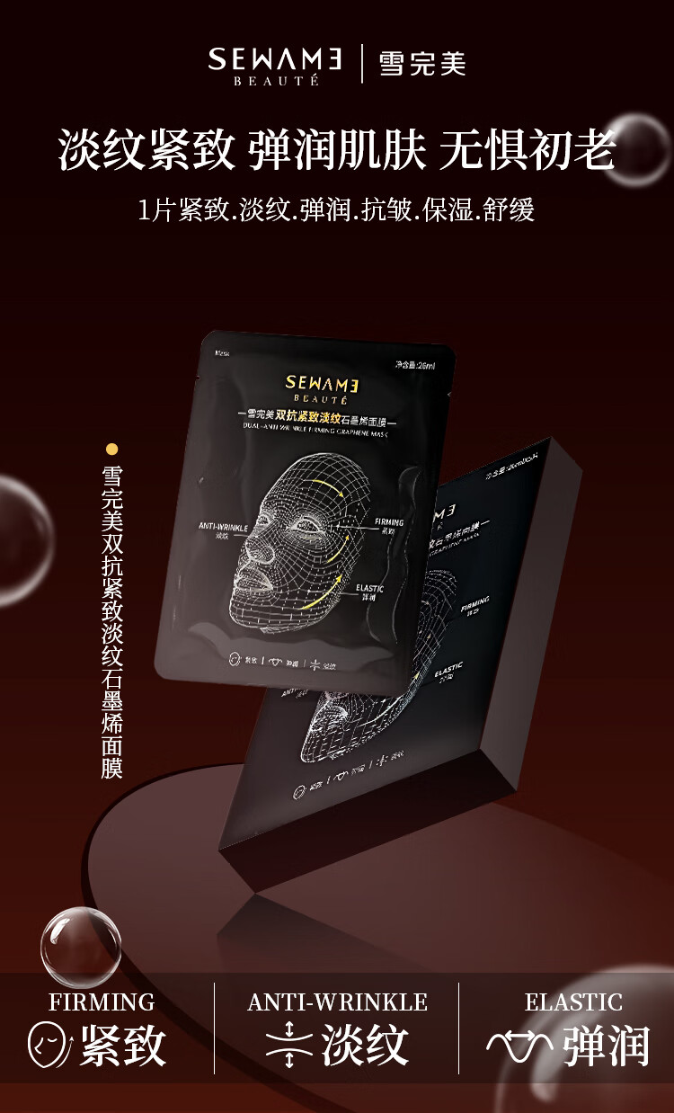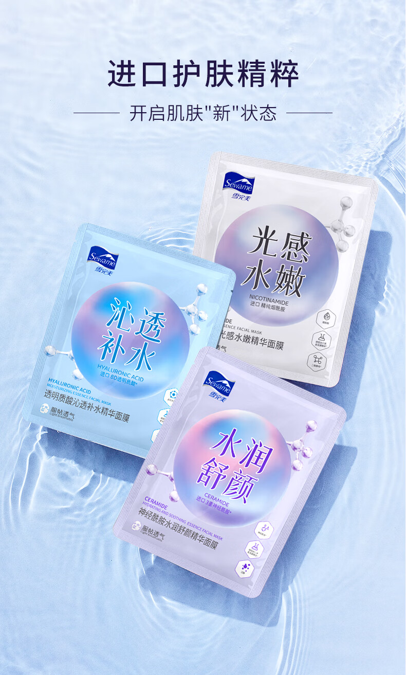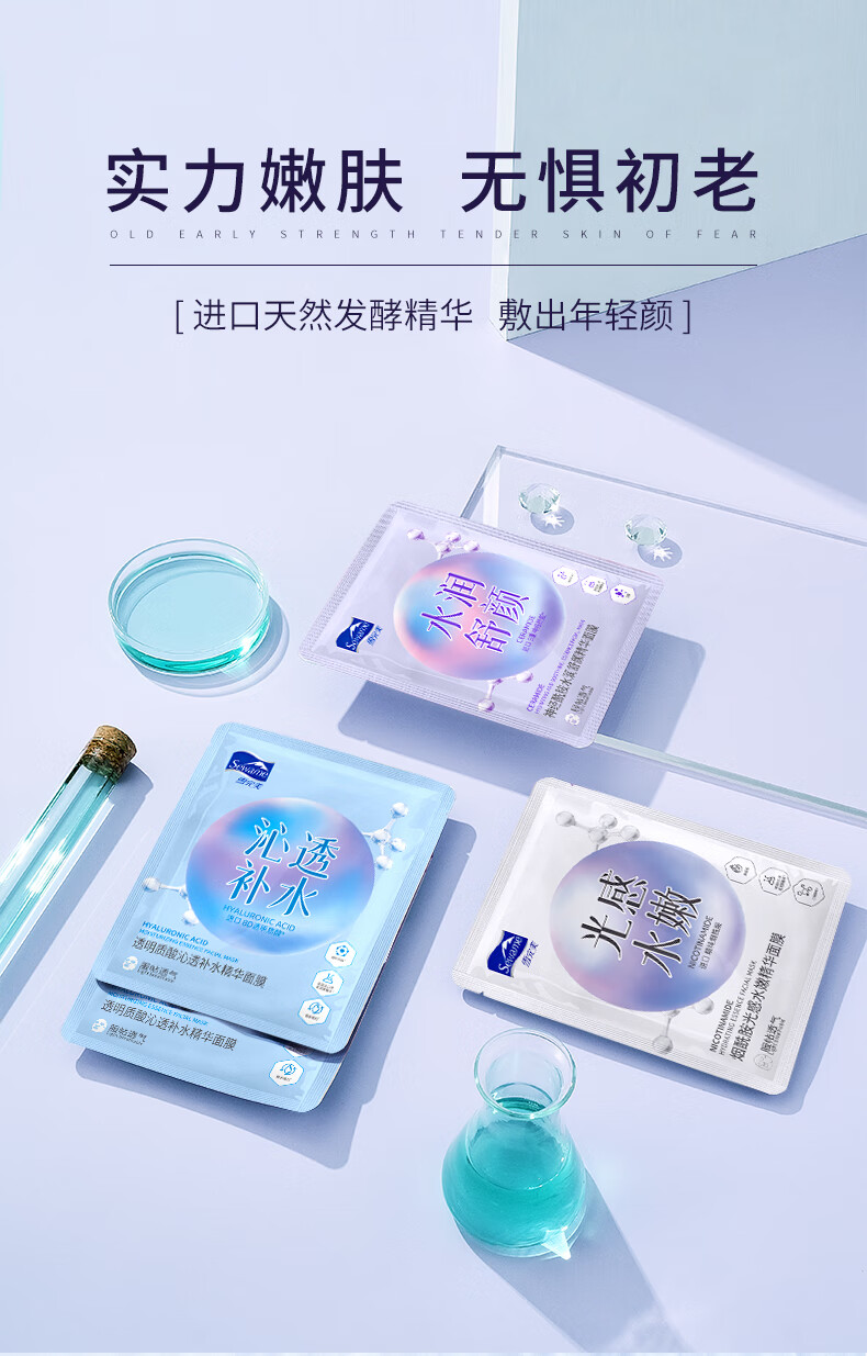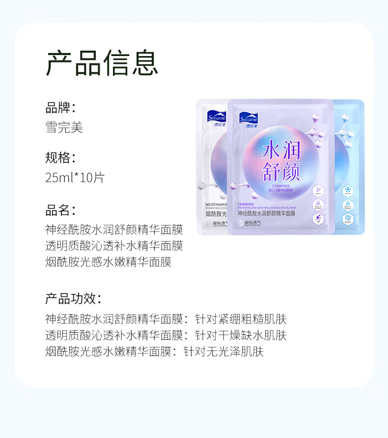 雪完美(PXE)光感美白淡斑面膜烟酰胺透明质酸神经酰胺石墨烯葡萄籽补水面贴膜 透明质酸补水精华面膜10片装