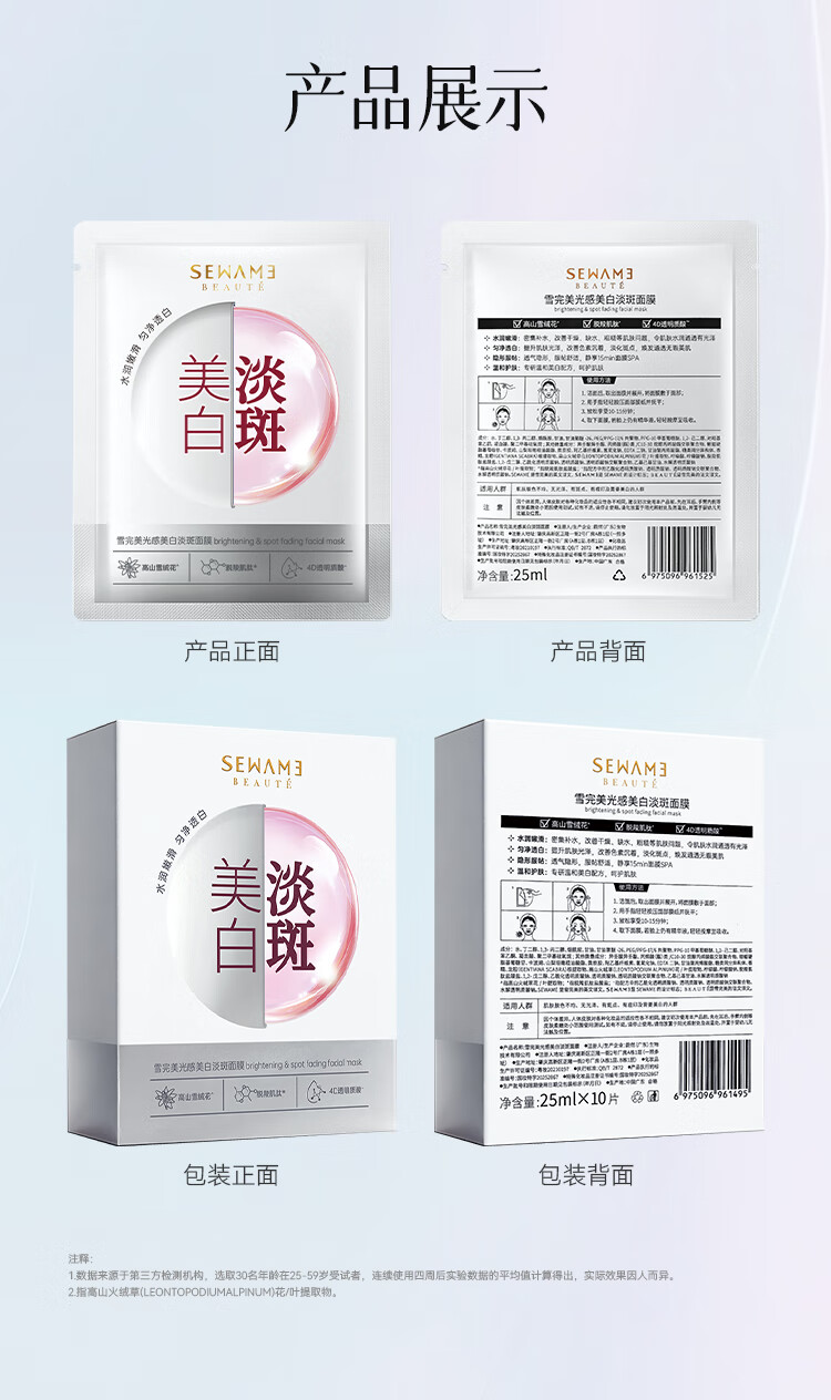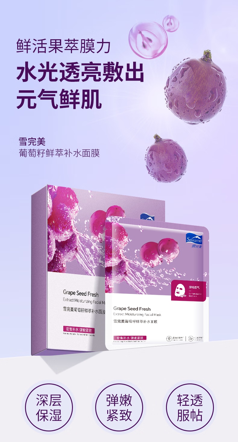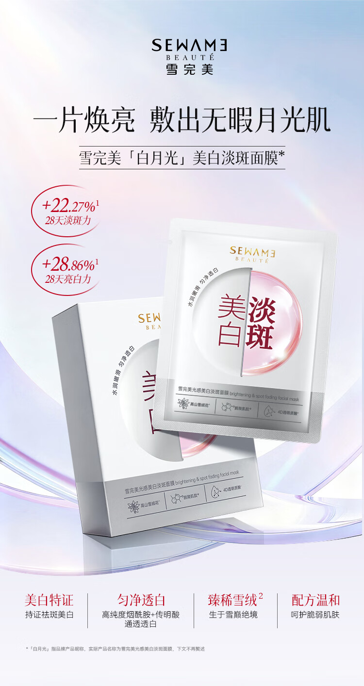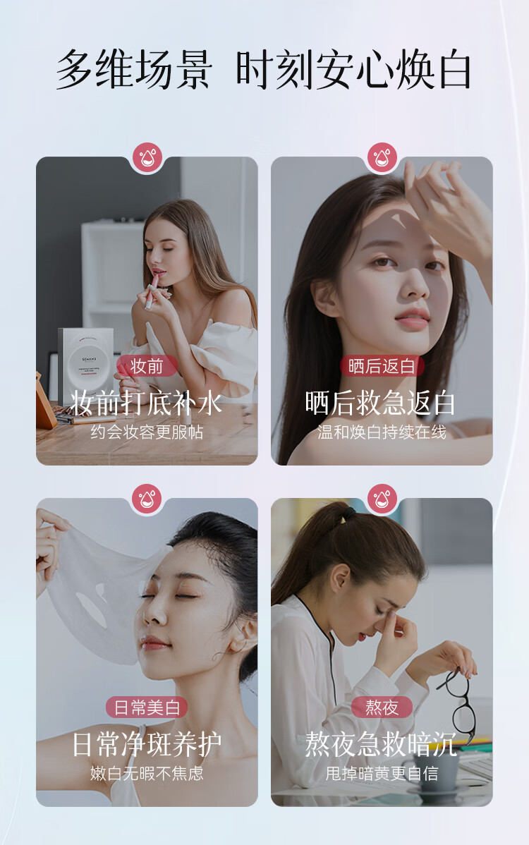 雪完美(PXE)光感美白淡斑面膜烟酰胺透明质酸神经酰胺石墨烯葡萄籽补水面贴膜 透明质酸补水精华面膜10片装