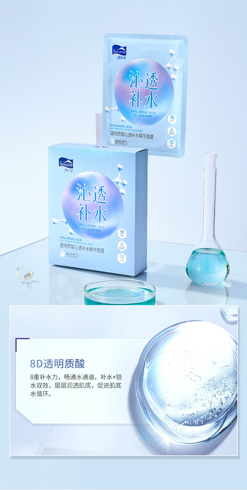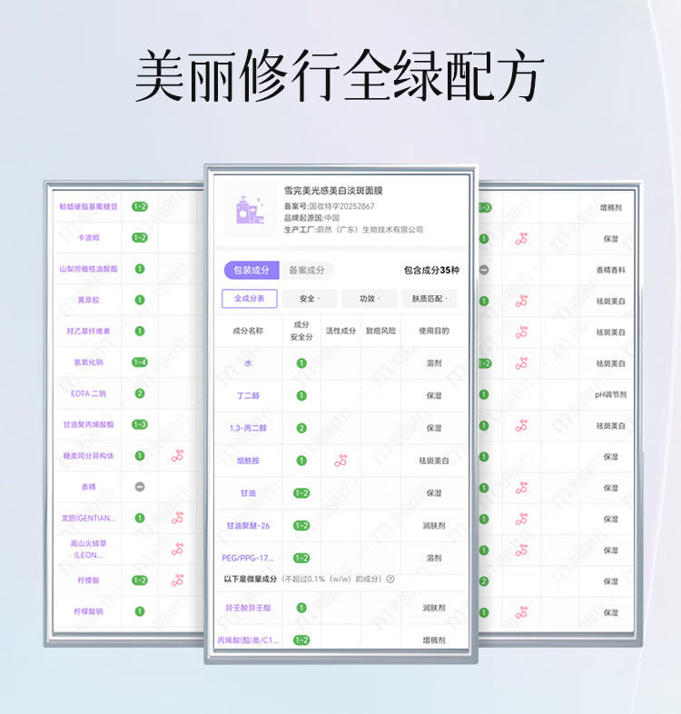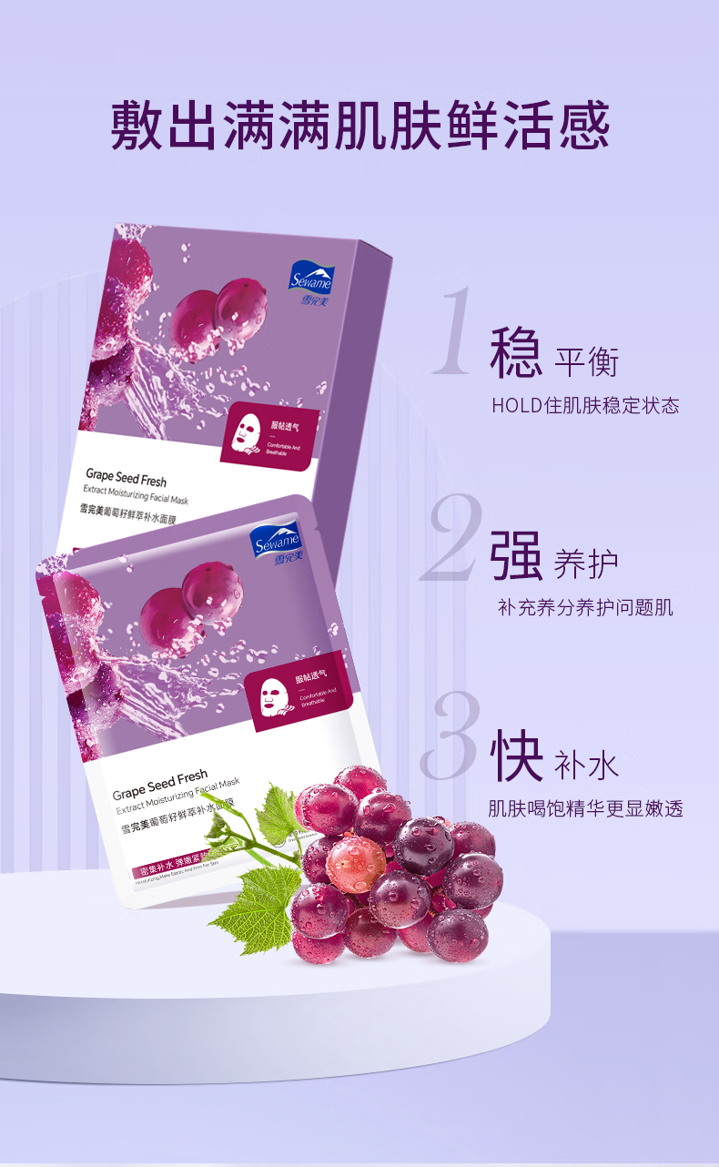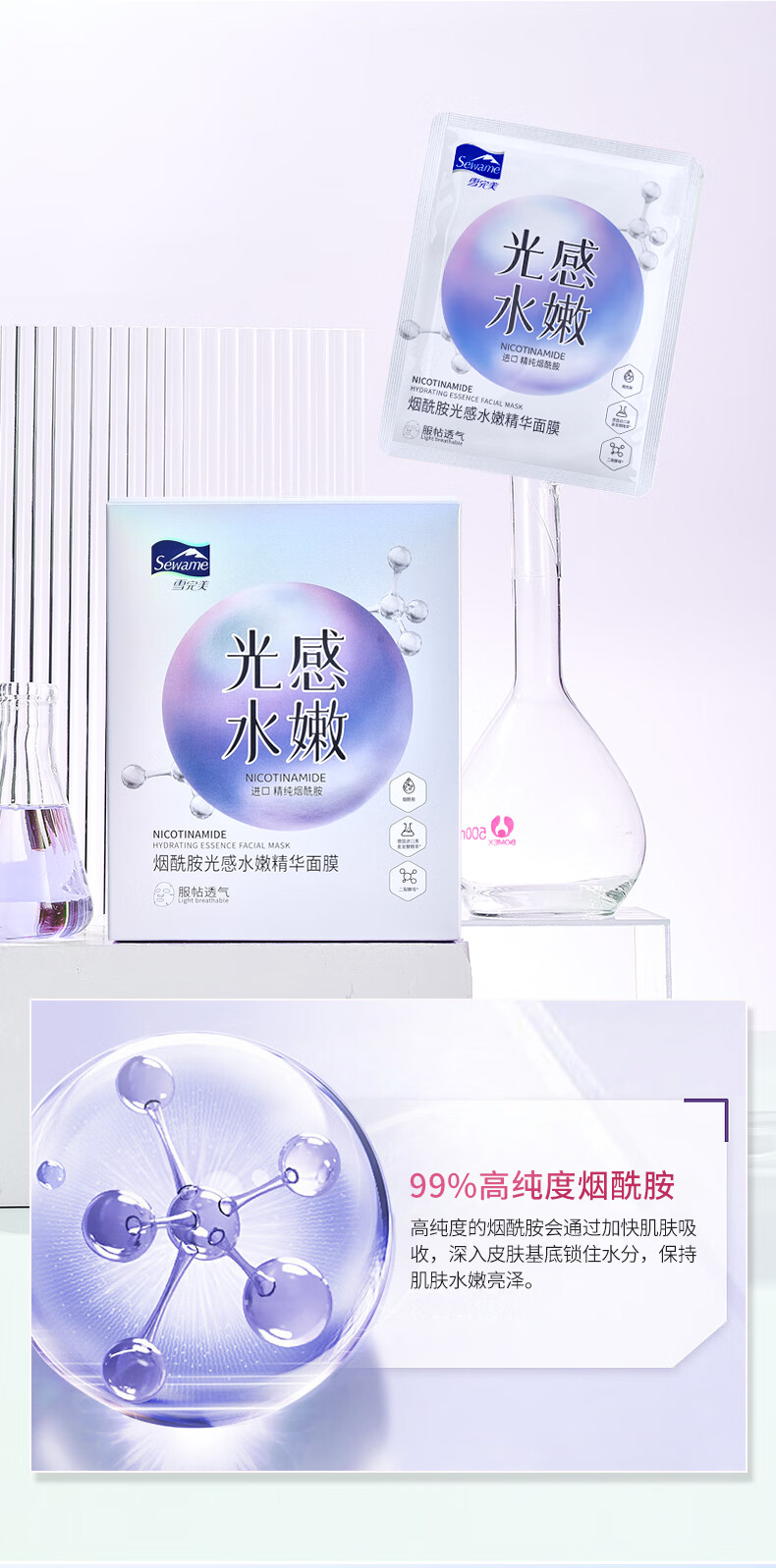 雪完美(PXE)光感美白淡斑面膜烟酰胺透明质酸神经酰胺石墨烯葡萄籽补水面贴膜 透明质酸补水精华面膜10片装