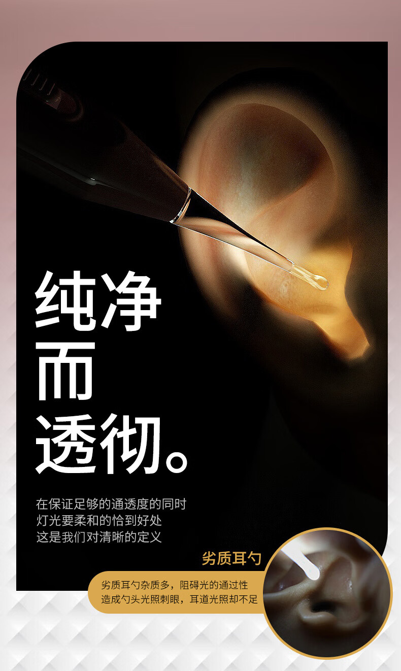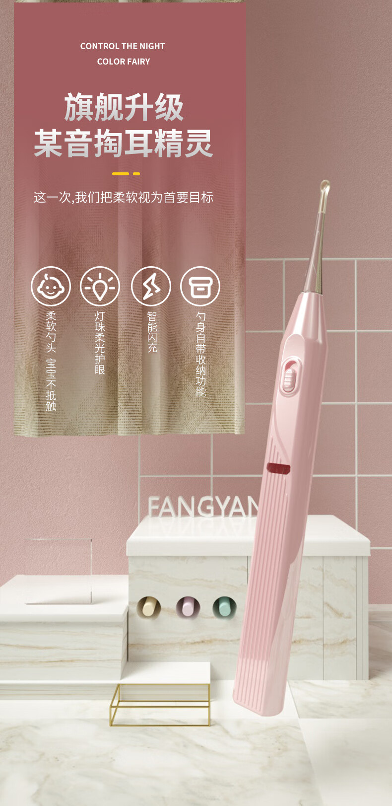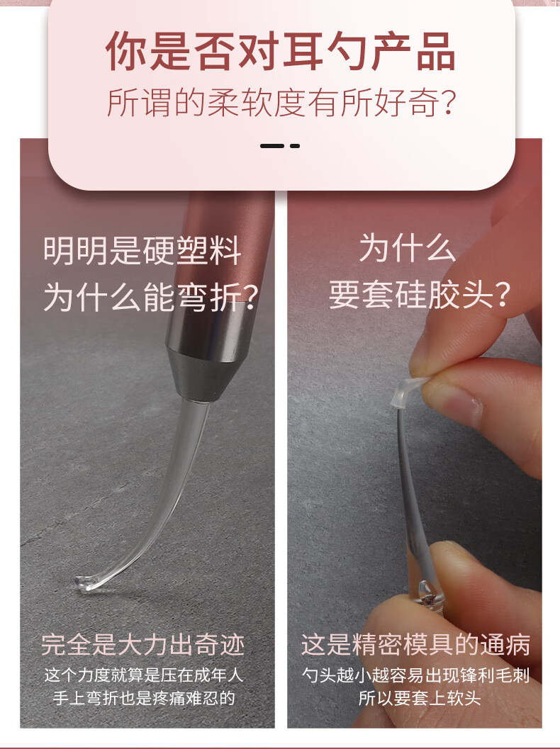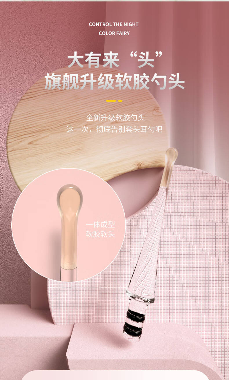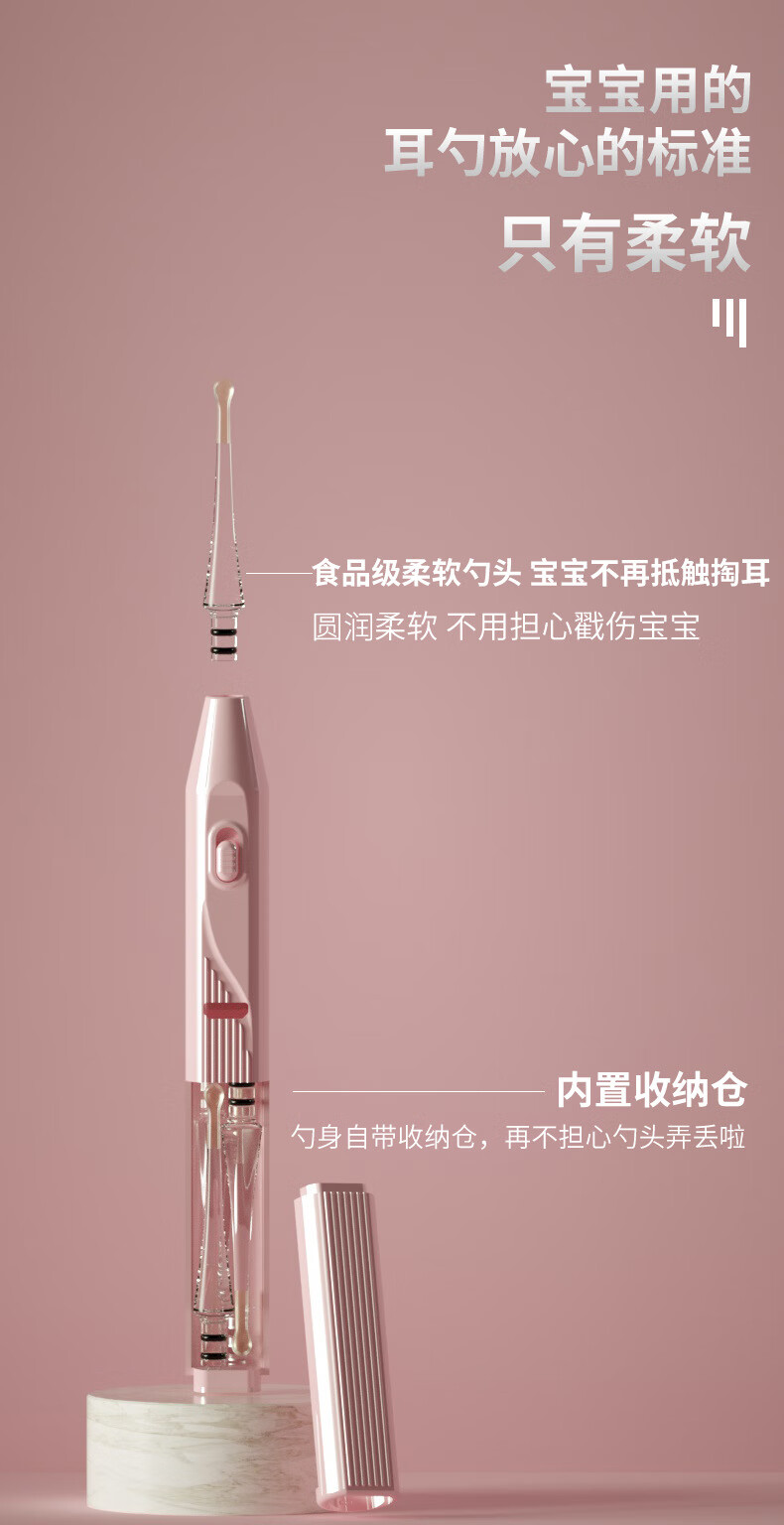 掏耳神器硅胶挖耳勺发光带灯软头宝宝儿童专用挖耳朵安全镊子可视 粉色收纳款耳勺【盒装】