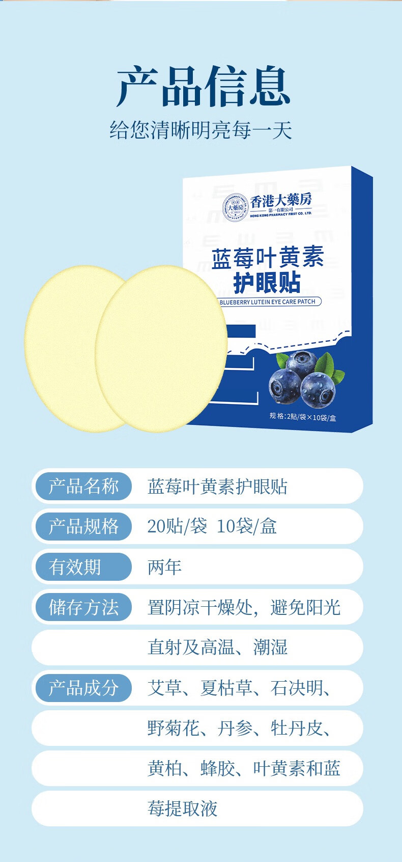 蓝莓叶黄素眼贴可搭眼疲劳干涩视力模糊儿童成人冷敷 【叶黄素眼贴5盒】100贴