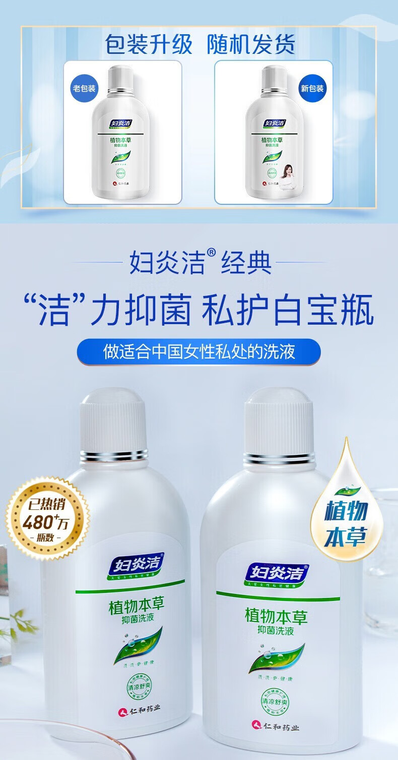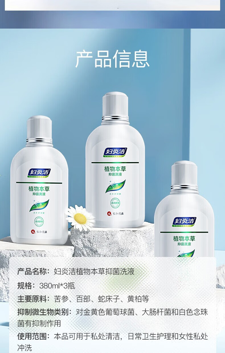 妇炎洁洗液 植物本草680ml配冲洗器女性妇科私密处护理液清洁洗阴 380ml*1瓶配冲洗器