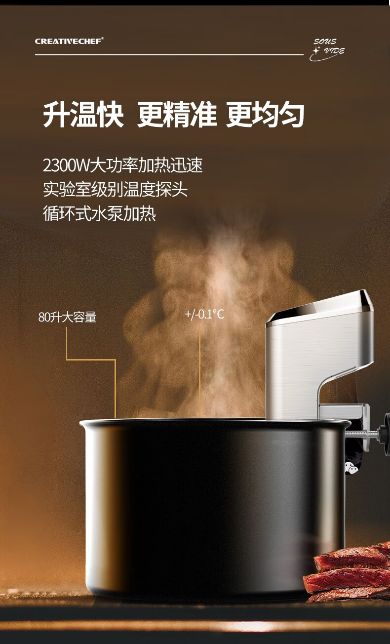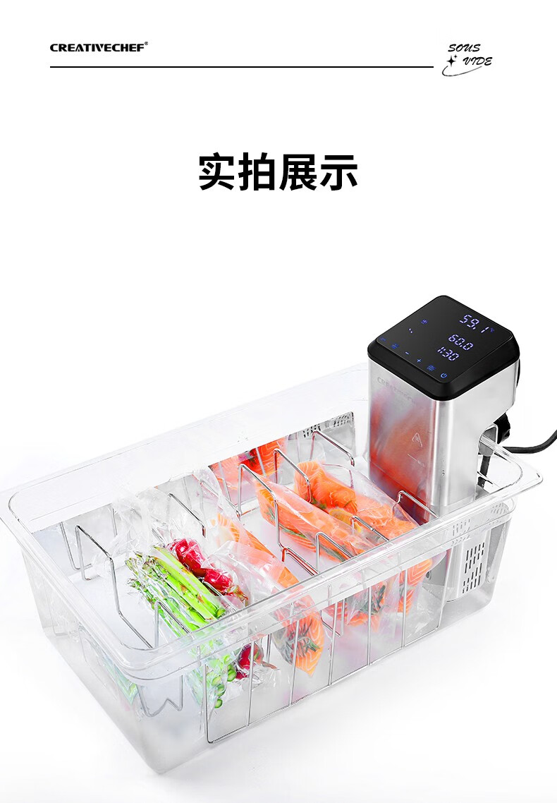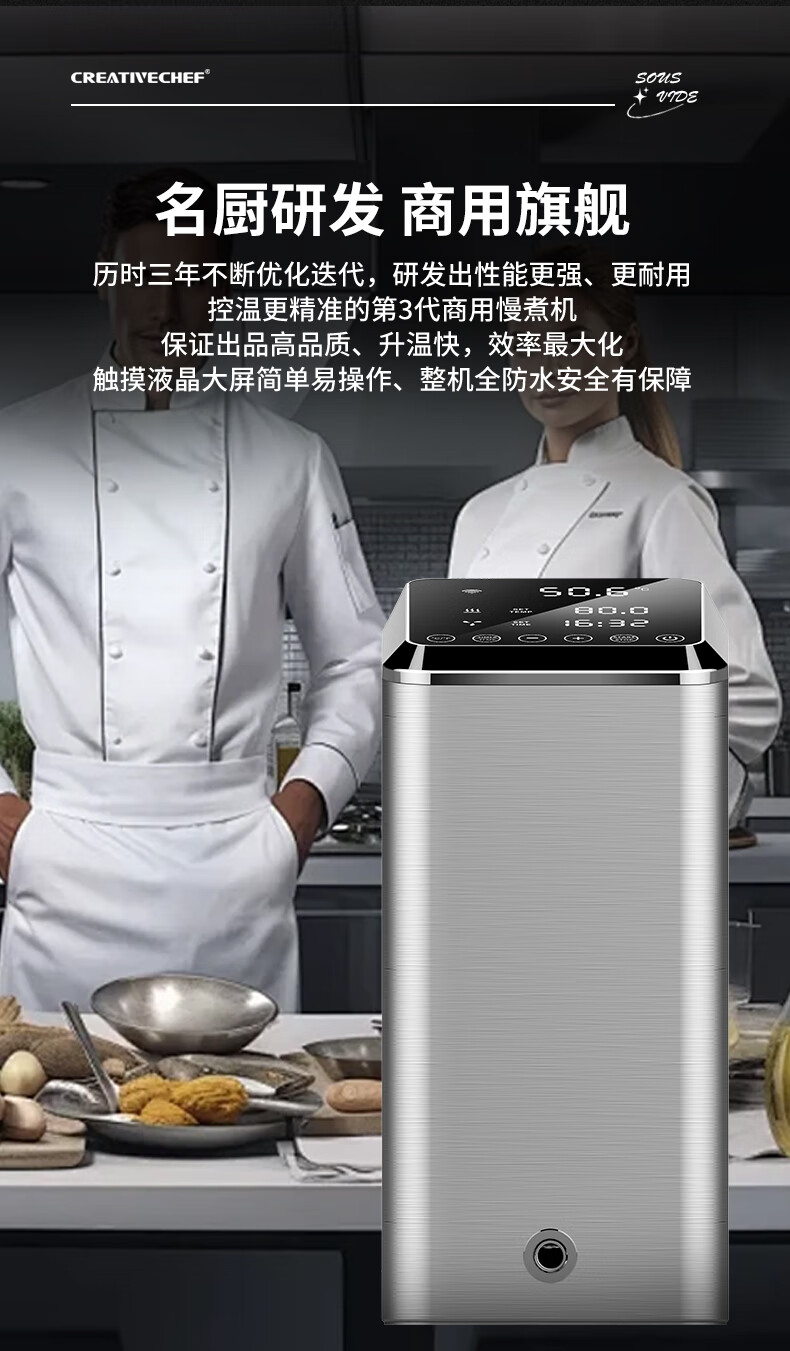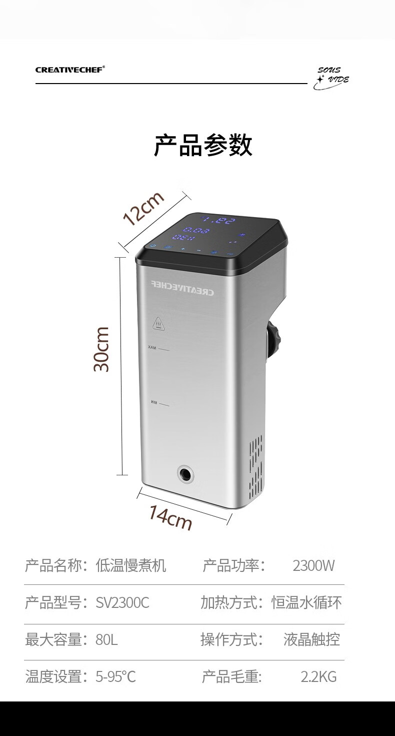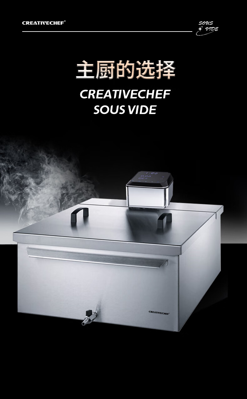 Creativechef 【西班牙】低温慢煮机商用SousVide真空恒温料理机2300瓦大功率牛排鸡排三文鱼烹饪料理棒 【商用慢煮机】SV2300+40L不锈钢水箱