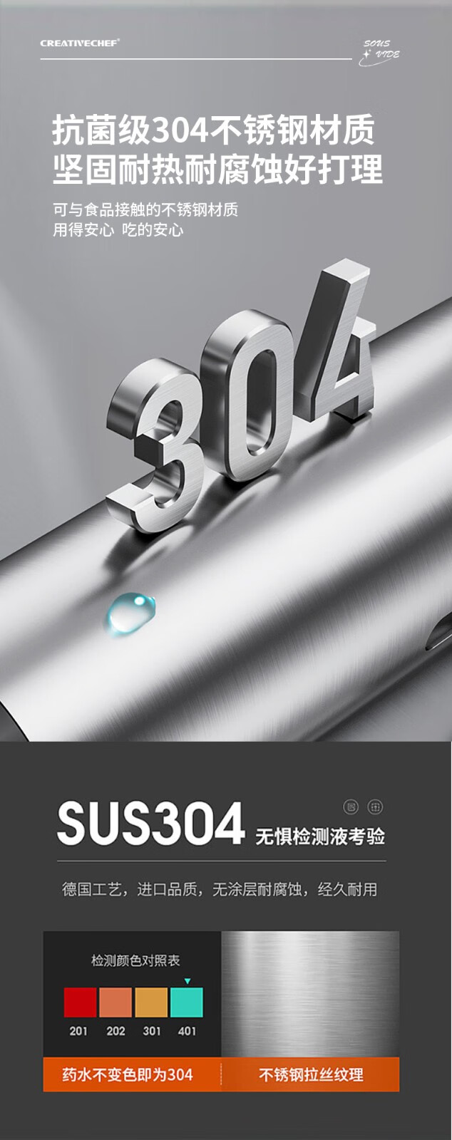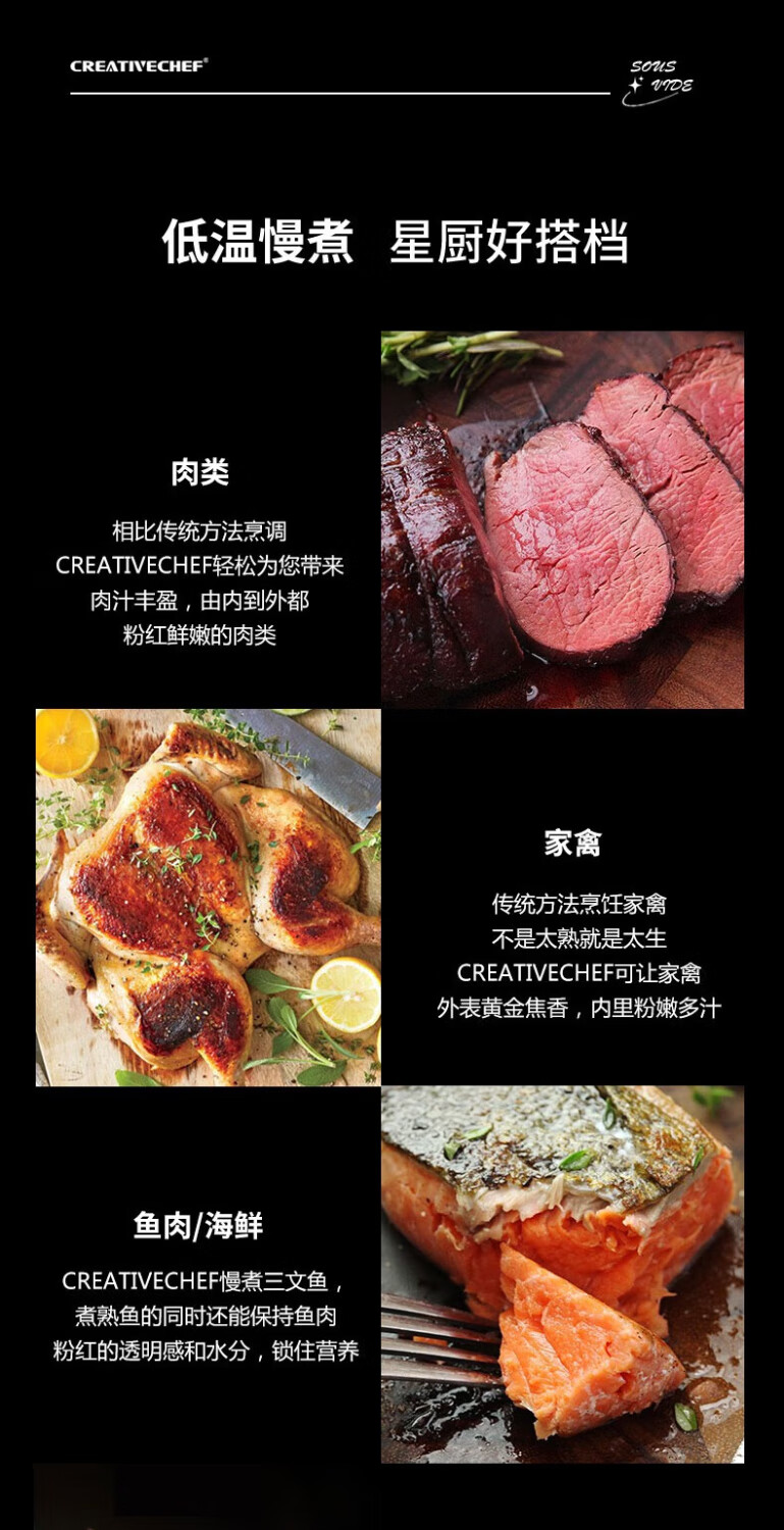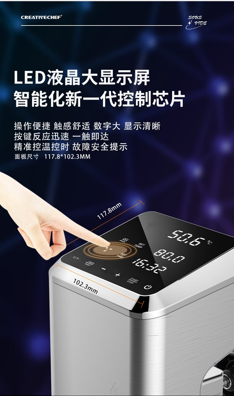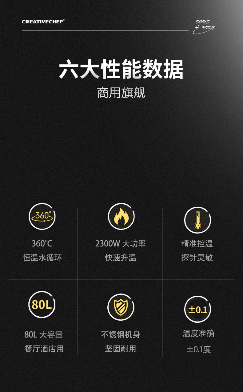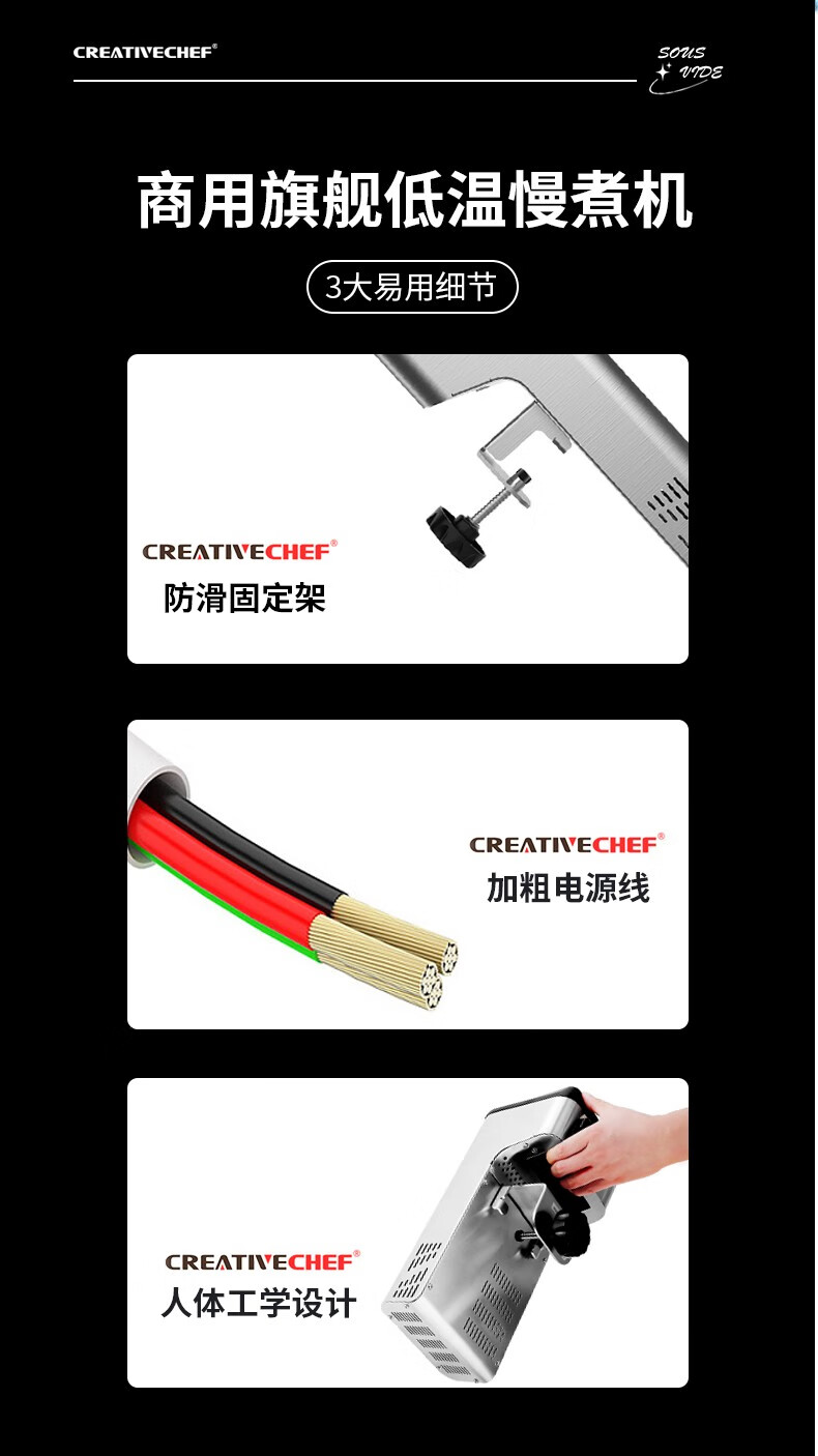 Creativechef 【西班牙】低温慢煮机商用SousVide真空恒温料理机2300瓦大功率牛排鸡排三文鱼烹饪料理棒 【商用慢煮机】SV2300+40L不锈钢水箱