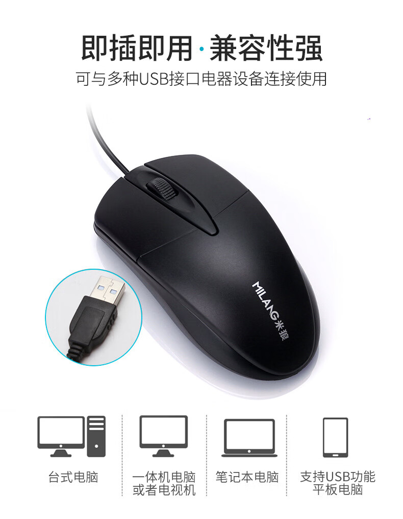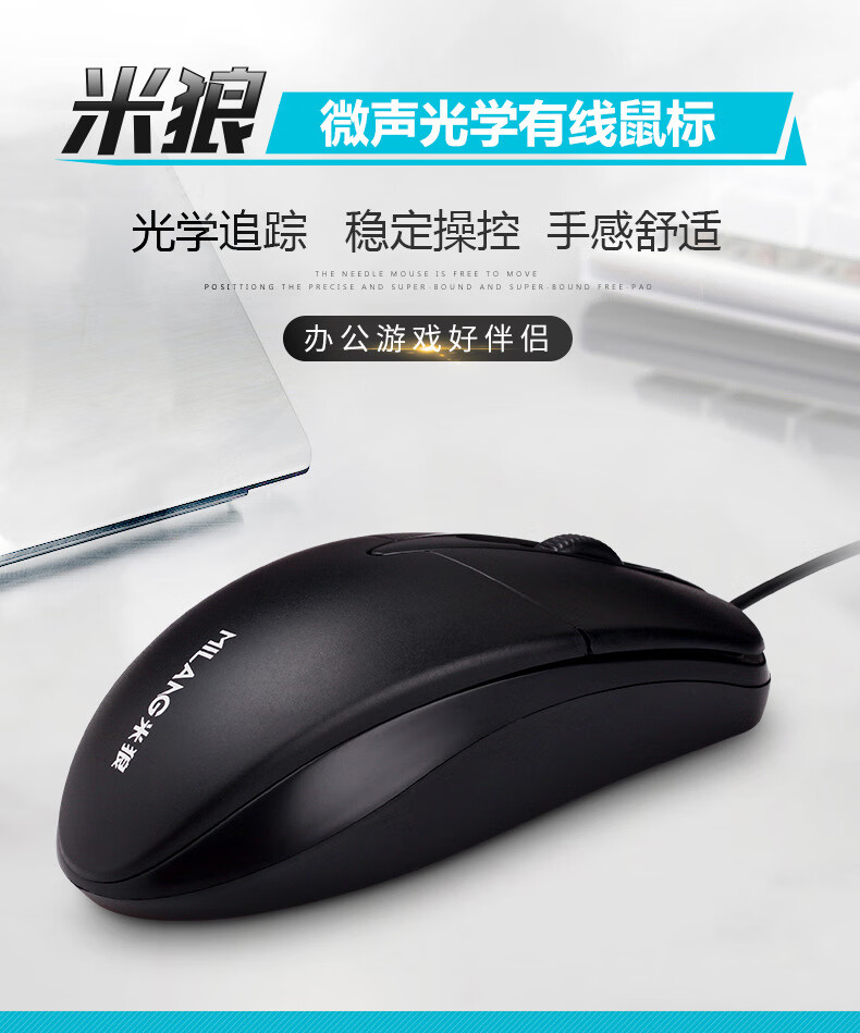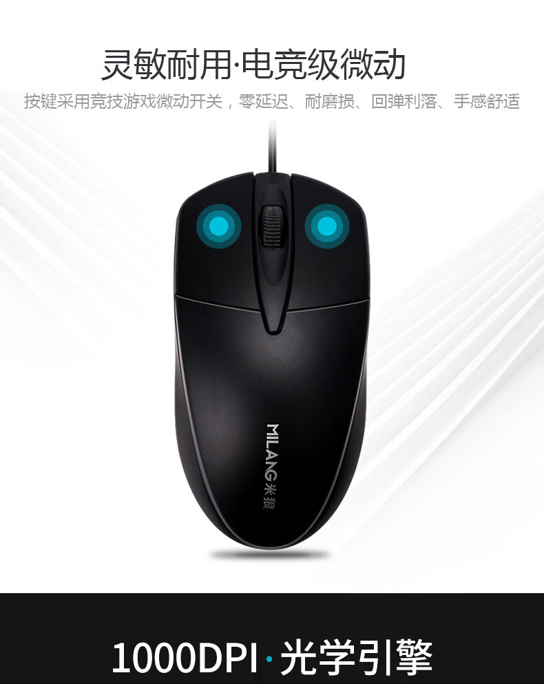 【厂家直供】办公光电鼠标笔记本台式机适用USB办公光电有线鼠标 米狼M1鼠标【带包装】