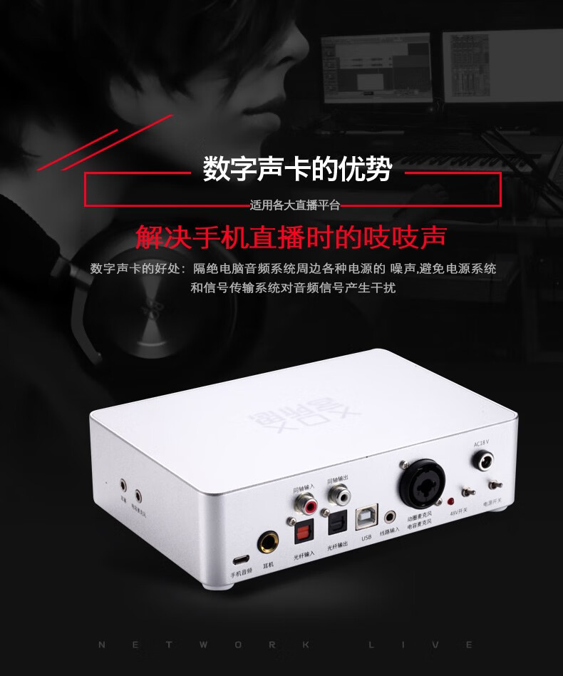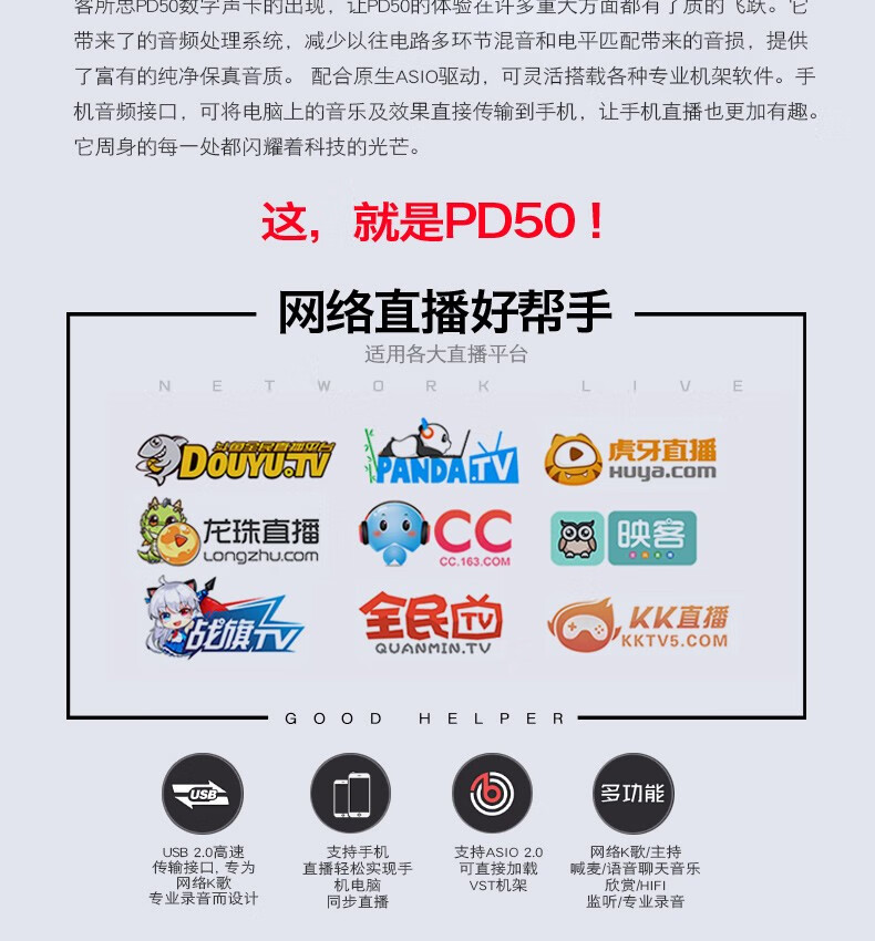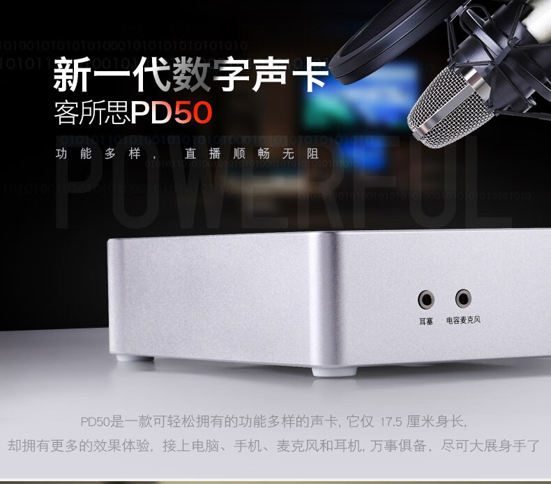客所思PD50 声卡直播设备全套手机电脑通用主播直播唱歌录音配音有声书喜马拉雅播音话筒麦克风专业套装 PD50+得胜K220(48V)套餐