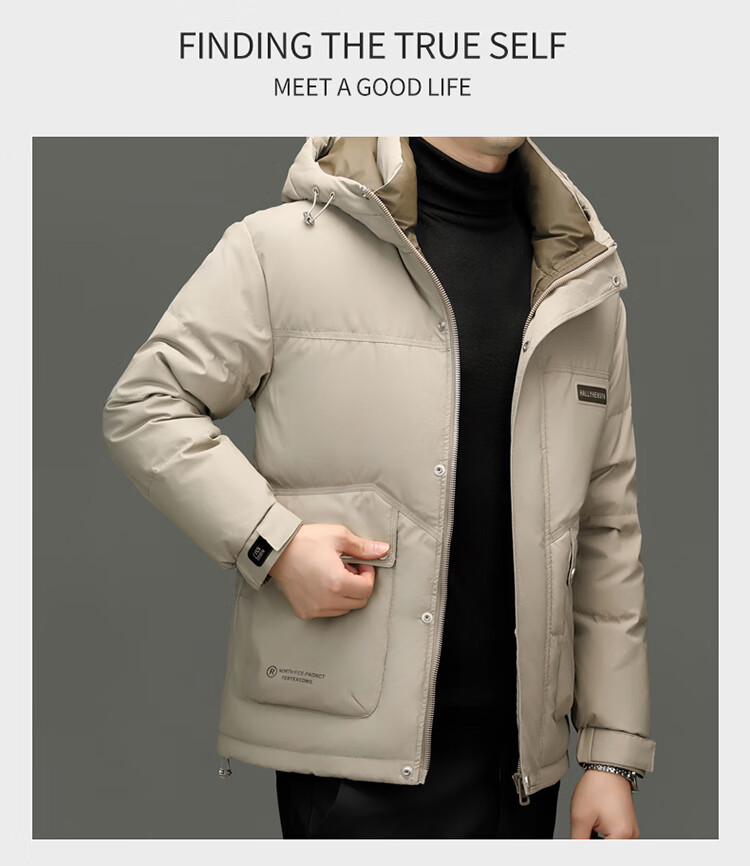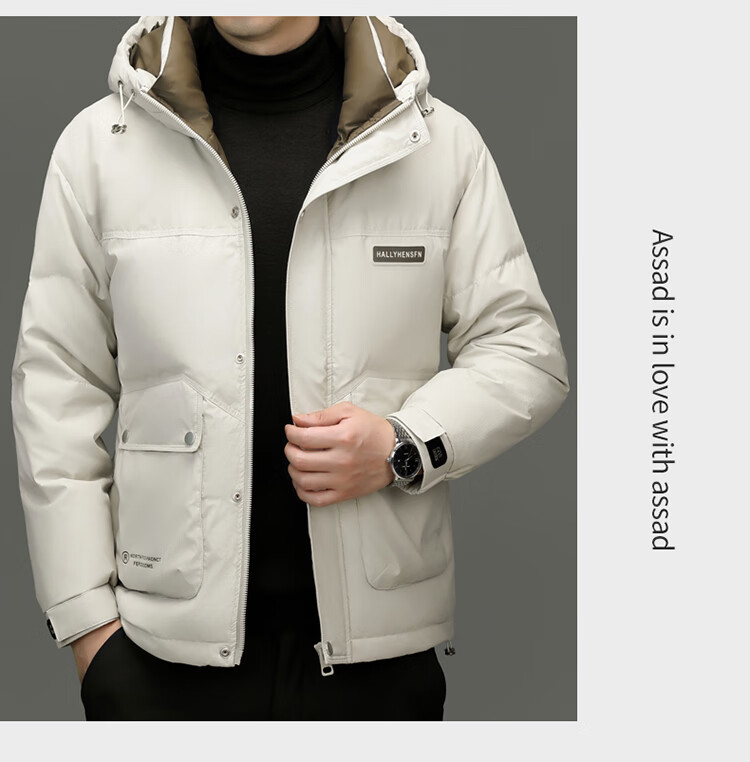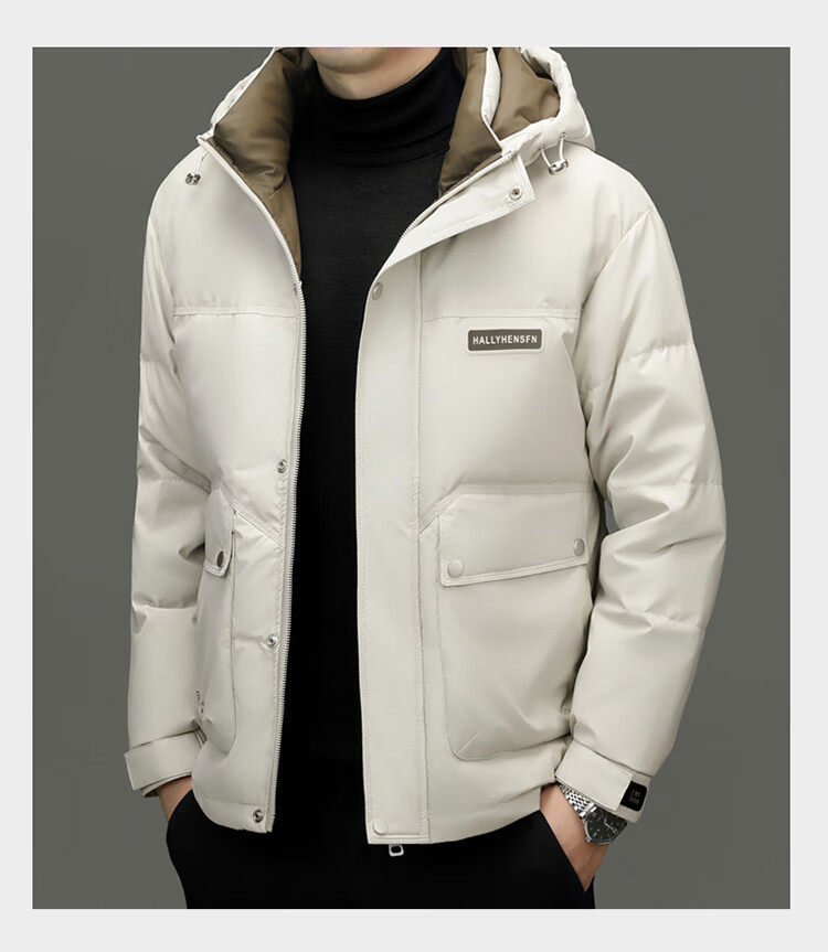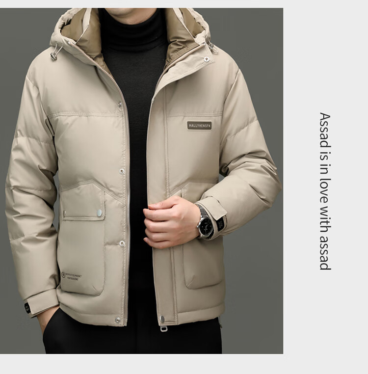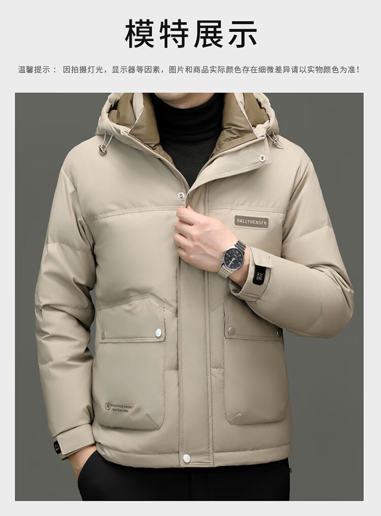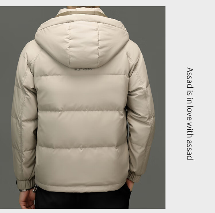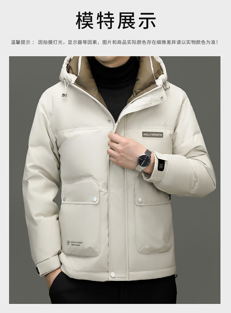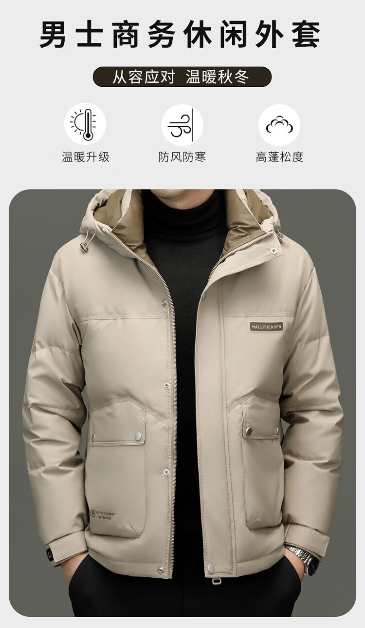 利郎服男2025中年时尚休闲连帽加厚保暖白鸭绒外套冬 米白 4XL 195 建议185-200斤