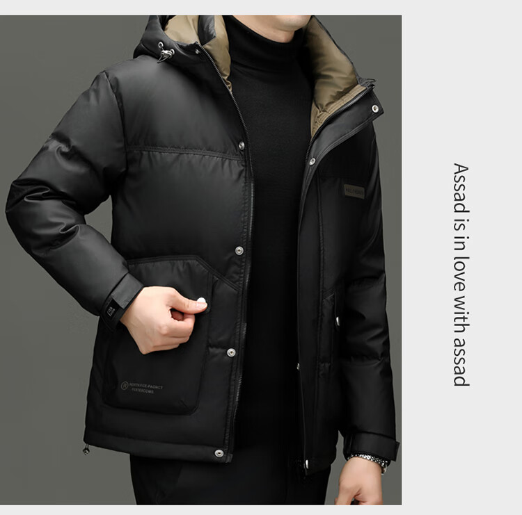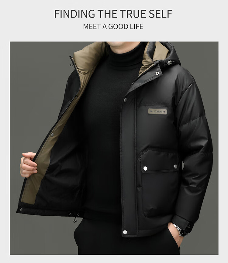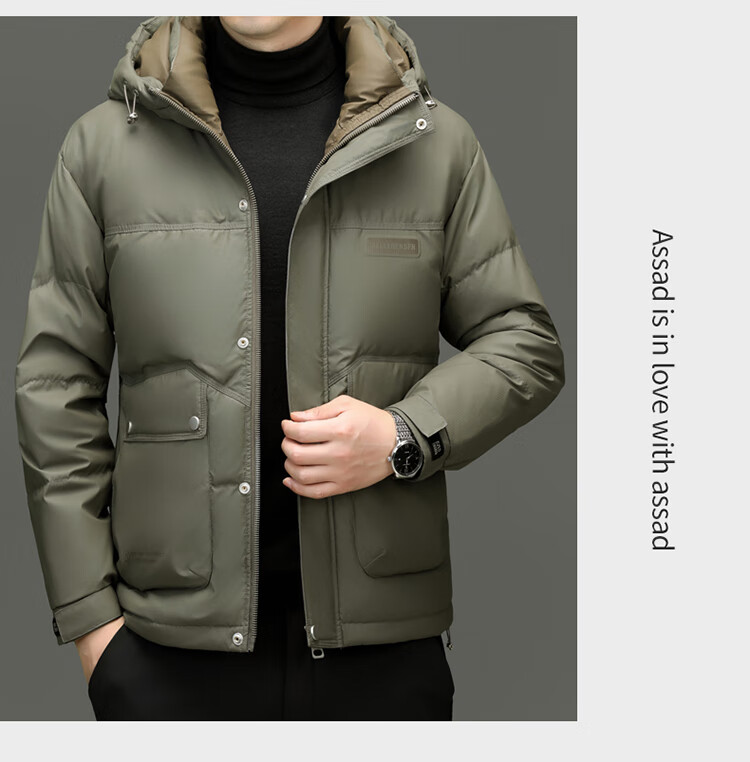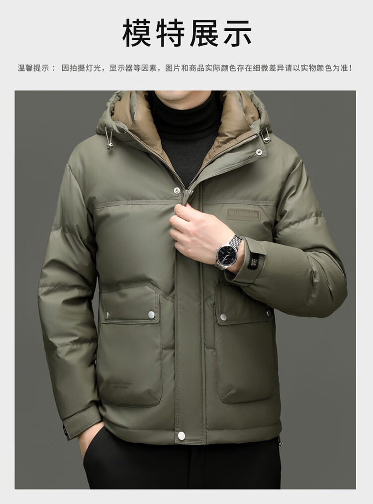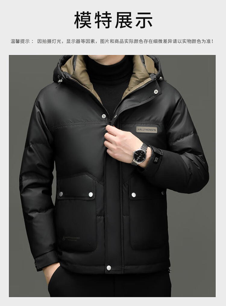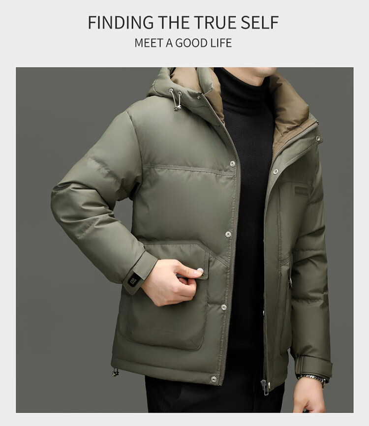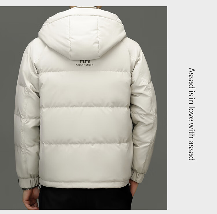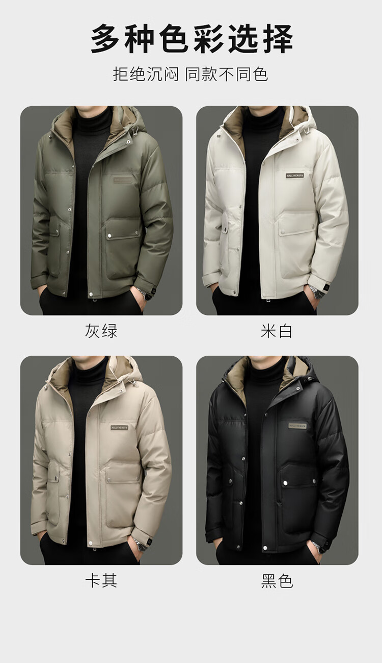 利郎服男2025中年时尚休闲连帽加厚保暖白鸭绒外套冬 米白 4XL 195 建议185-200斤