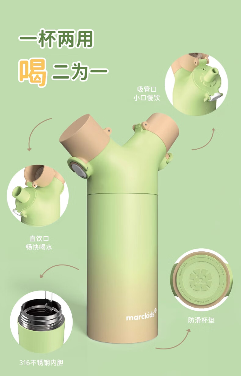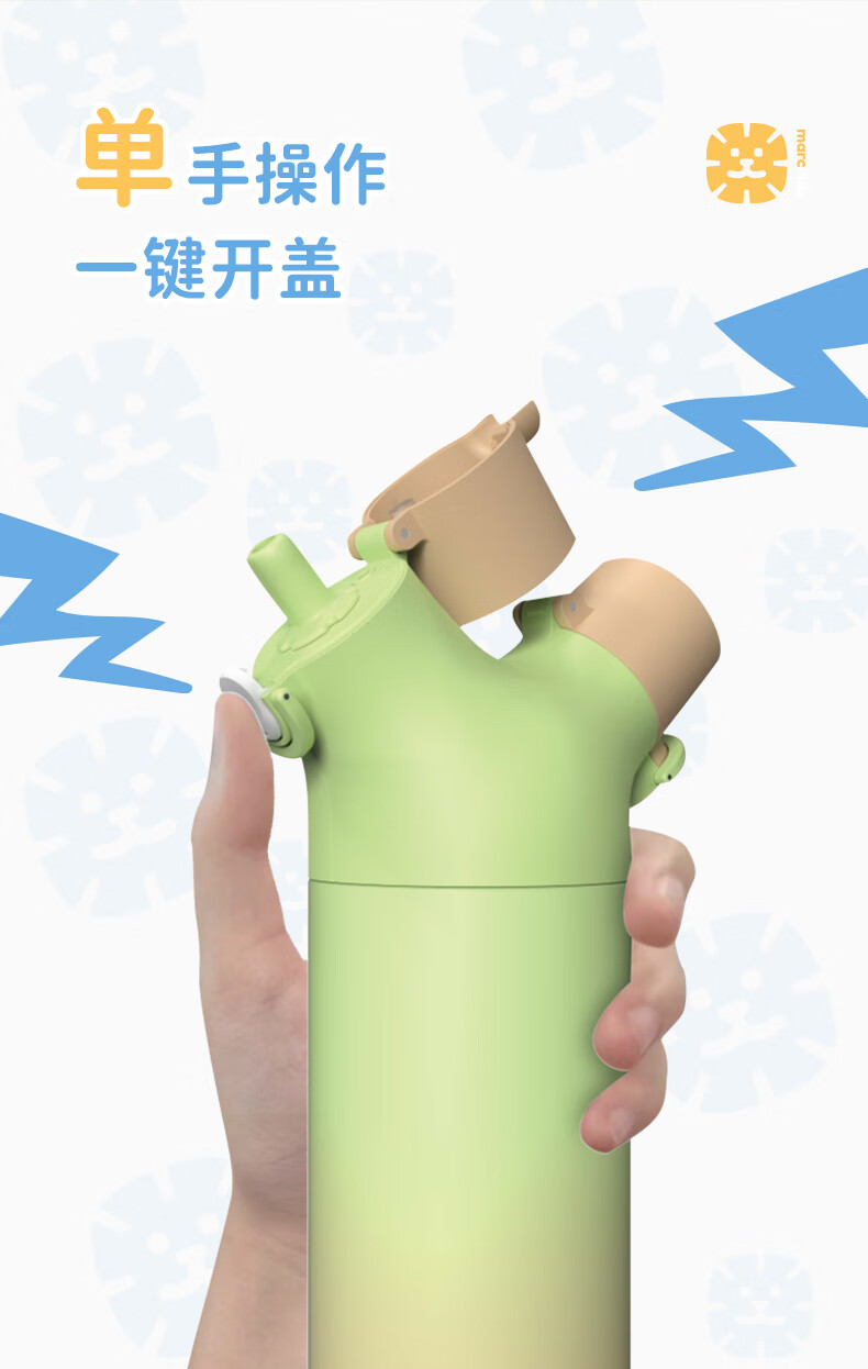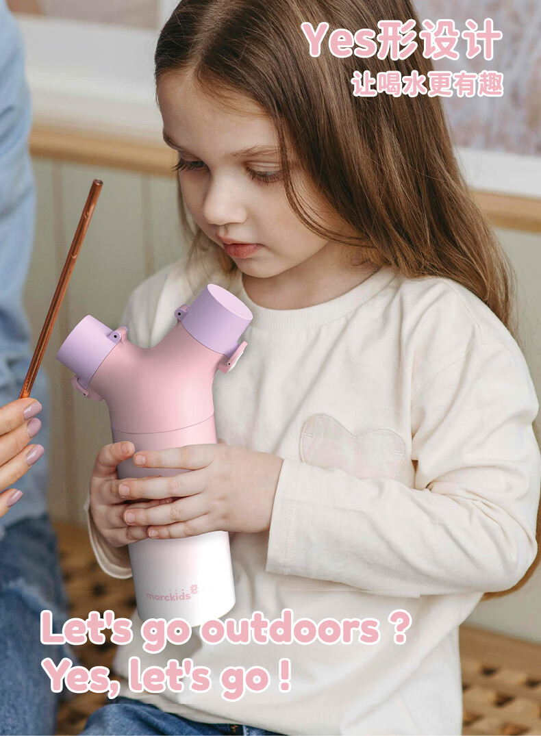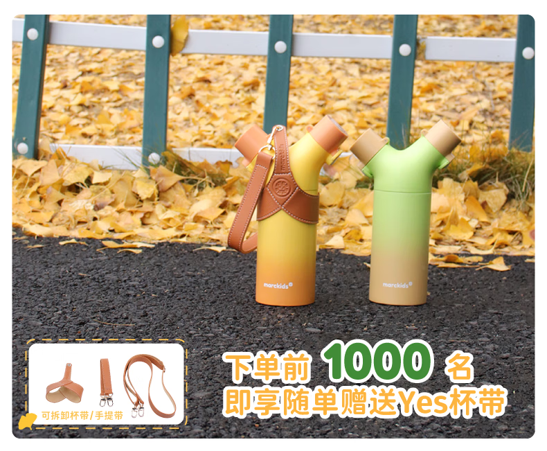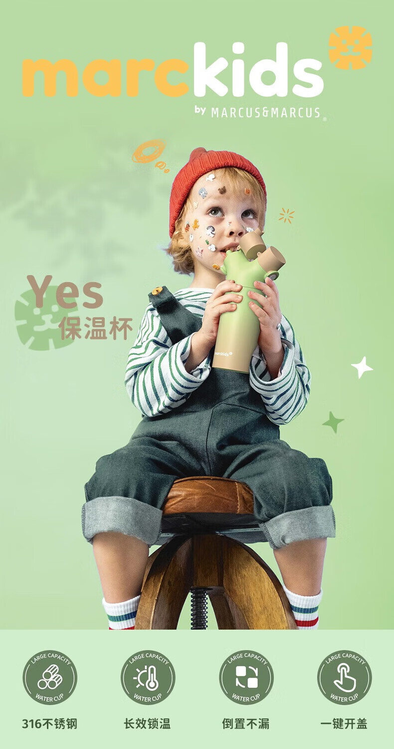 马库斯马库狮Yes保温杯316不锈钢大容量儿童成人直饮吸管保冷防摔水杯 森林探险 520ml Yes保温杯+杯带