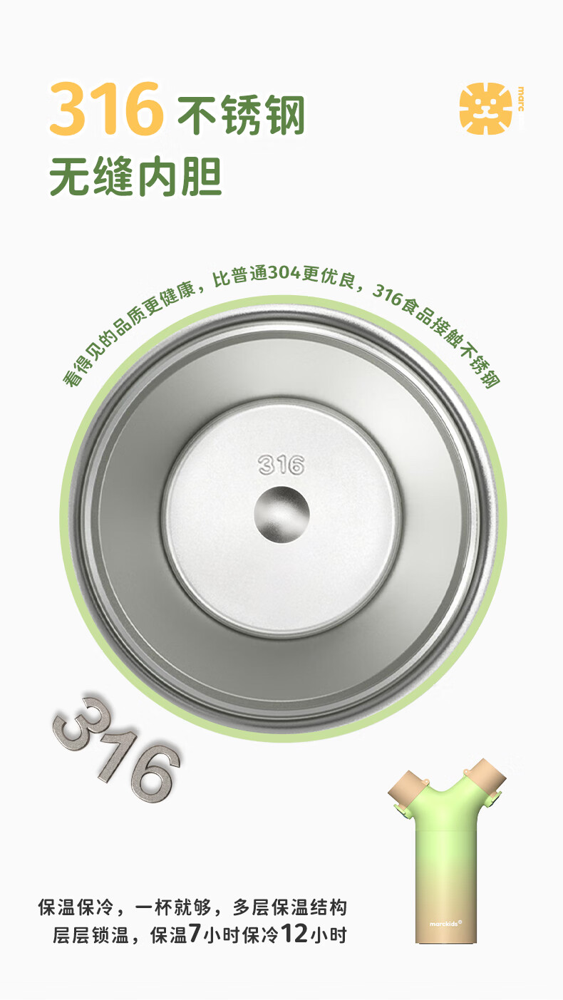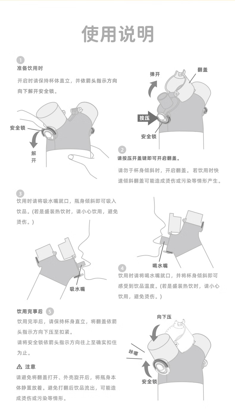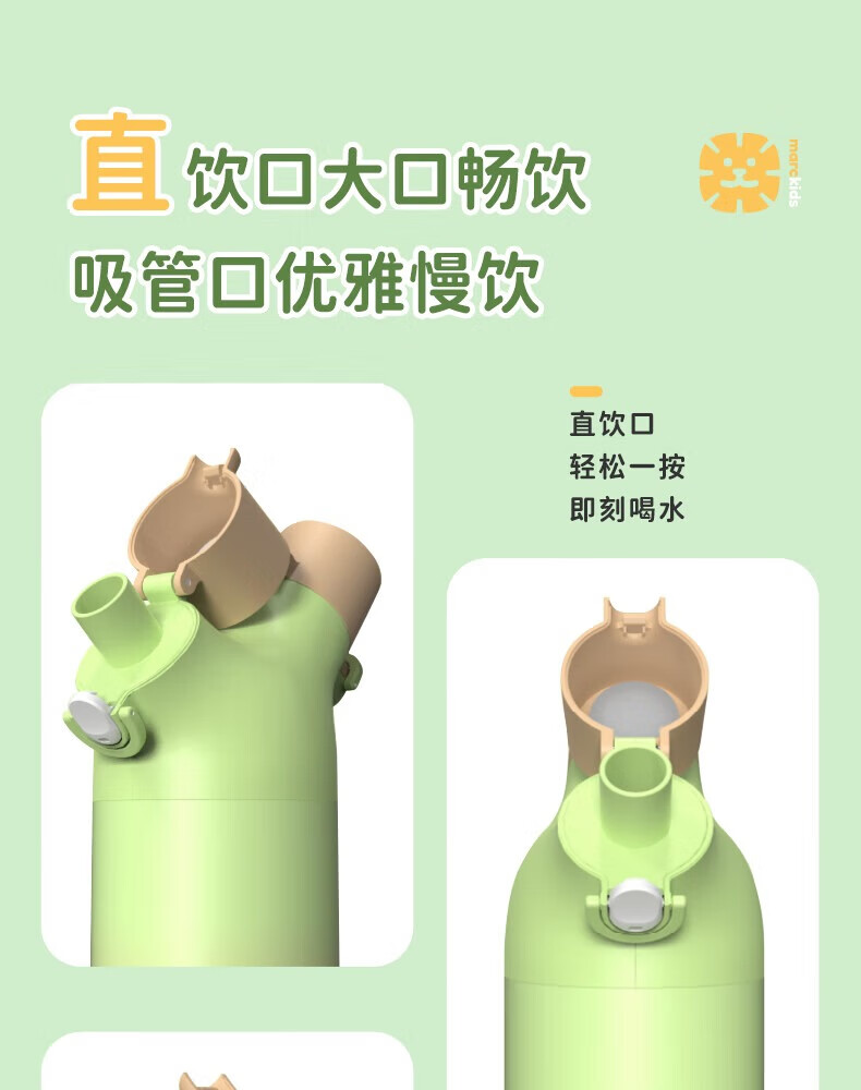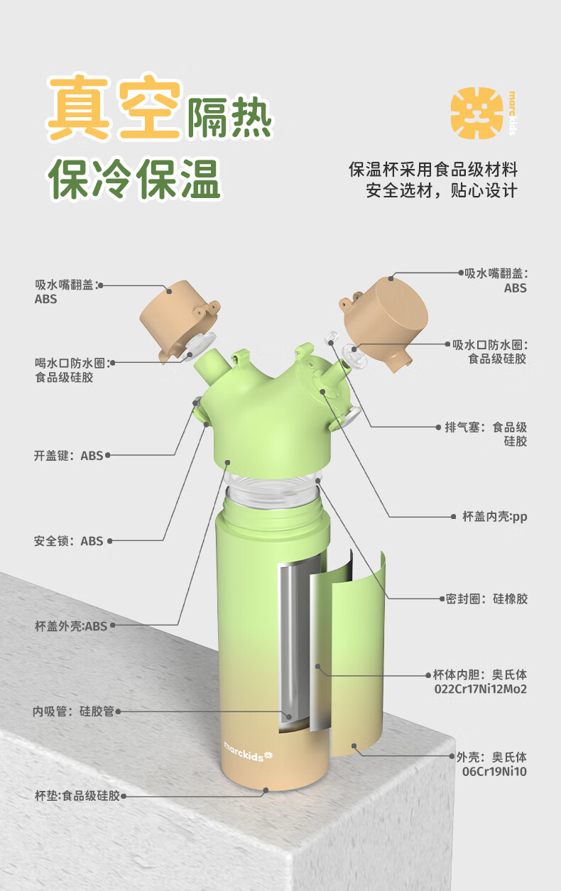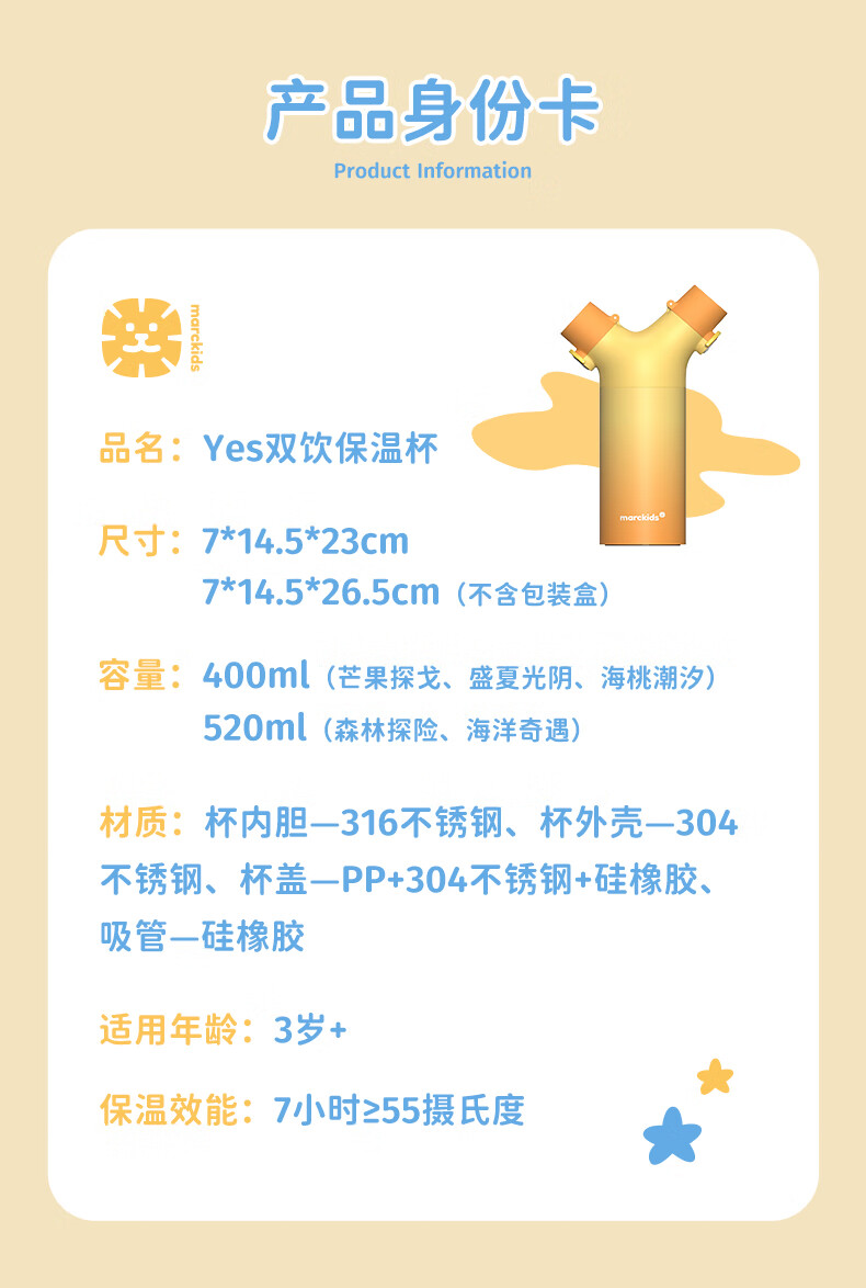 马库斯马库狮Yes保温杯316不锈钢大容量儿童成人直饮吸管保冷防摔水杯 森林探险 520ml Yes保温杯+杯带