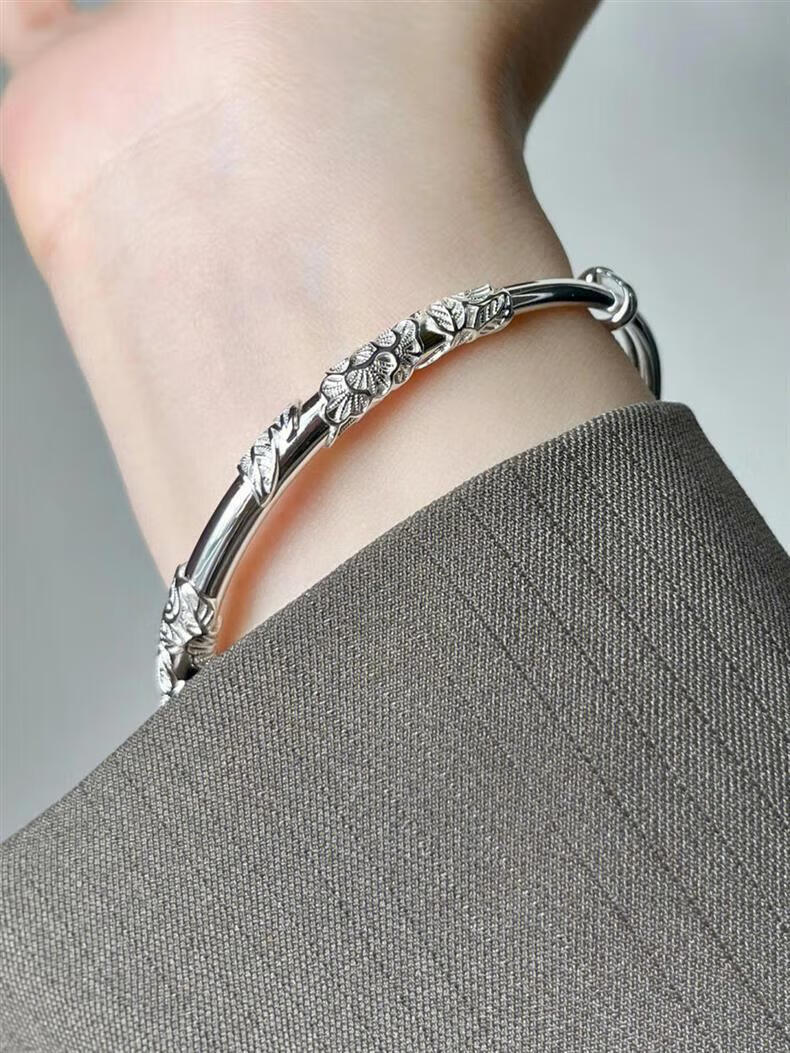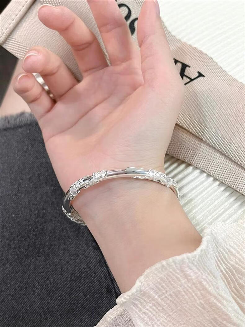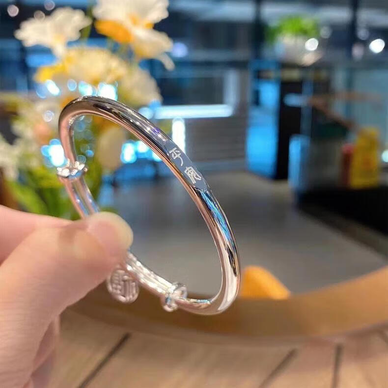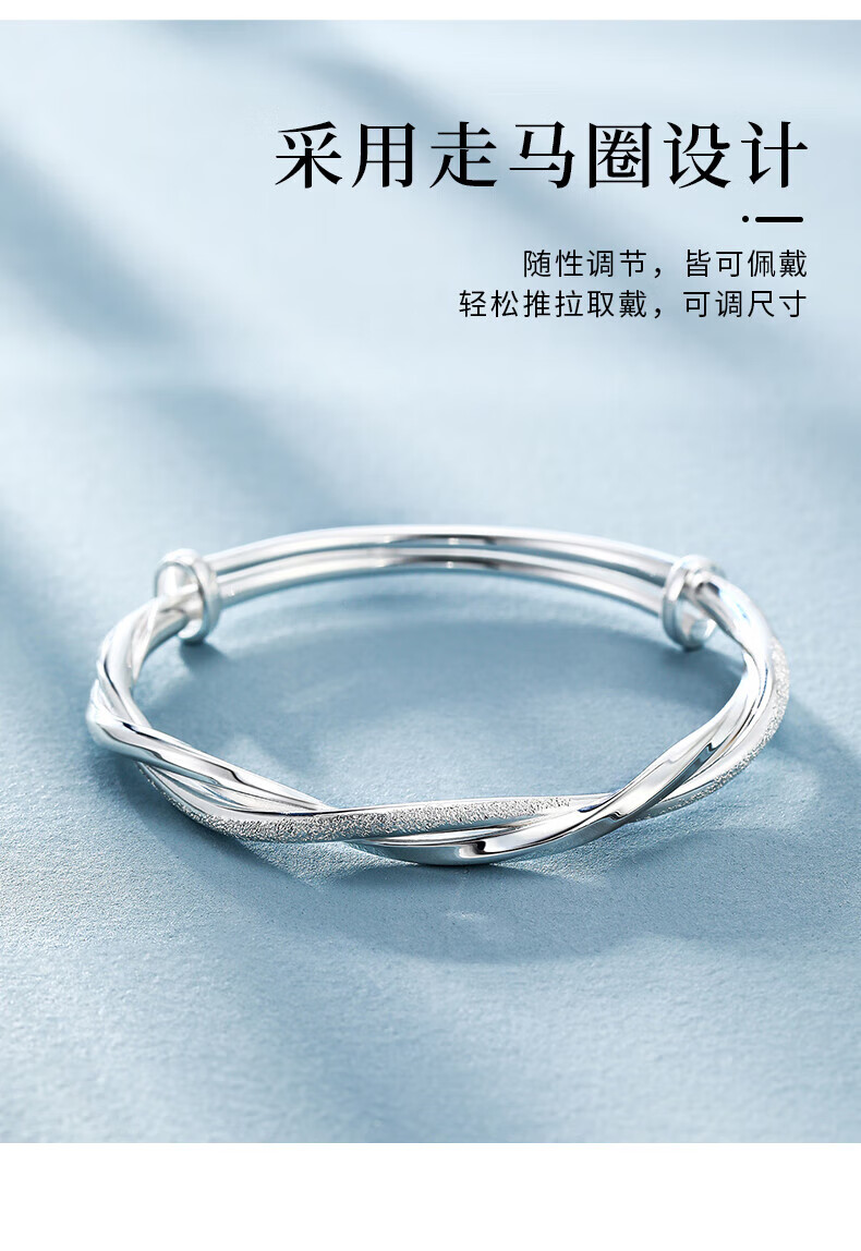 老凰祥足银9999浮云卷手镯新款纯银镯子卷草纹繁花手环礼物送女友 祥云卷草纹描金圈口60