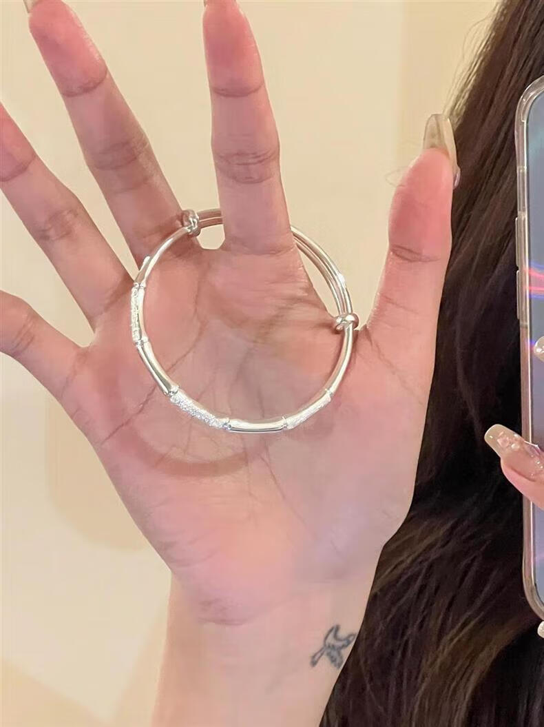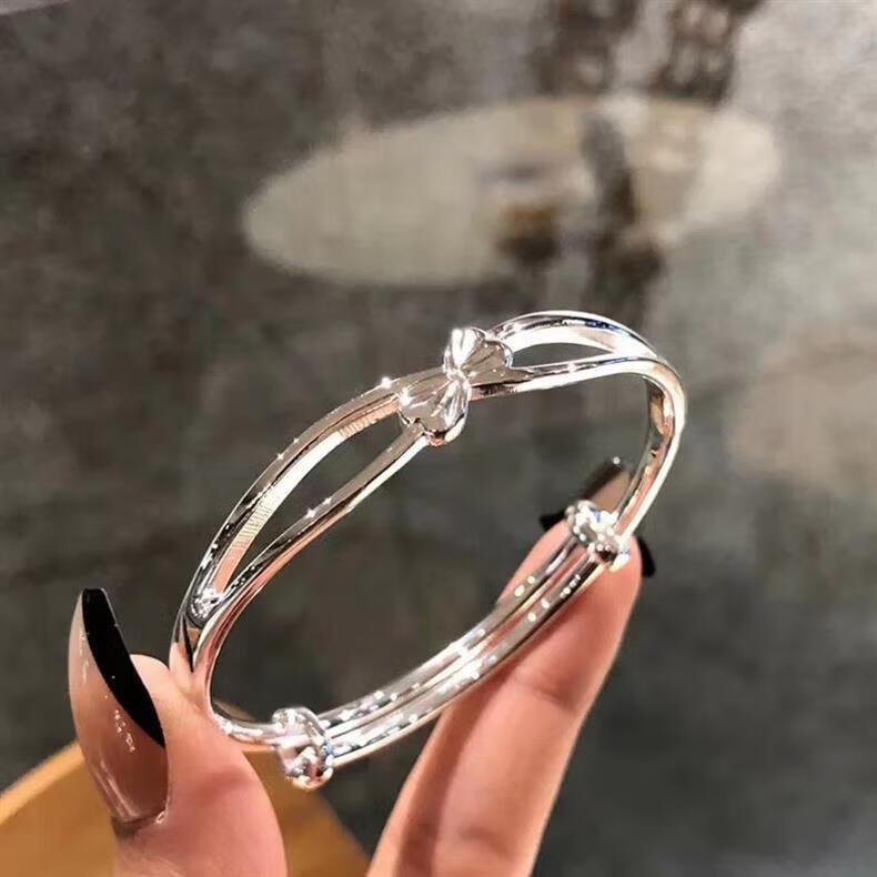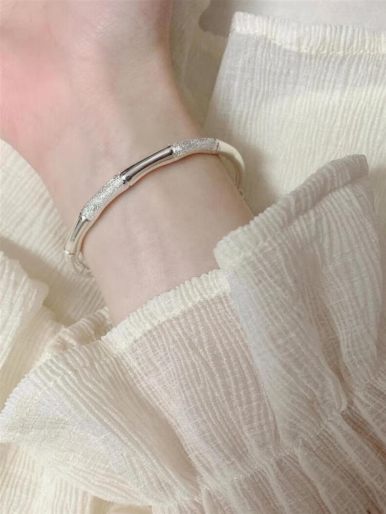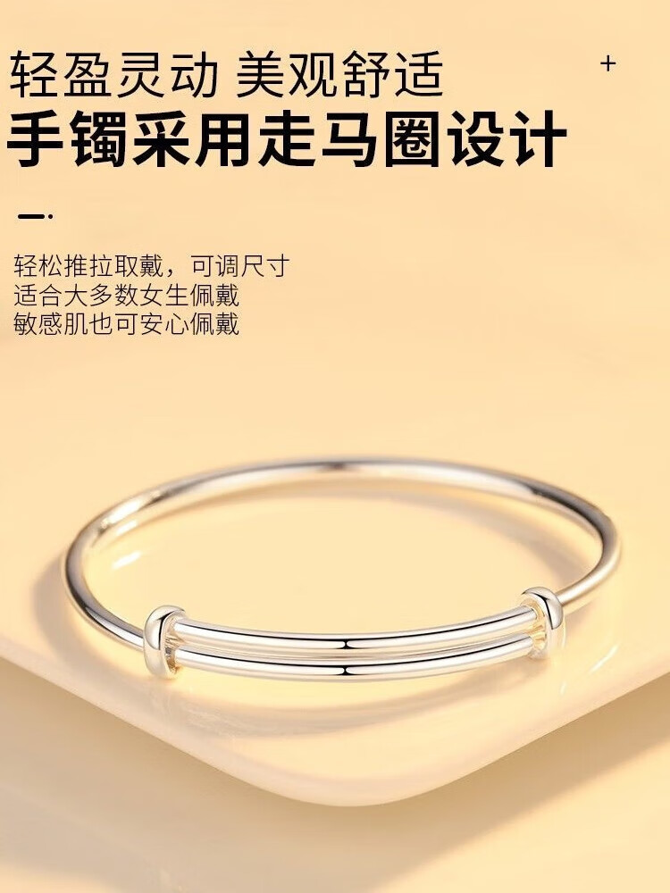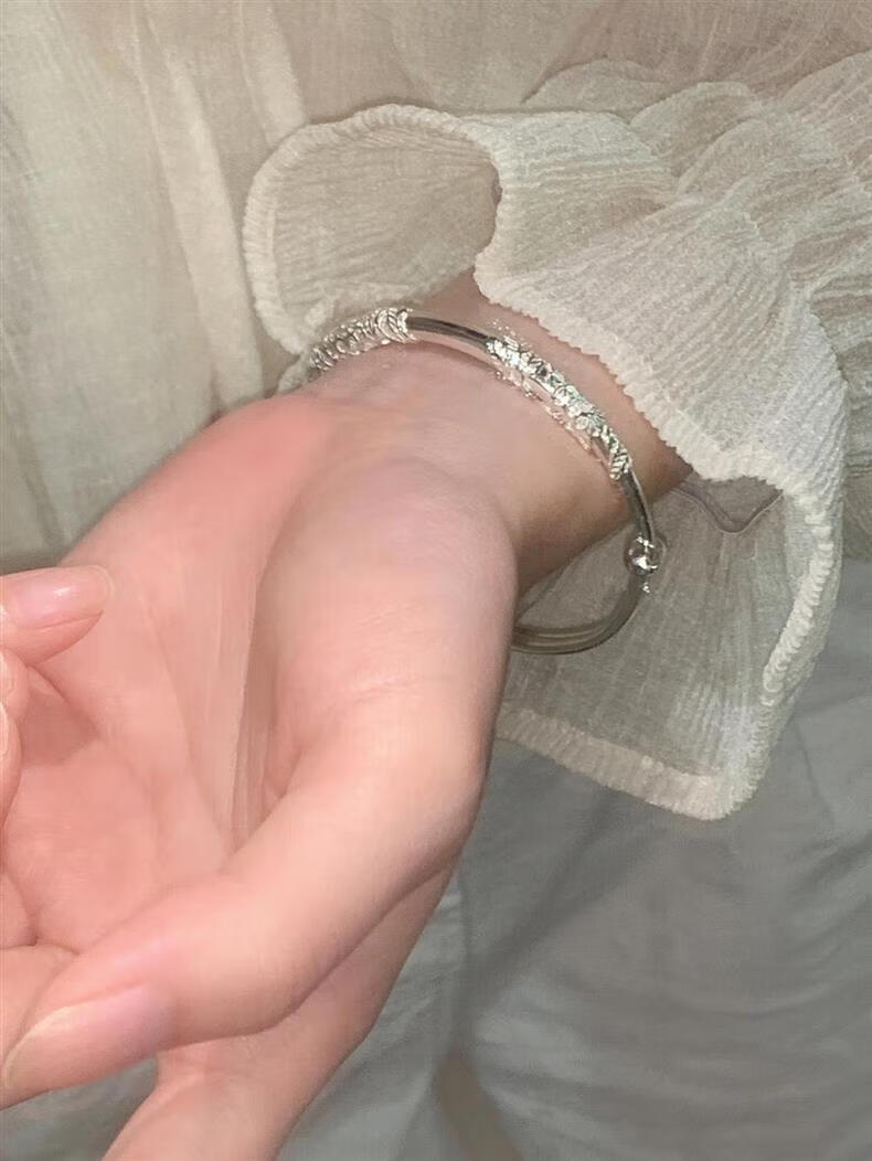 老凰祥足银9999浮云卷手镯新款纯银镯子卷草纹繁花手环礼物送女友 祥云卷草纹描金圈口60