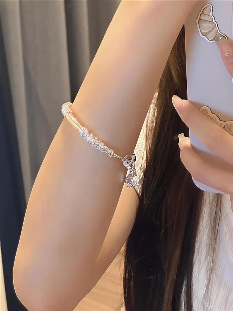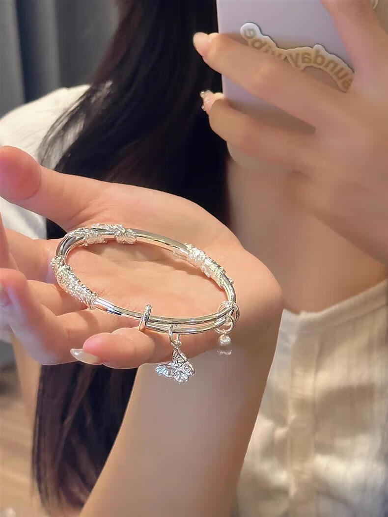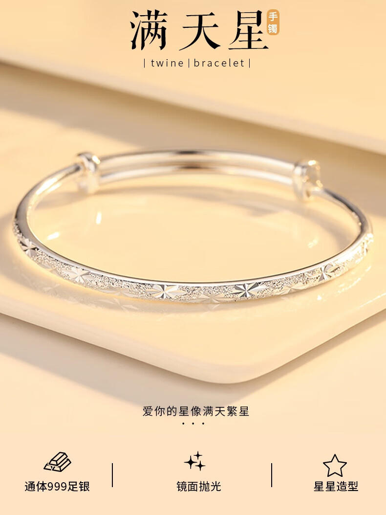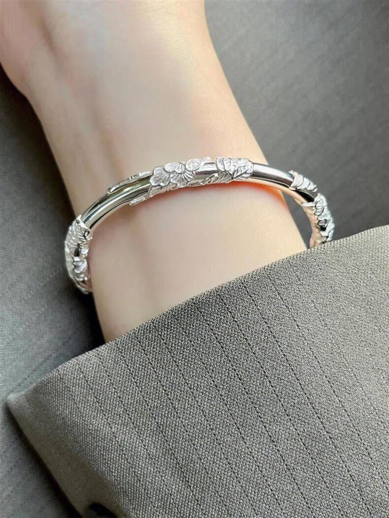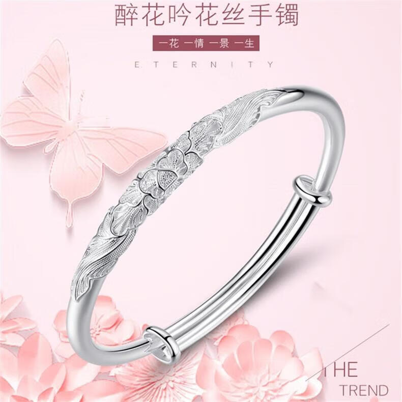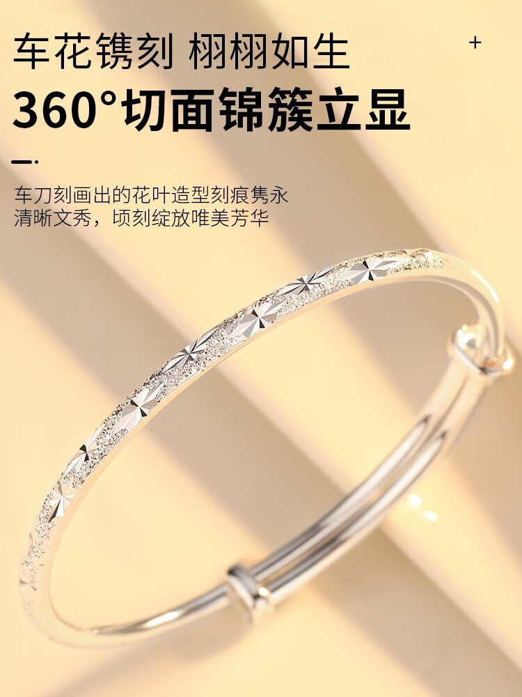 老凰祥纯银手镯女繁花似锦9999实心足银镯子年轻款送女友生日礼物 30克 繁花似锦 【送礼盒+证书】