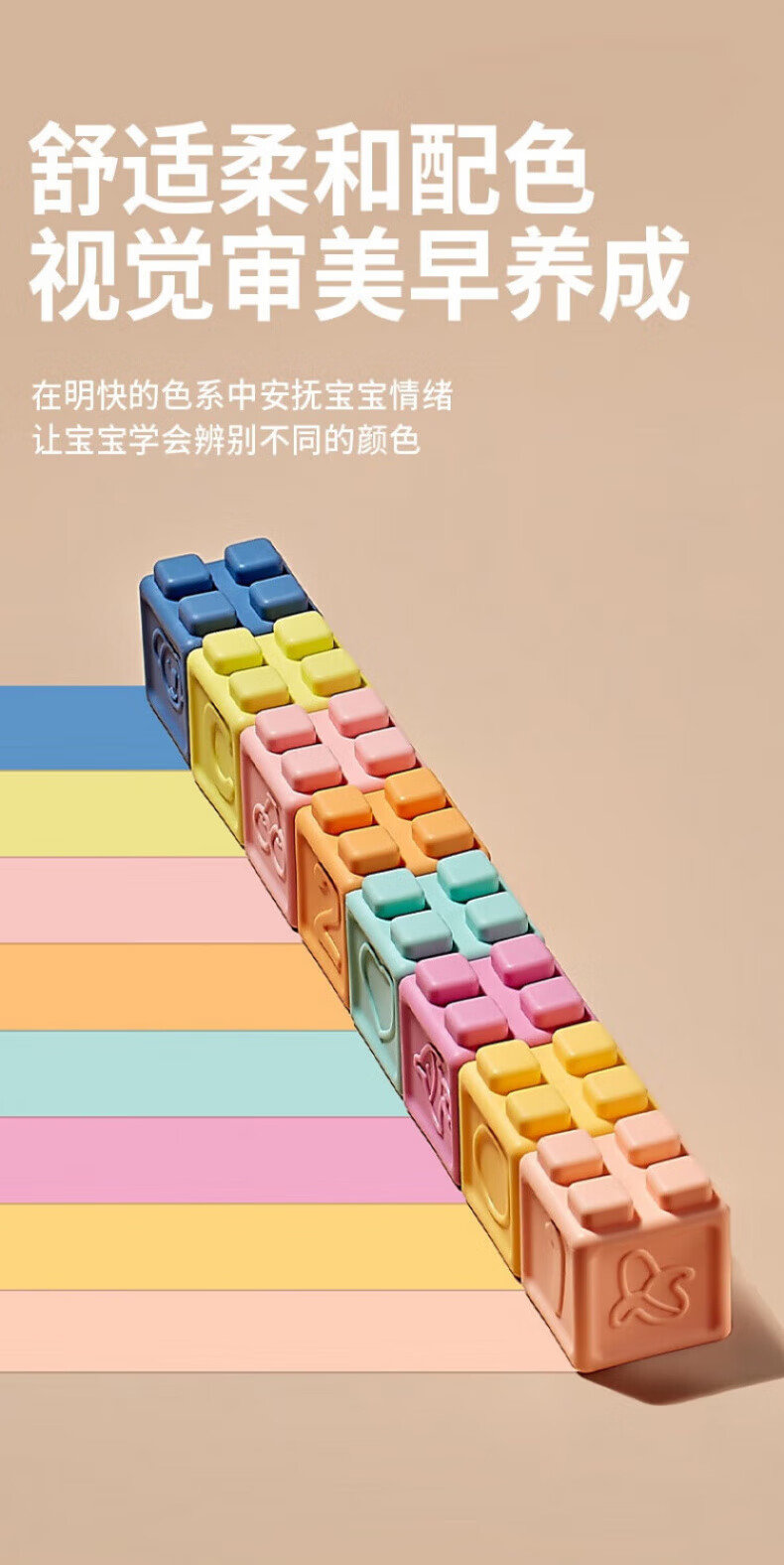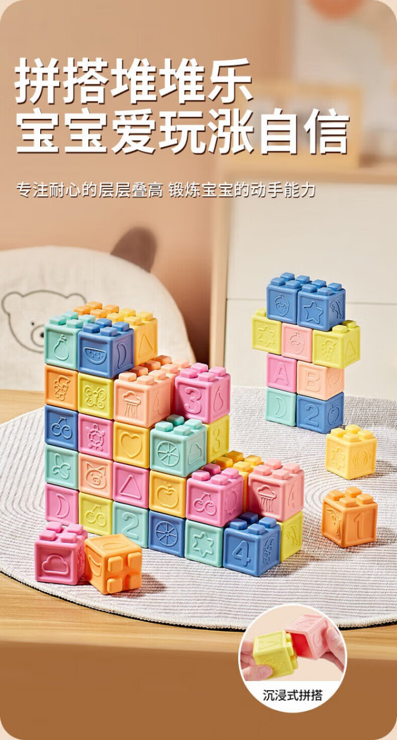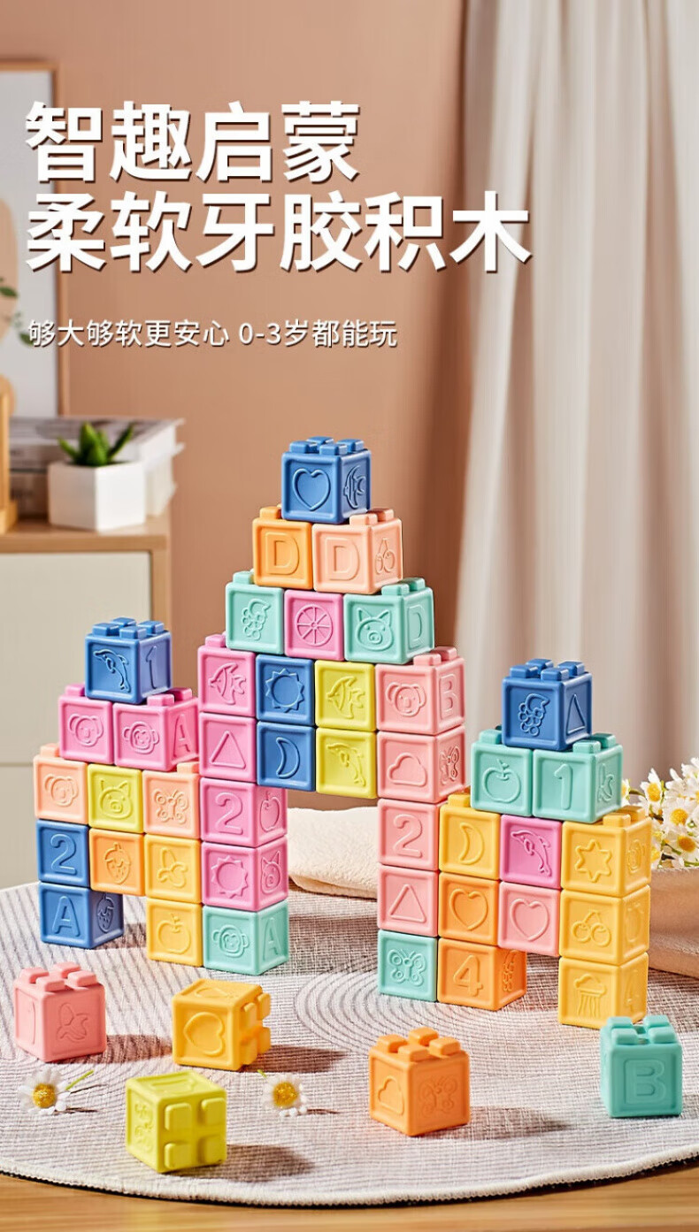 飒望德国软胶积木婴儿可啃咬食品级宝宝玩具0一1岁婴幼儿中秋国庆礼物 软胶积木16件套【可水煮耐啃咬】