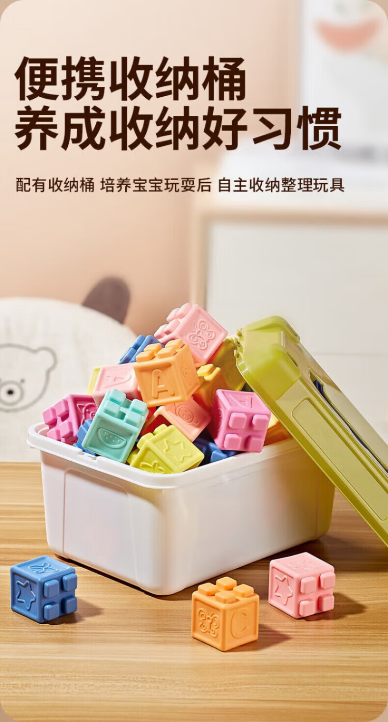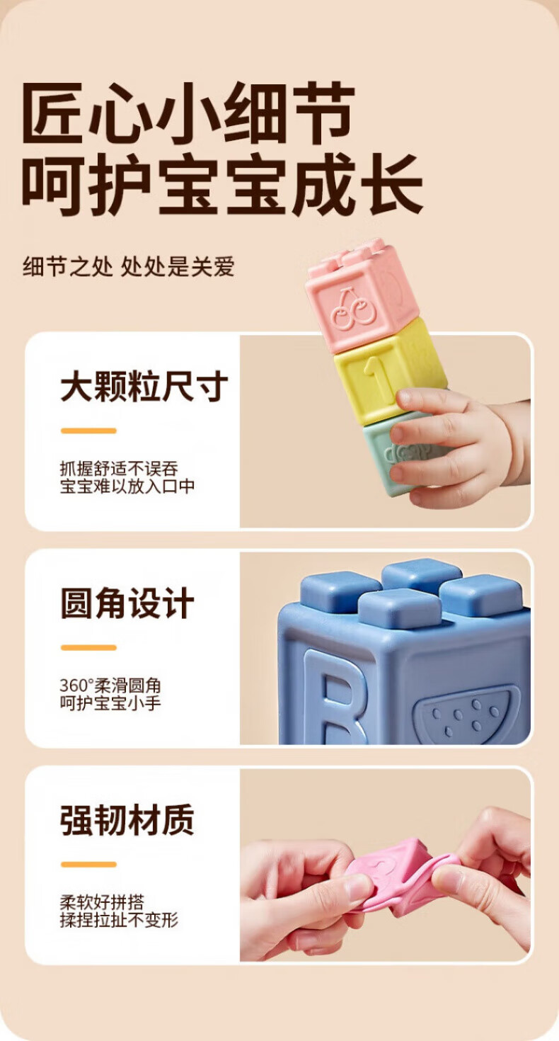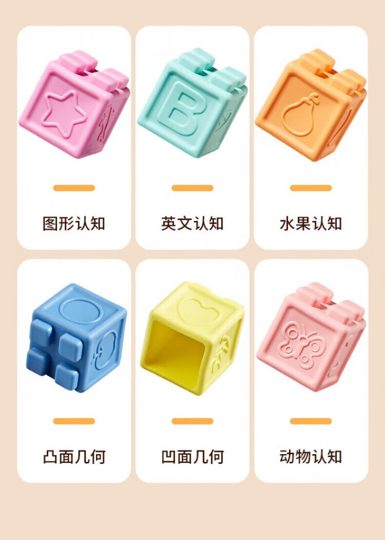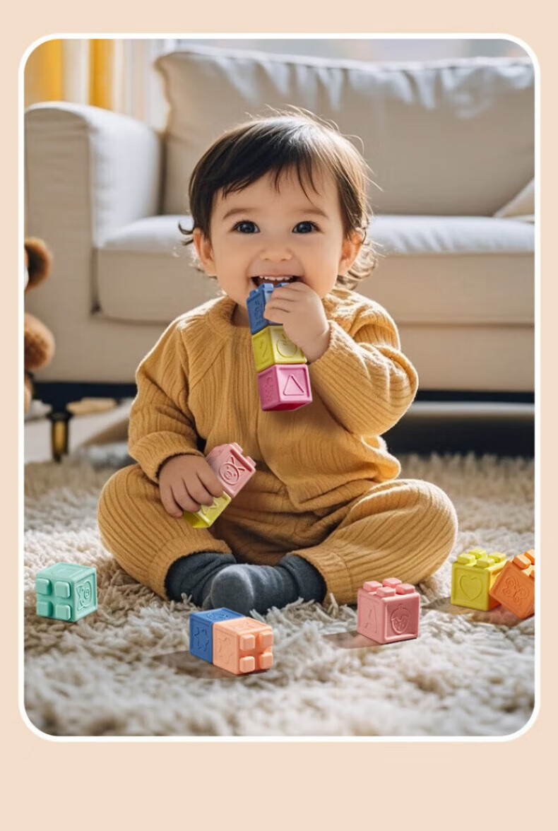 飒望德国软胶积木婴儿可啃咬食品级宝宝玩具0一1岁婴幼儿中秋国庆礼物 软胶积木16件套【可水煮耐啃咬】