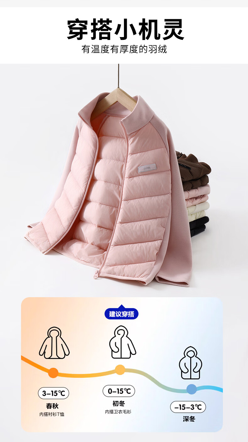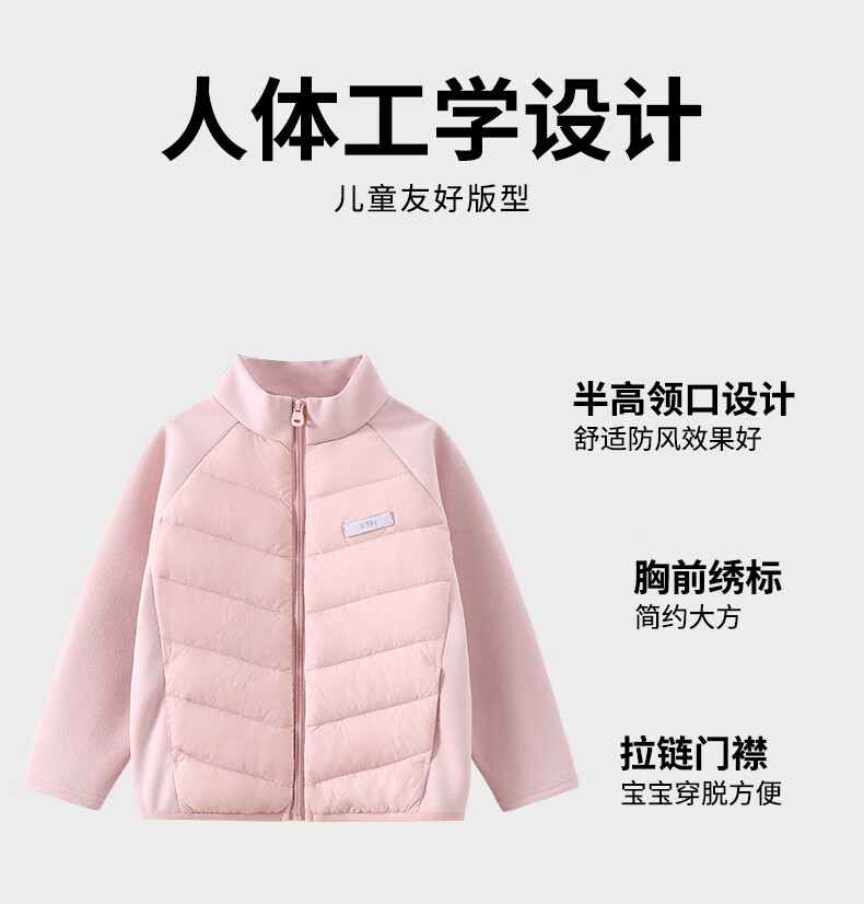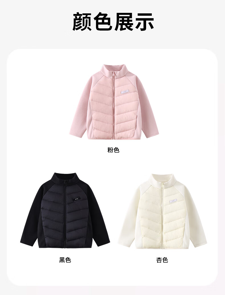 马克华菲(MARK FAIRWHALE)2025新款轻薄羽绒服冬季男女童拼接外套内外穿白鸭绒中大童上衣 M魔术贴K杏色 140