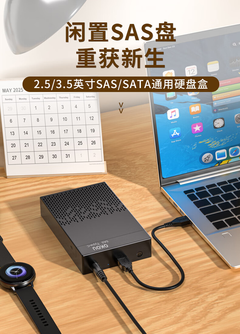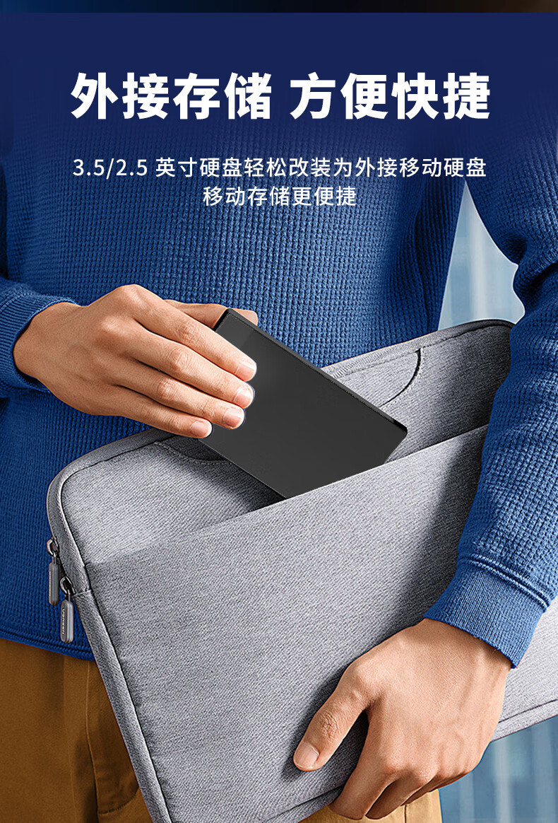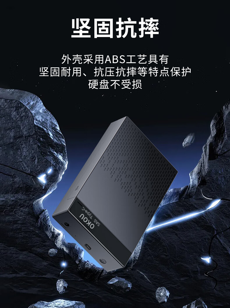 OKOU移动硬盘盒2.5/3.5英寸SATA/SAS固态硬盘盒Type-C外置硬盘盒子笔记本电脑台式机械SSD固态机硬盘盒 3.5/2.5寸SATA/SAS硬盘盒+转接头