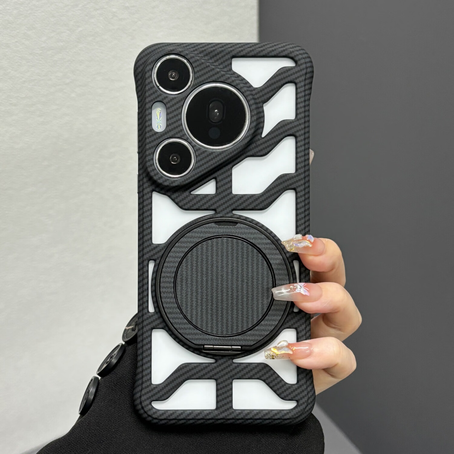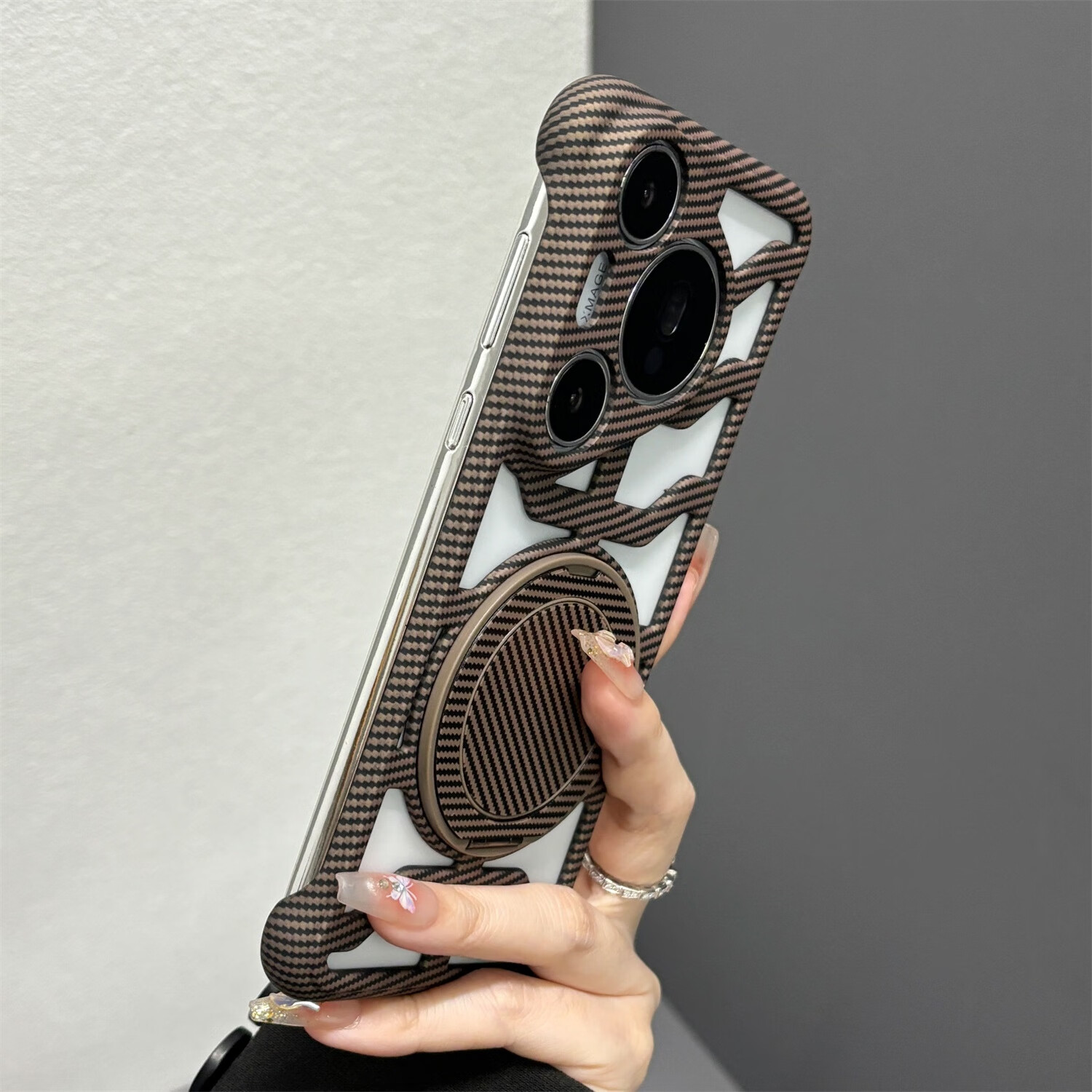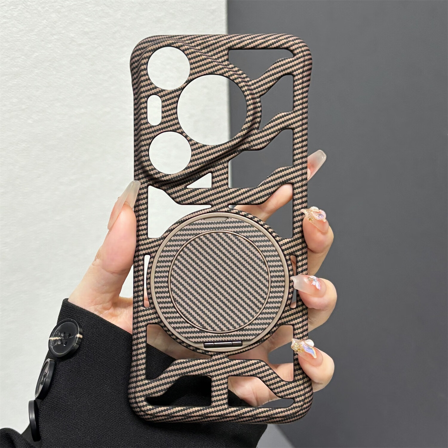 叒达适用华为Pura70手机壳荣耀300Ultra缕空碳纤维纹360支架红米K80新mate70/60/50/40/30Epro+硬透气 【沙漠金】镂空碳纤维纹壳+一体360旋转支架 红米K70pro