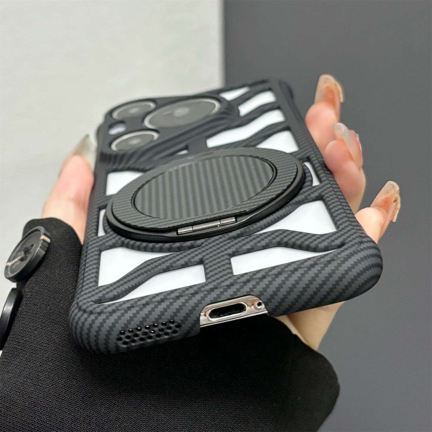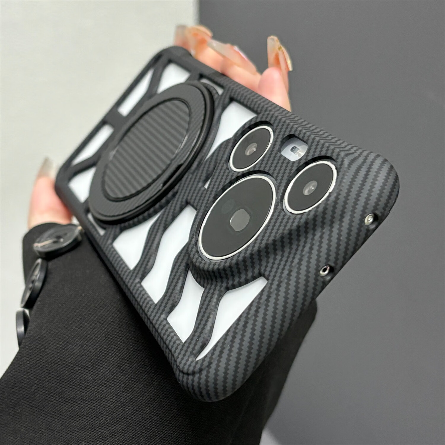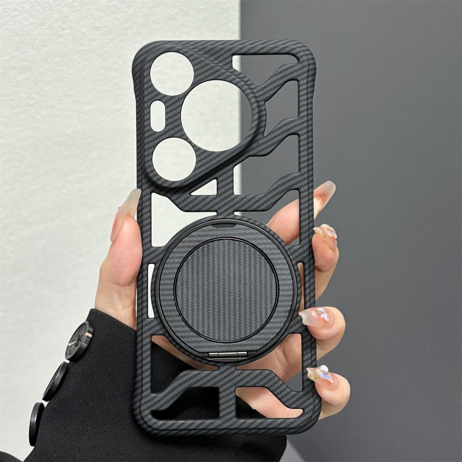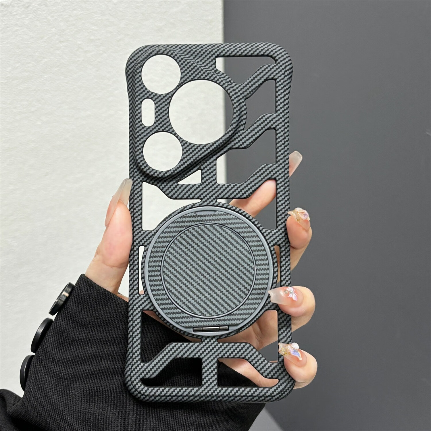 叒达适用华为Pura70手机壳荣耀300Ultra缕空碳纤维纹360支架红米K80新mate70/60/50/40/30Epro+硬透气 【沙漠金】镂空碳纤维纹壳+一体360旋转支架 红米K70pro