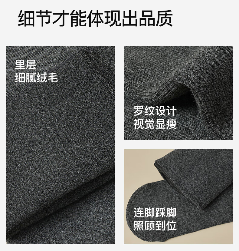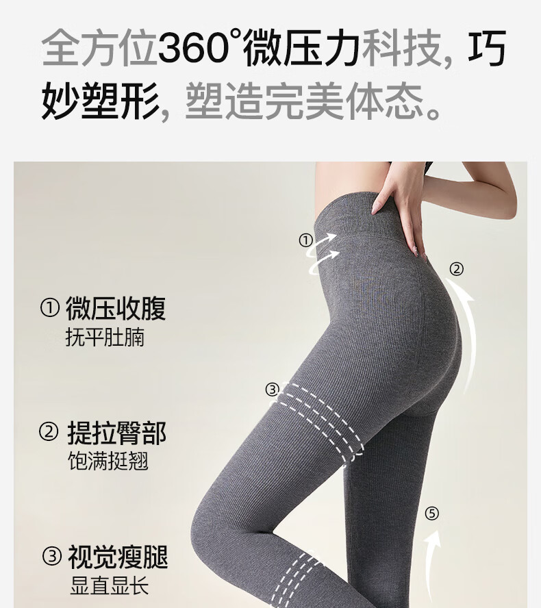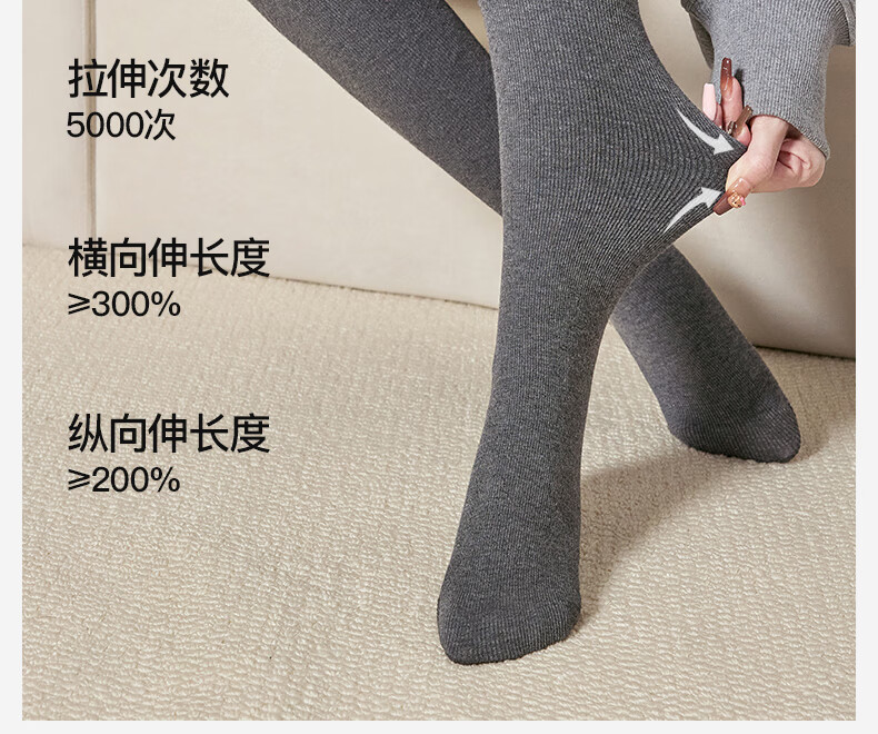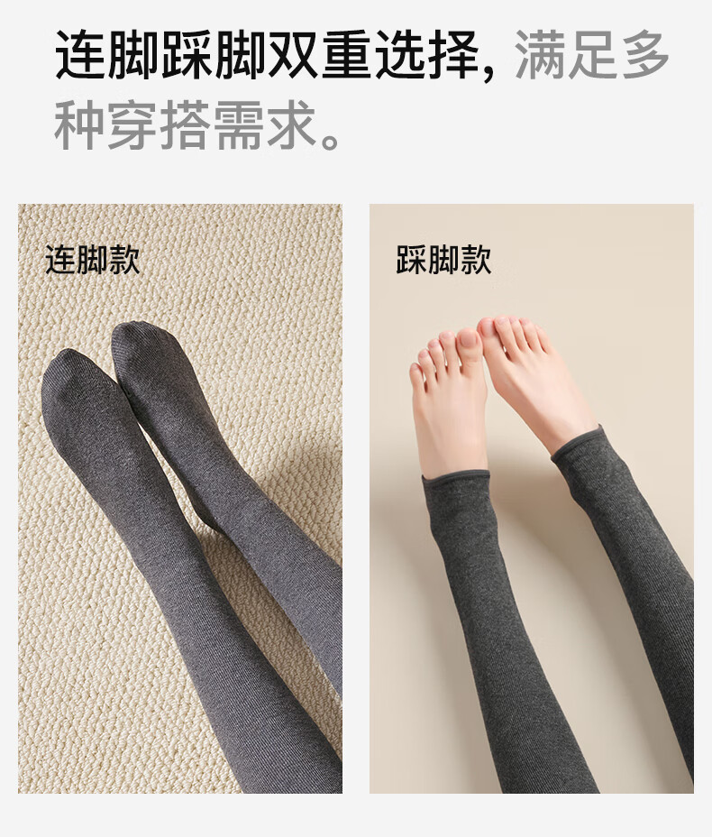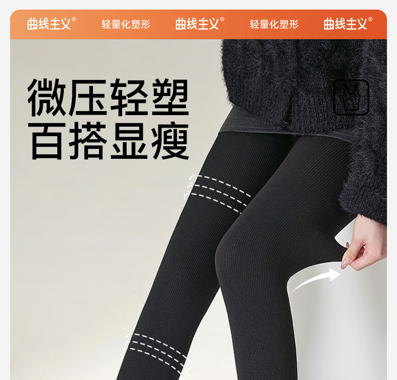 曲线主义打底裤女春秋加绒外穿罗纹显瘦美腿一体连裤袜修身显瘦丝袜女 连脚-深灰色 均码 1条 均码 无绒