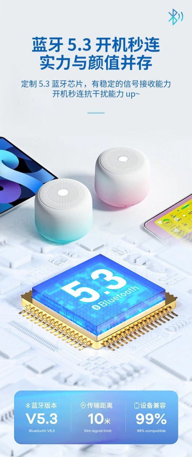 其他品牌小米同款芯片蓝牙小音响充电迷你低音炮无线车载浴室防水便携高音 落樱粉[长续航+大音量+稳定功率] 满两件9.9折