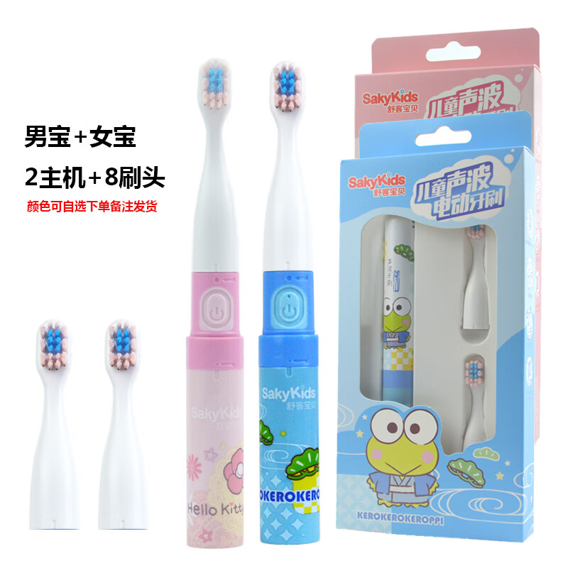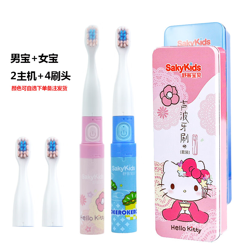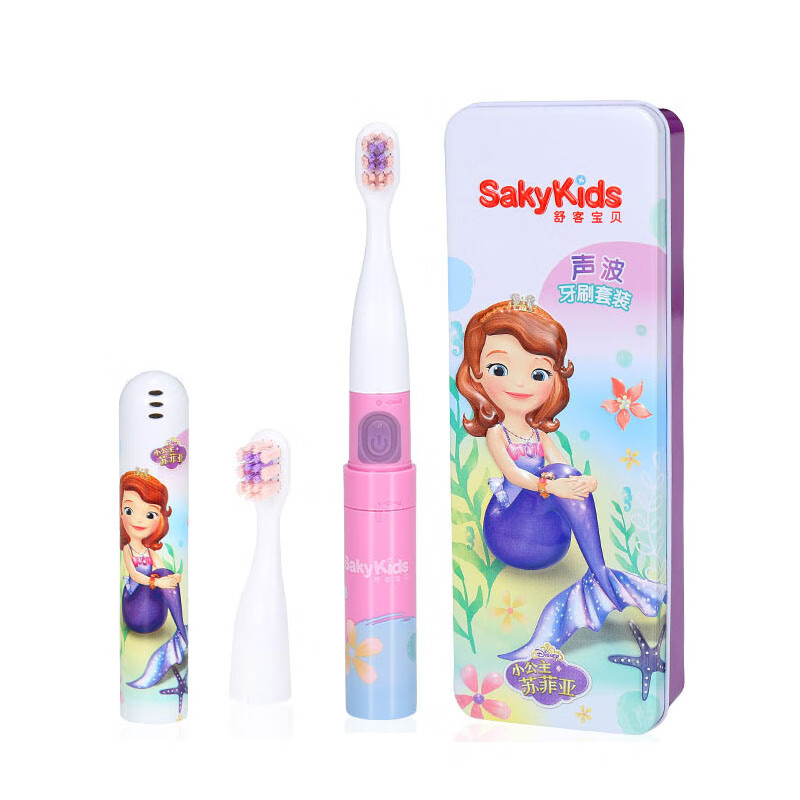 舒客宝贝sakykids2-6-12岁宝宝自动声波软毛男女B2超市同款 喵喵粉(1主机+2刷头) 电池款