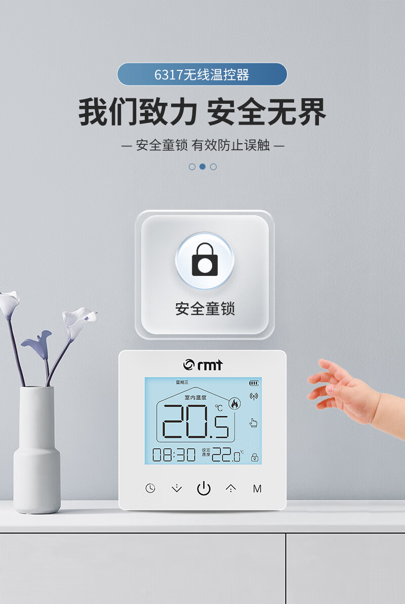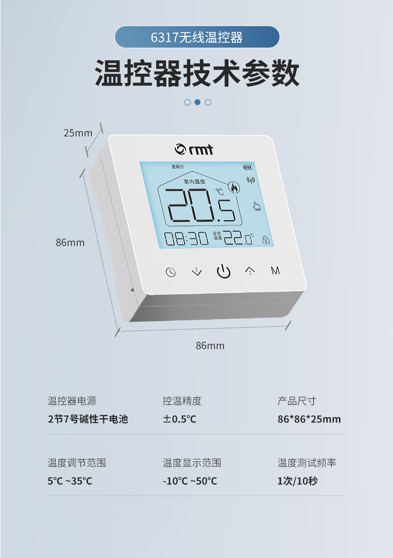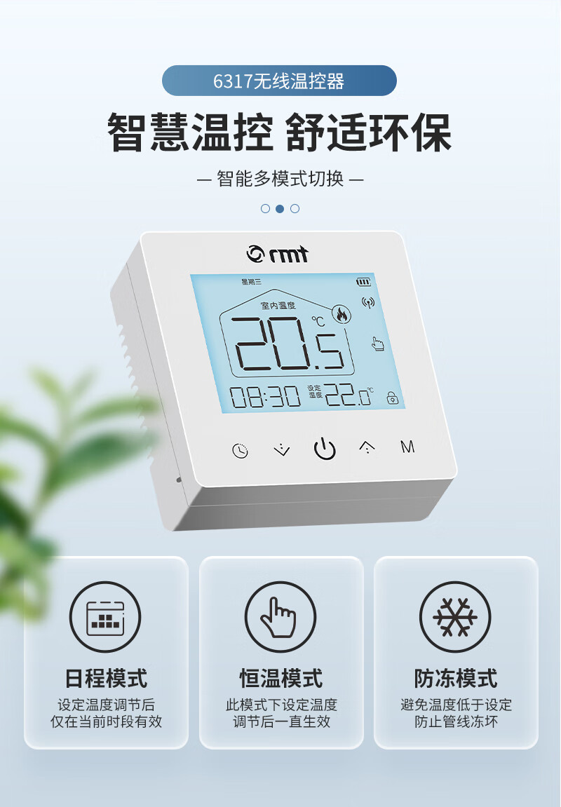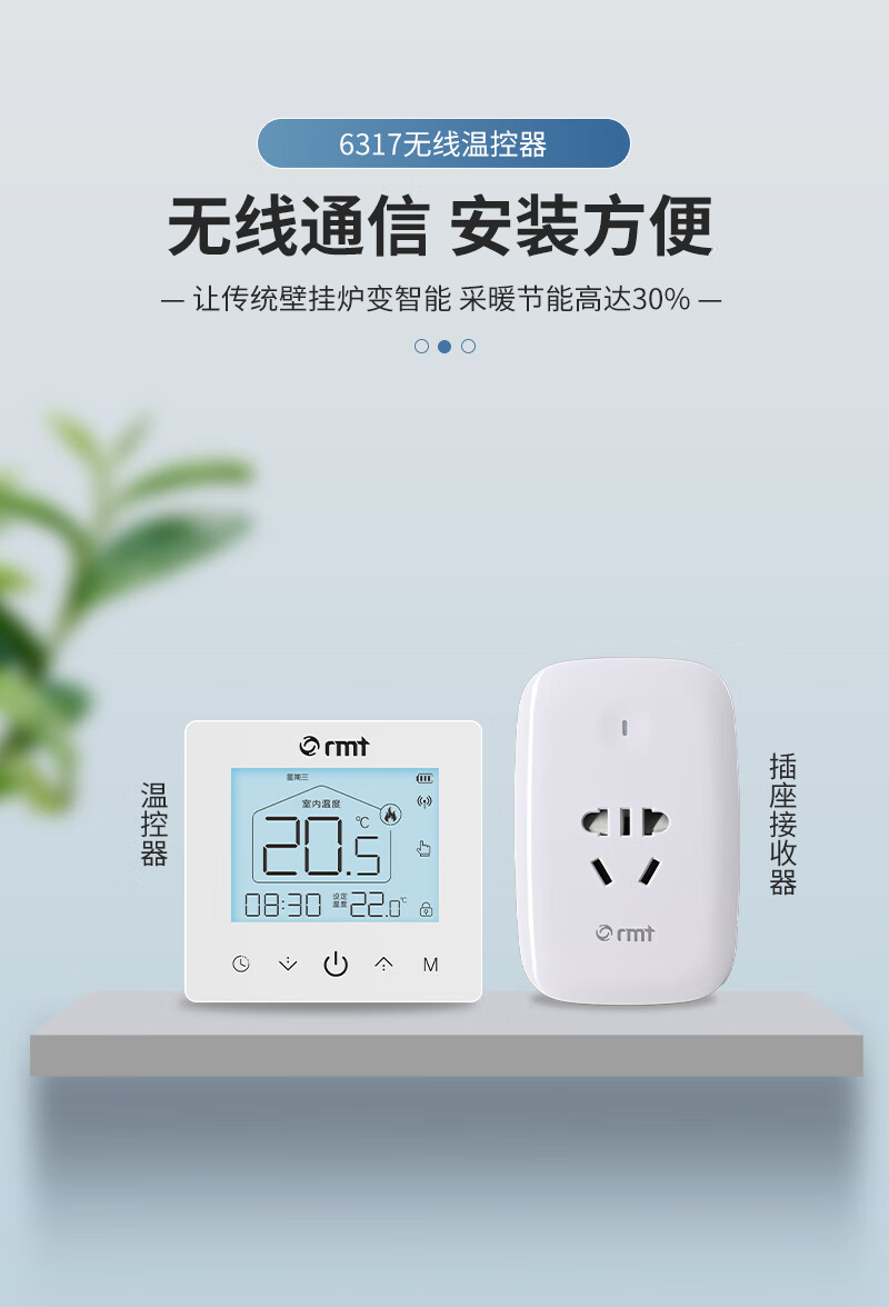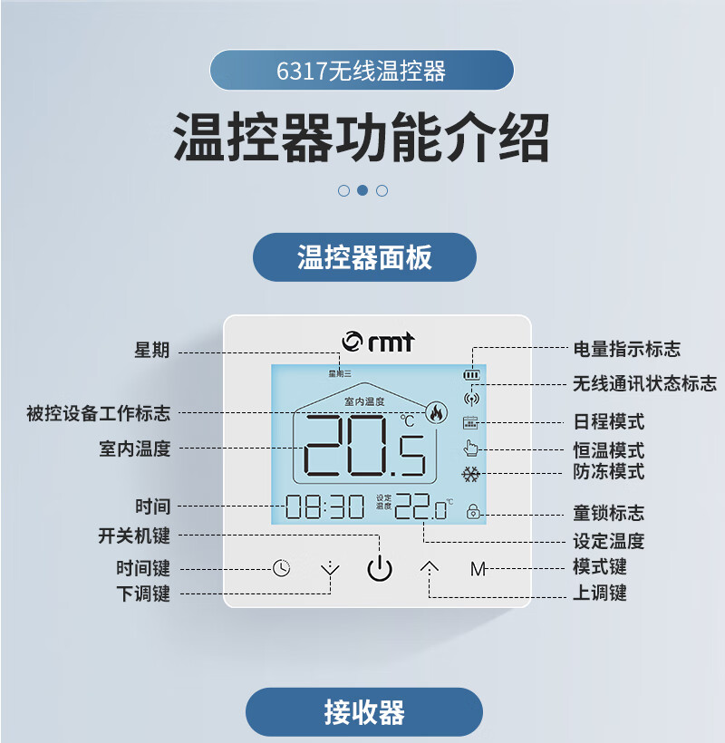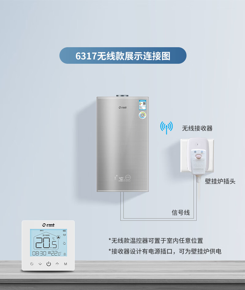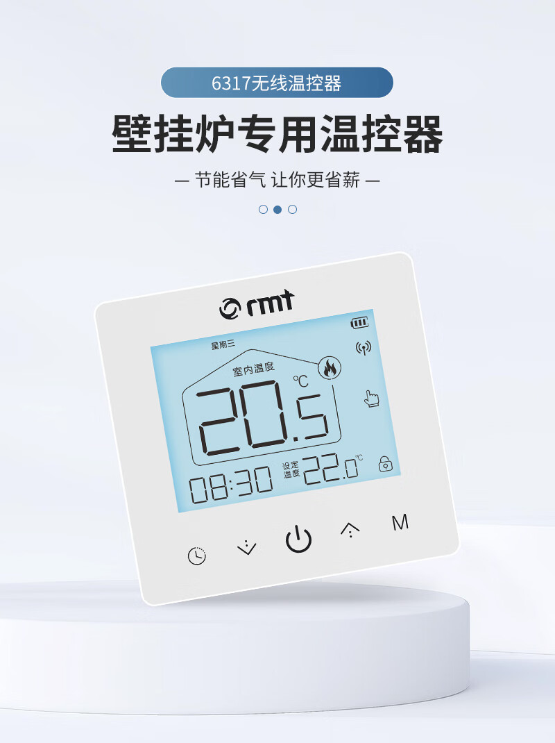 RMT壁挂炉无线温控器地暖控制可编程地暖电池通用燃气壁挂炉温控器 无线温控器(可放任意位置)
