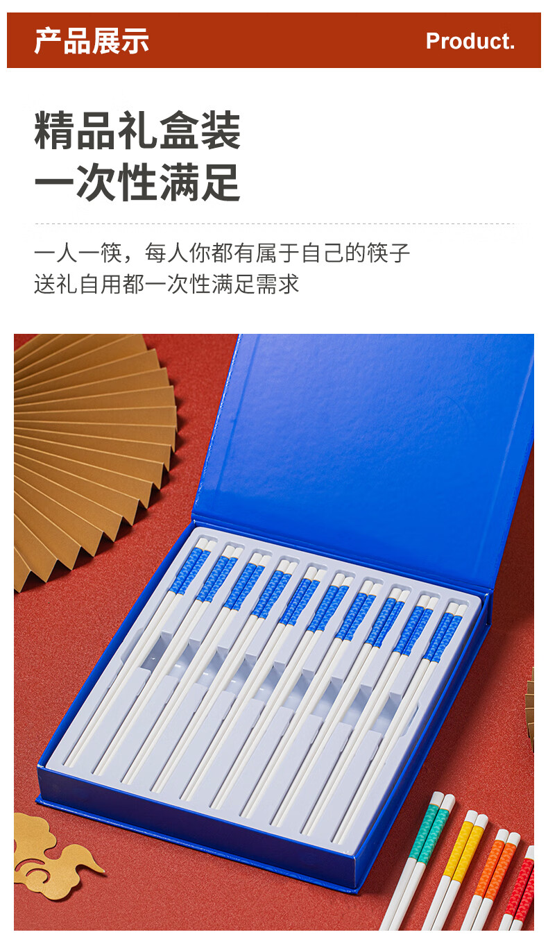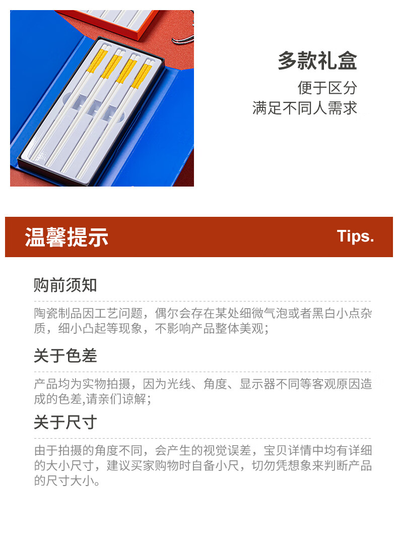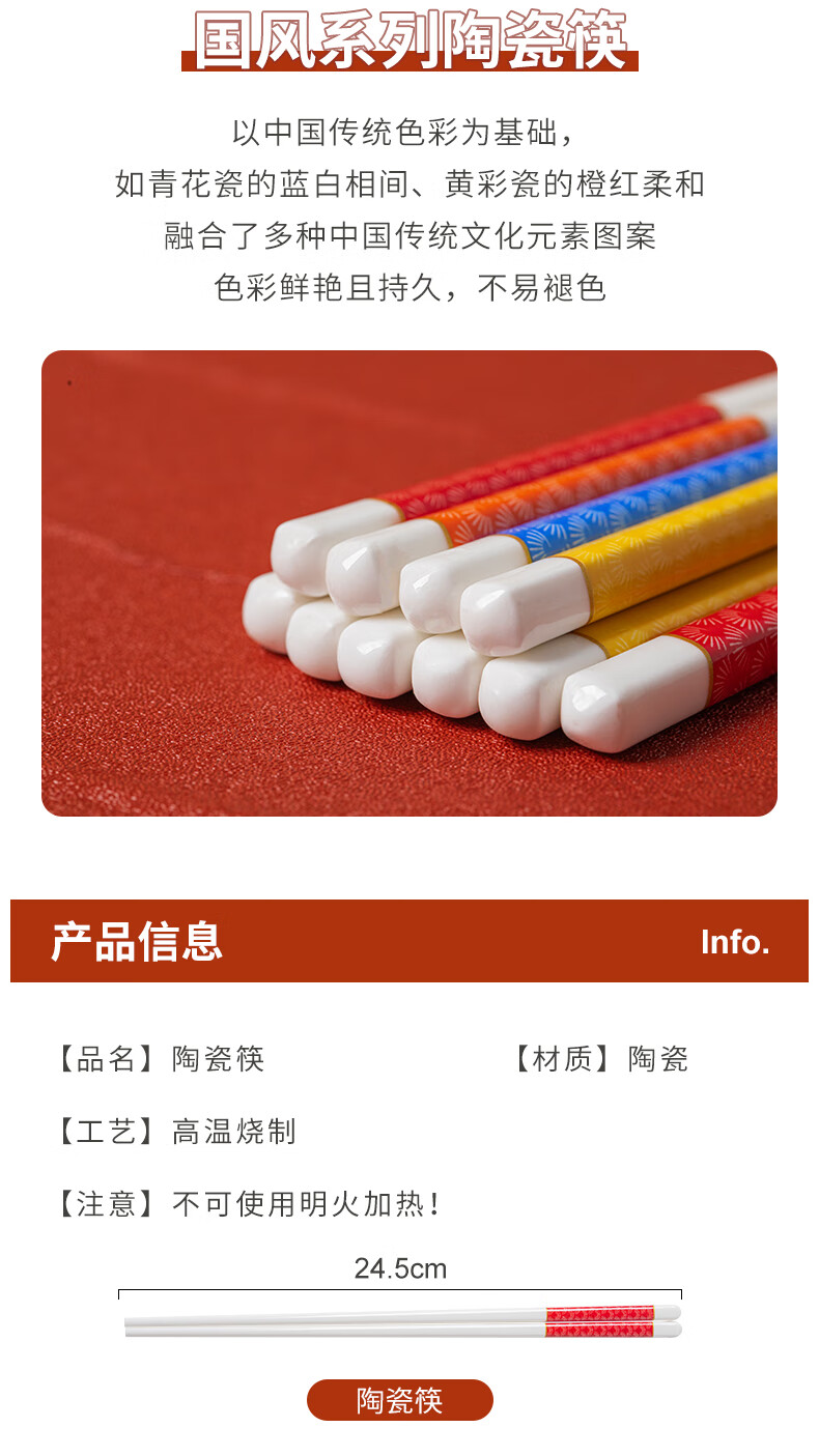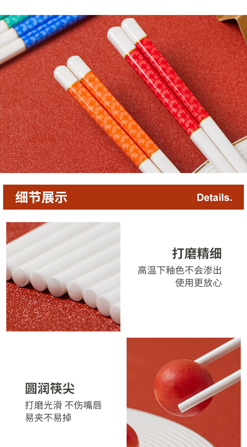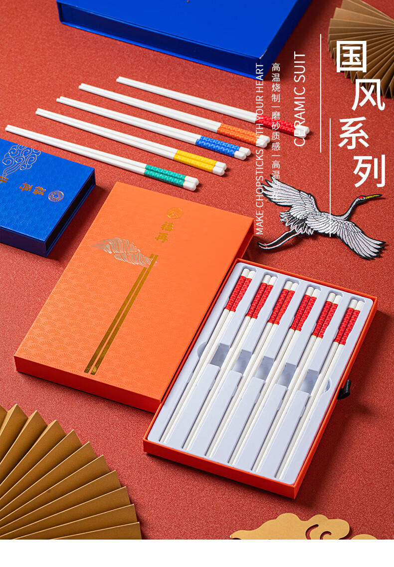 福再景德镇陶瓷筷子家用一人一双专人专用食品级抗菌防霉高级高档快子 公筷+一人一筷 6双