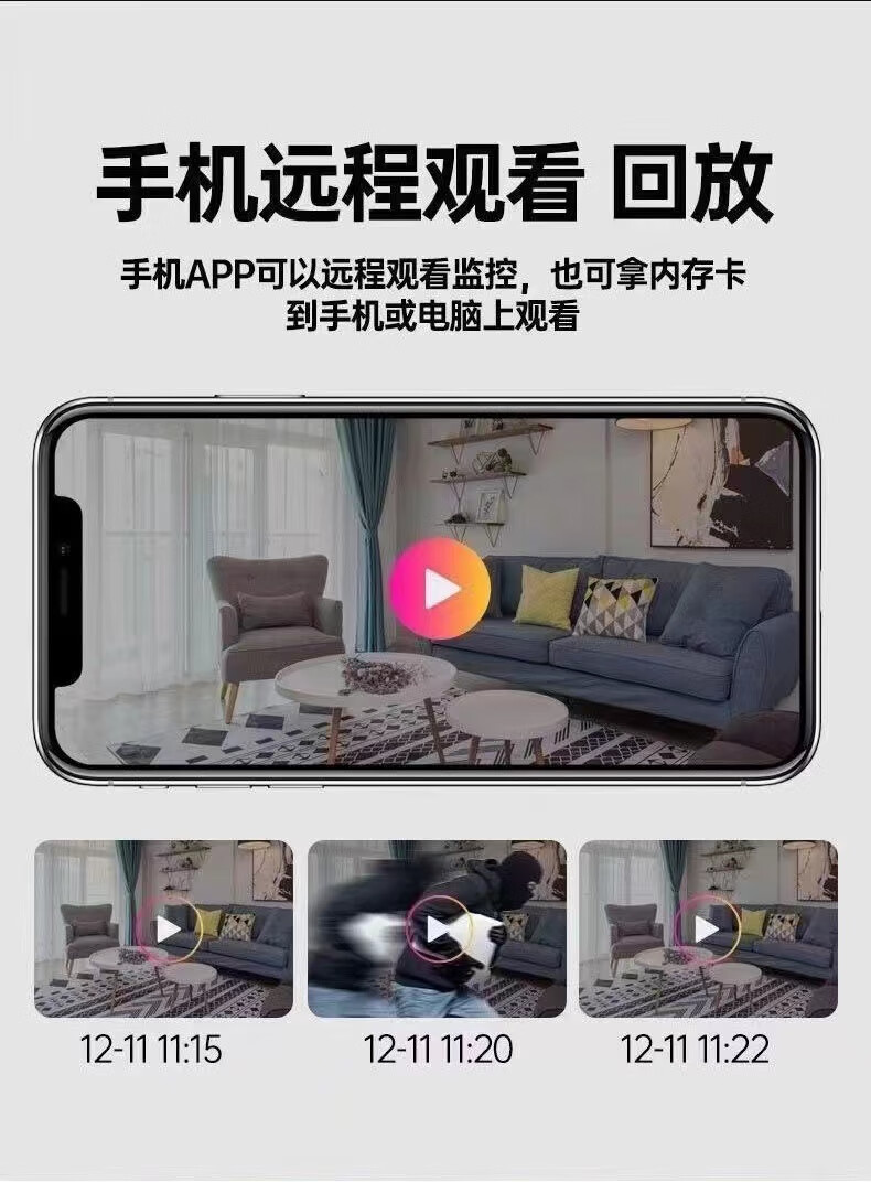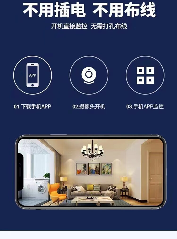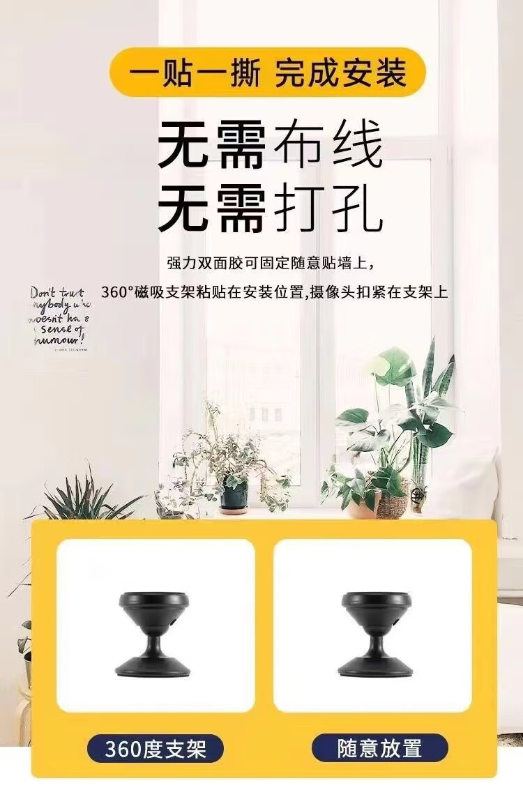无线摄像头WiFi可连手机远程家用防盗看家免插电无需网络监控器 高清【黑色】内置电池磁铁+支架 256G内存卡【录像回放】