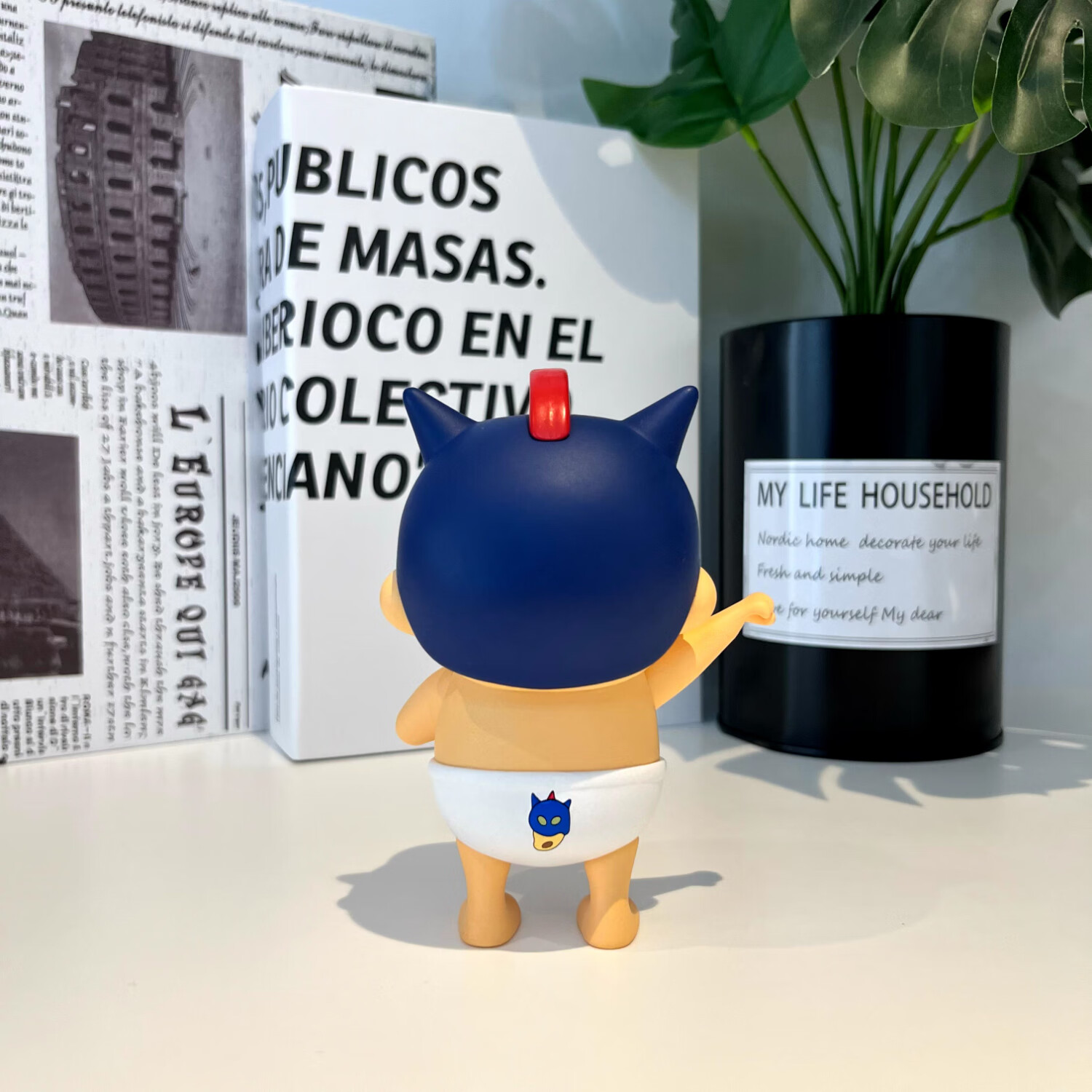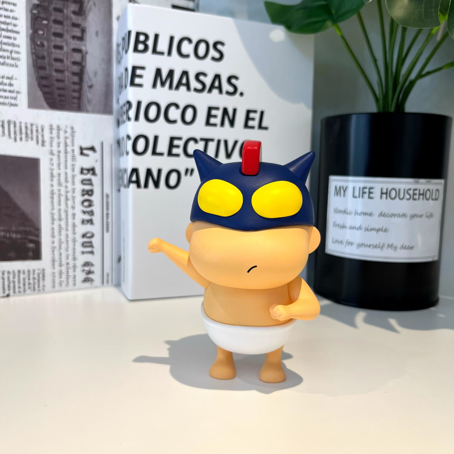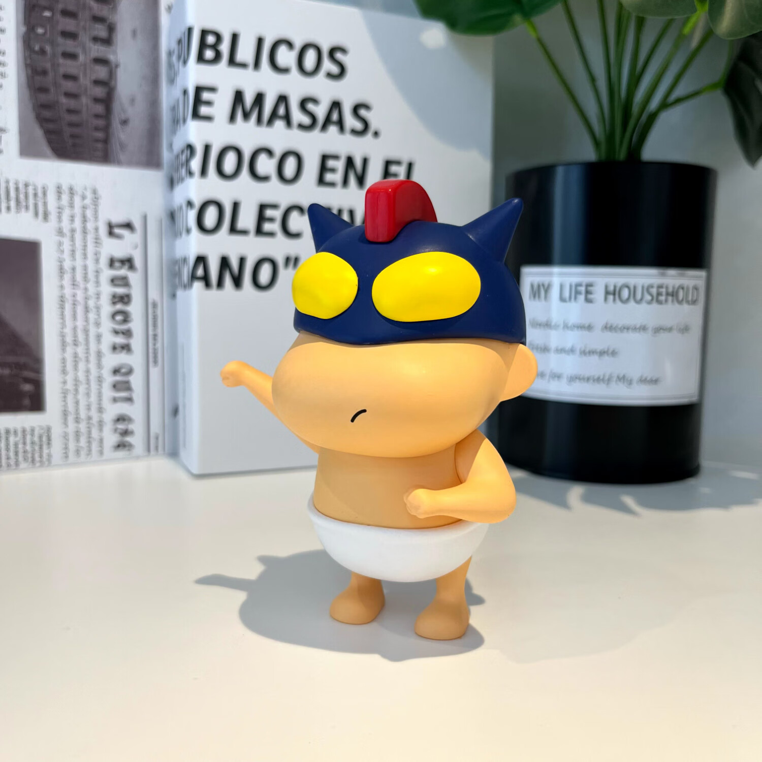 蜡笔小新正品潮玩具手办公仔头转动桌面摆件动漫周边男女生日礼物 蓝色小新40CM【赠帽子领带挎包】