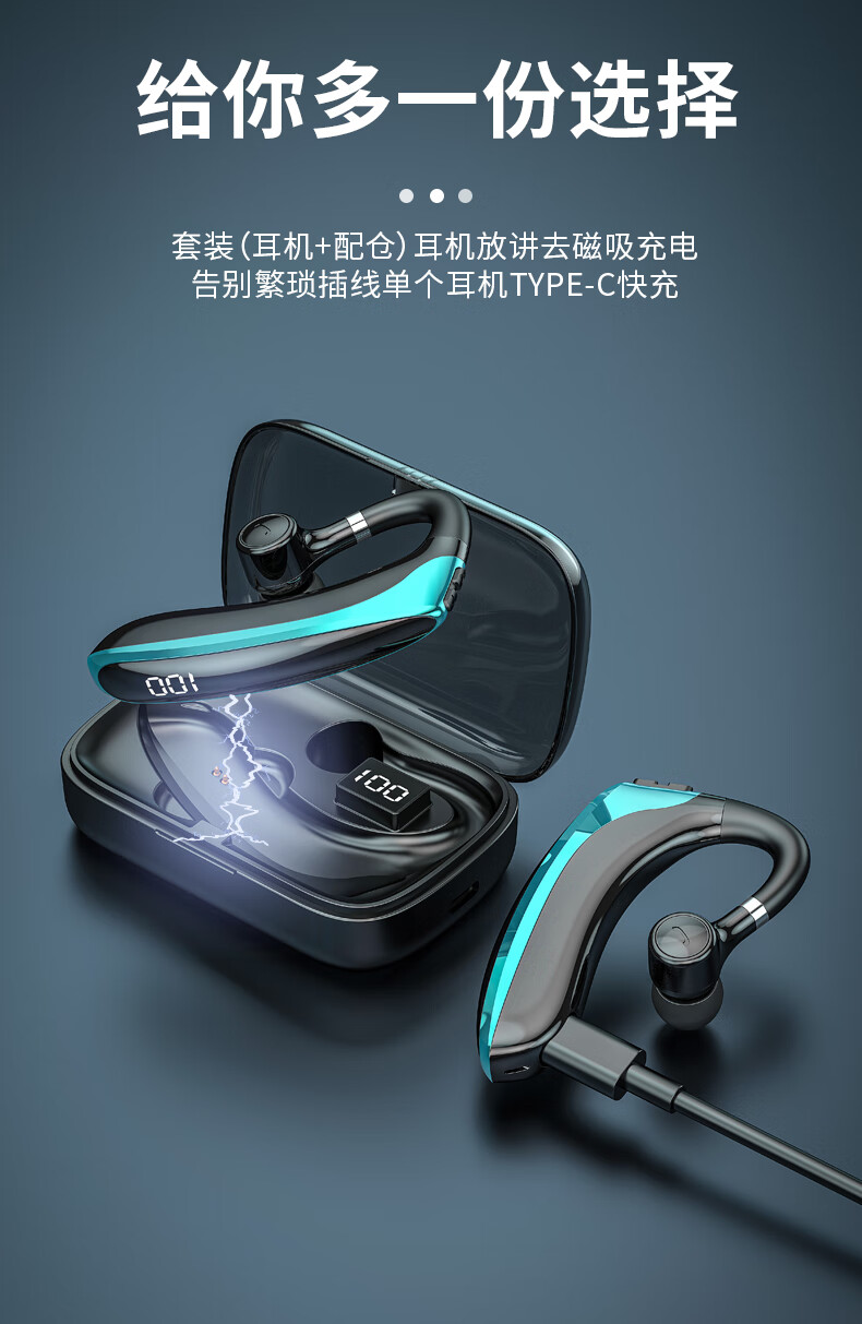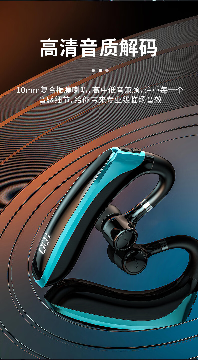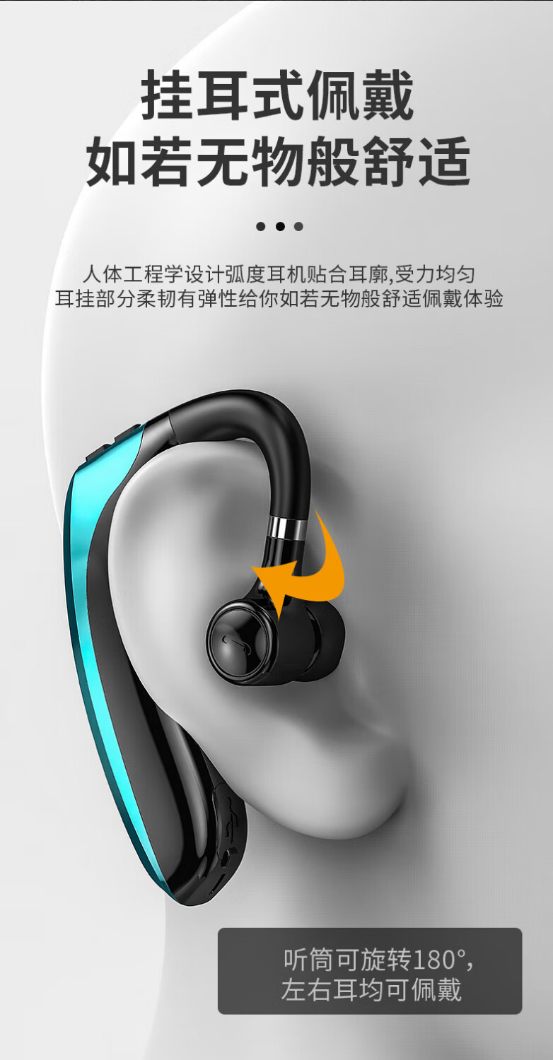 知音e族无线蓝牙耳机挂耳式单个入耳降噪超长续航高端商务开车代驾外卖运动跑步适用智能手机苹果华为vivo 蓝色超越版单耳5.4芯Type-c快充 XY-10