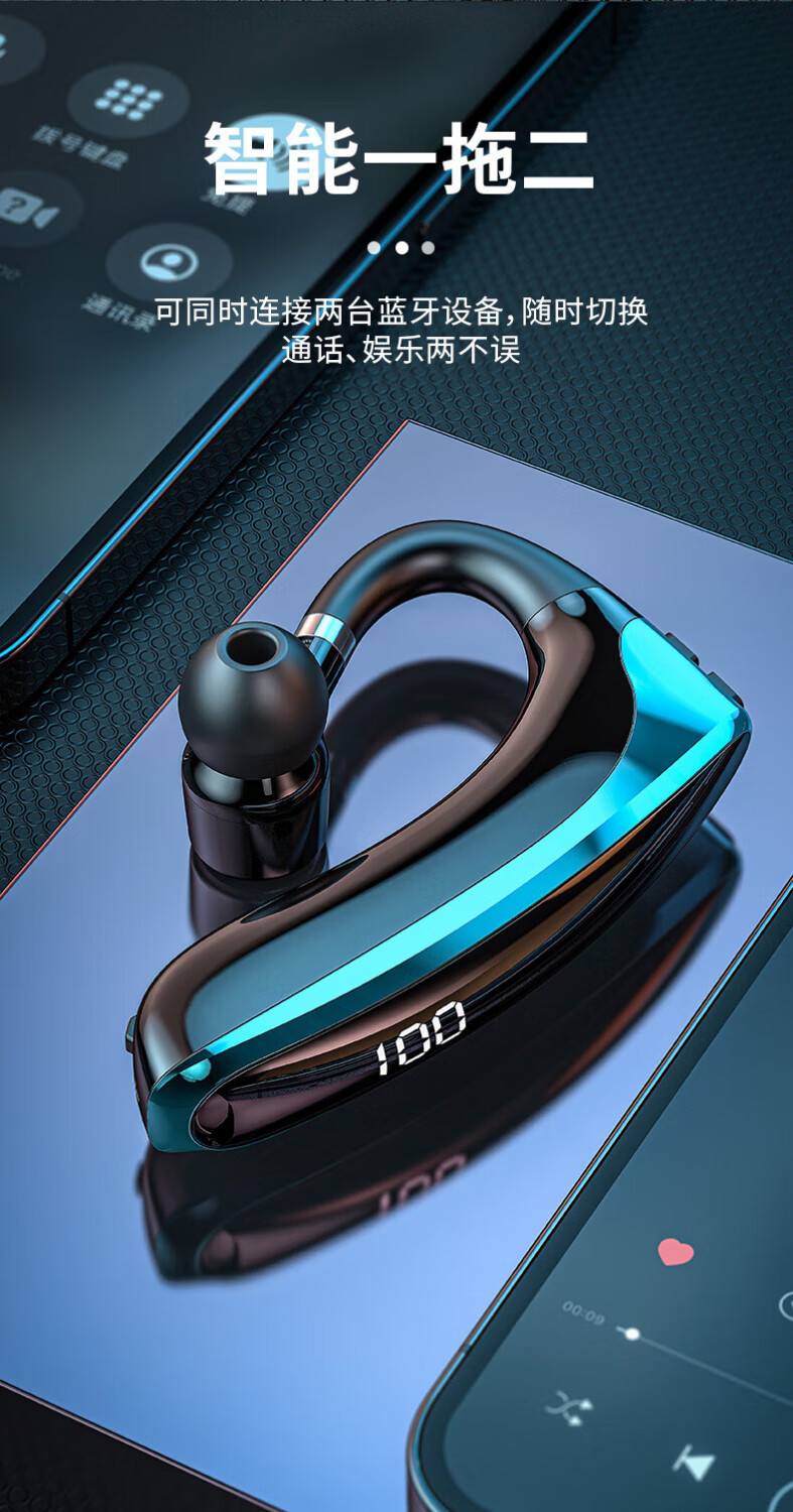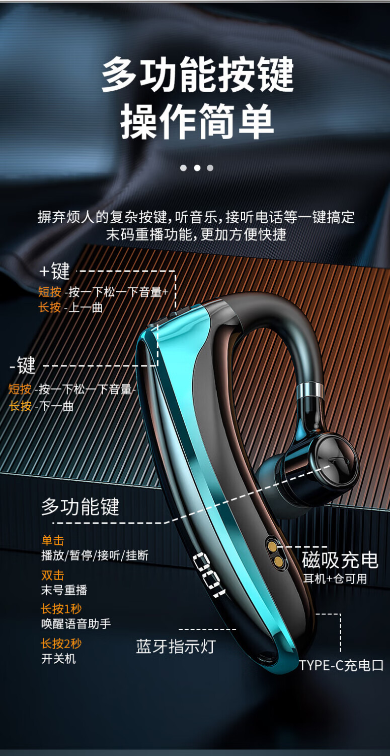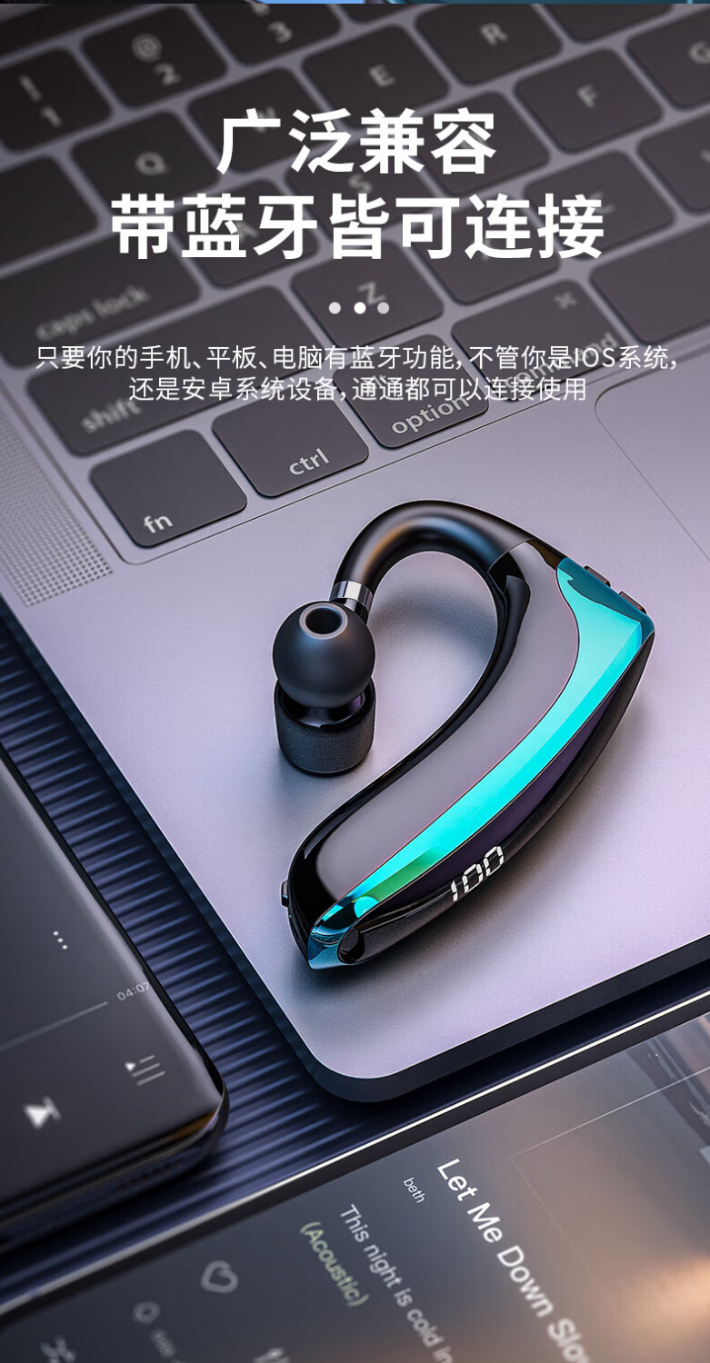 知音e族无线蓝牙耳机挂耳式单个入耳降噪超长续航高端商务开车代驾外卖运动跑步适用智能手机苹果华为vivo 蓝色超越版单耳5.4芯Type-c快充 XY-10