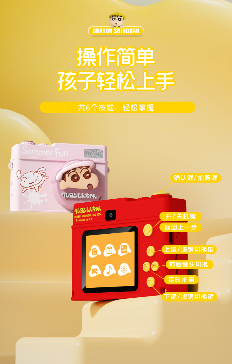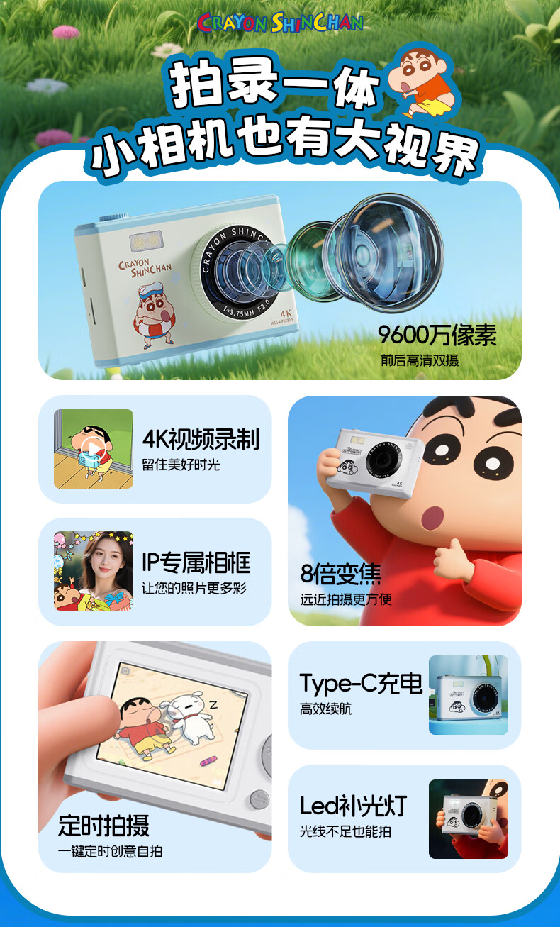 蜡笔小新生日礼物ccd数码相机礼盒送女生闺蜜中小学生校园旅游自拍立得vlog便携实用礼品送女朋友女孩儿童 【手提箱礼盒】粉色相机+32G卡+读卡器