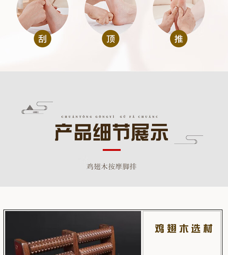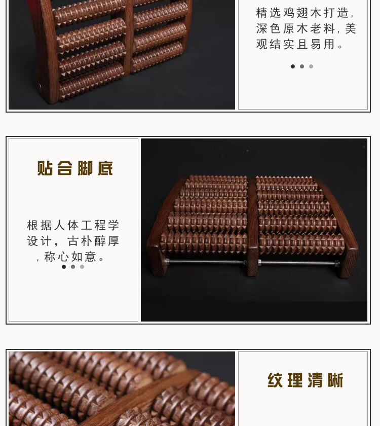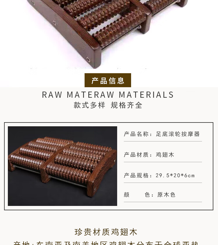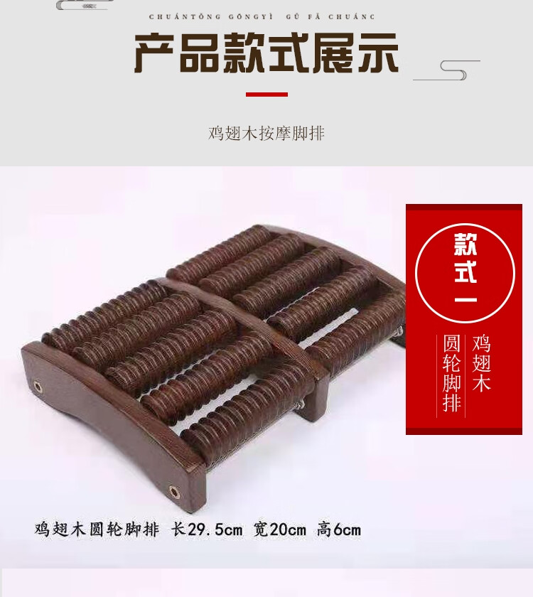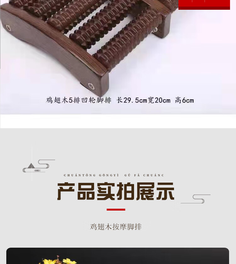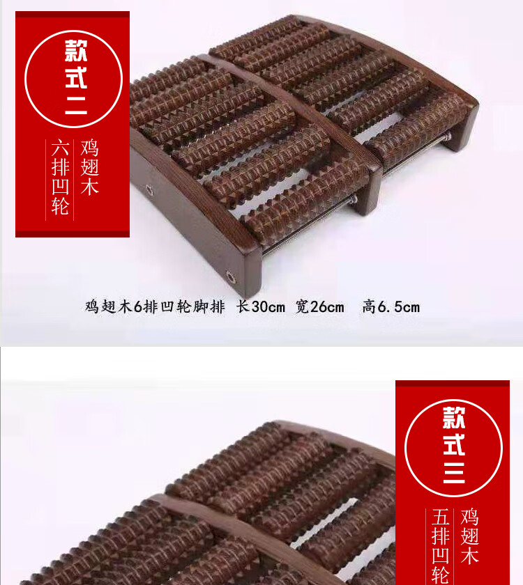 鸡翅木足底按摩器足疗机木质滚轮家用脚底穴位按摩器足部穴位搓排 鸡翅木6排脚排