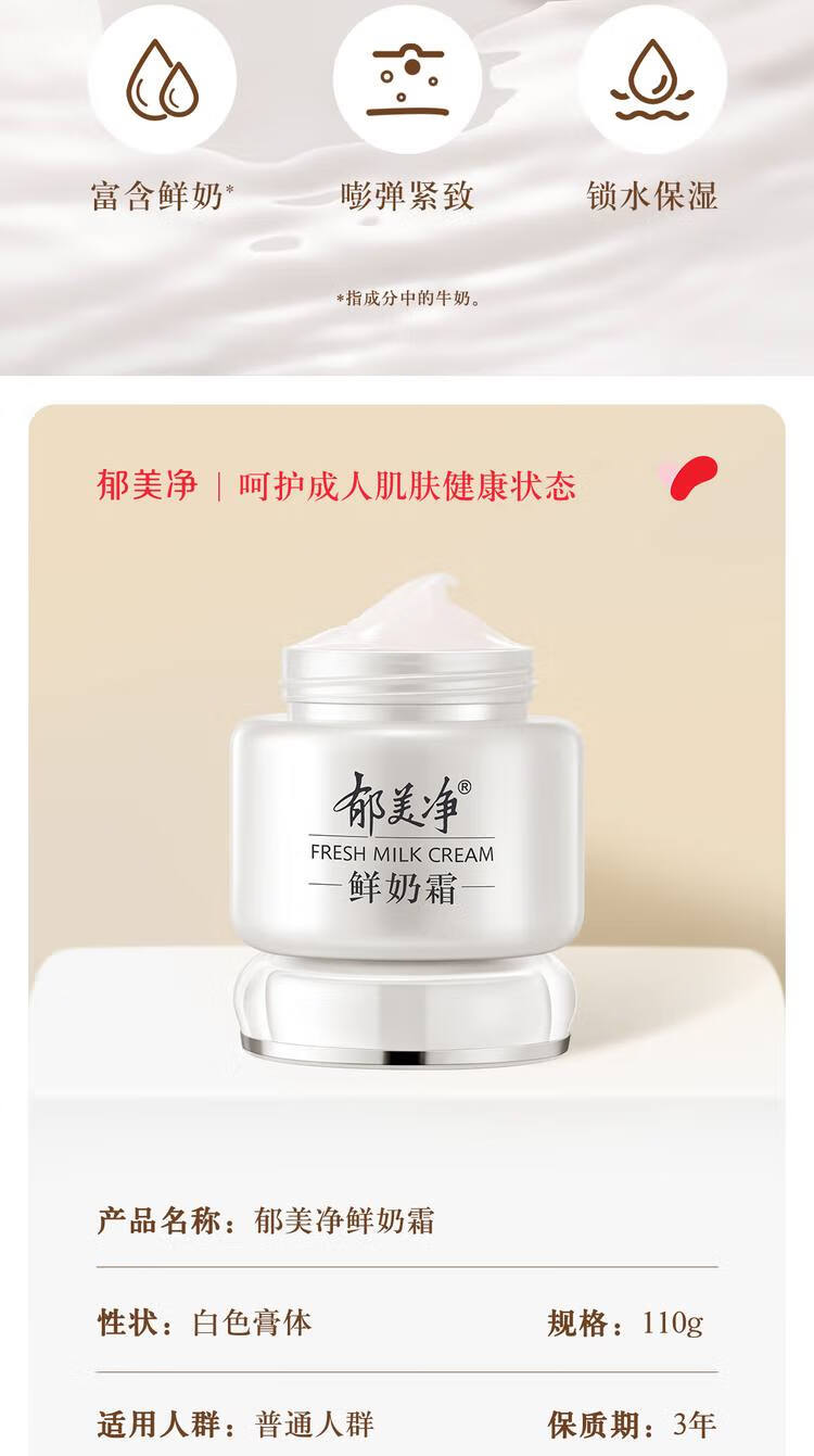 郁美净鲜奶霜成人保湿霜补水滋润四季面霜润肤霜擦脸油高保湿护肤品 【优选】鲜奶霜110g+乳液108g