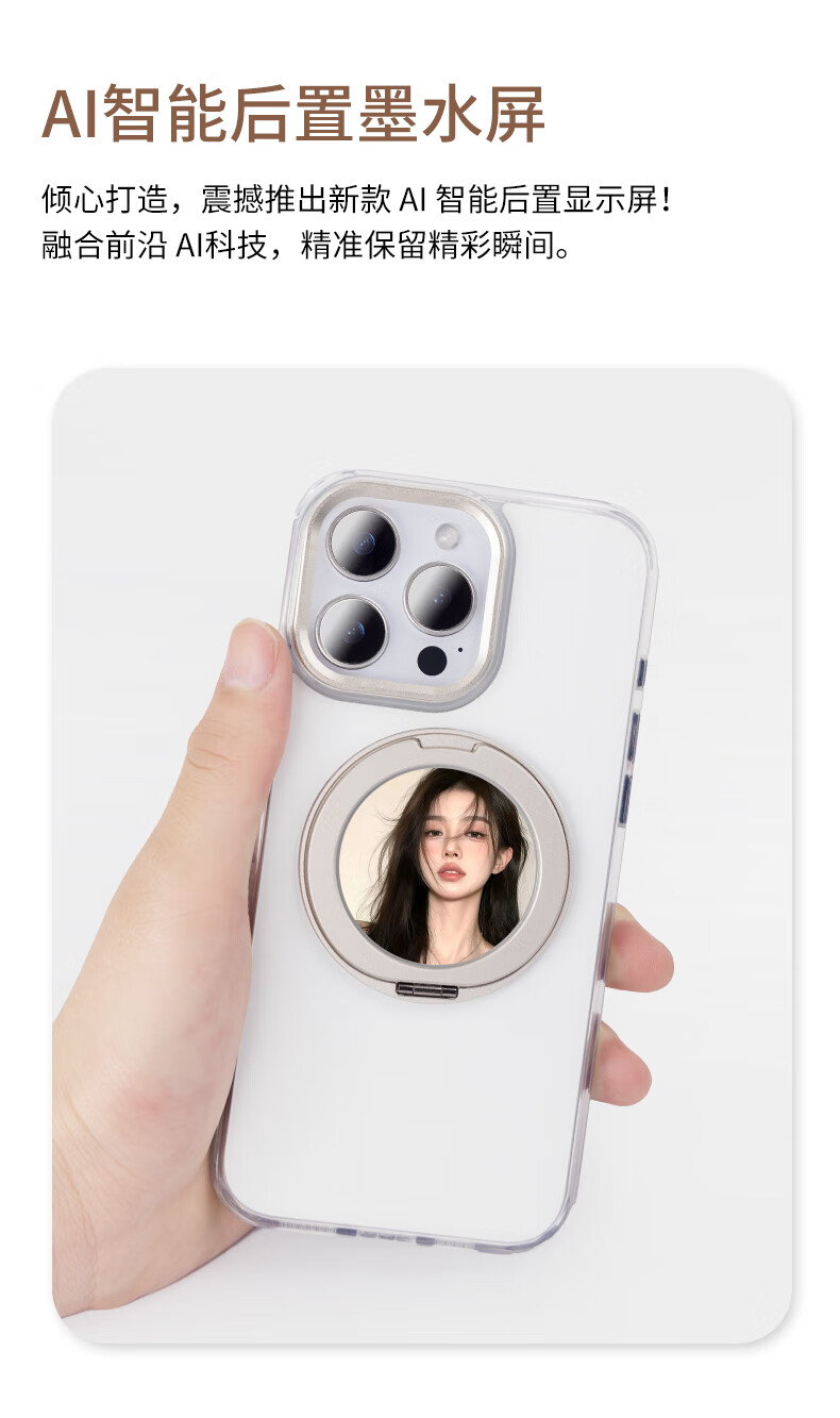 译壳手机壳iPhone16promax 投屏手机壳苹果15/14/13promax手机套DIY编辑支架带相机按键 墨水屏百变壳 草莓奶昔粉-支架款 iPhone13 pro
