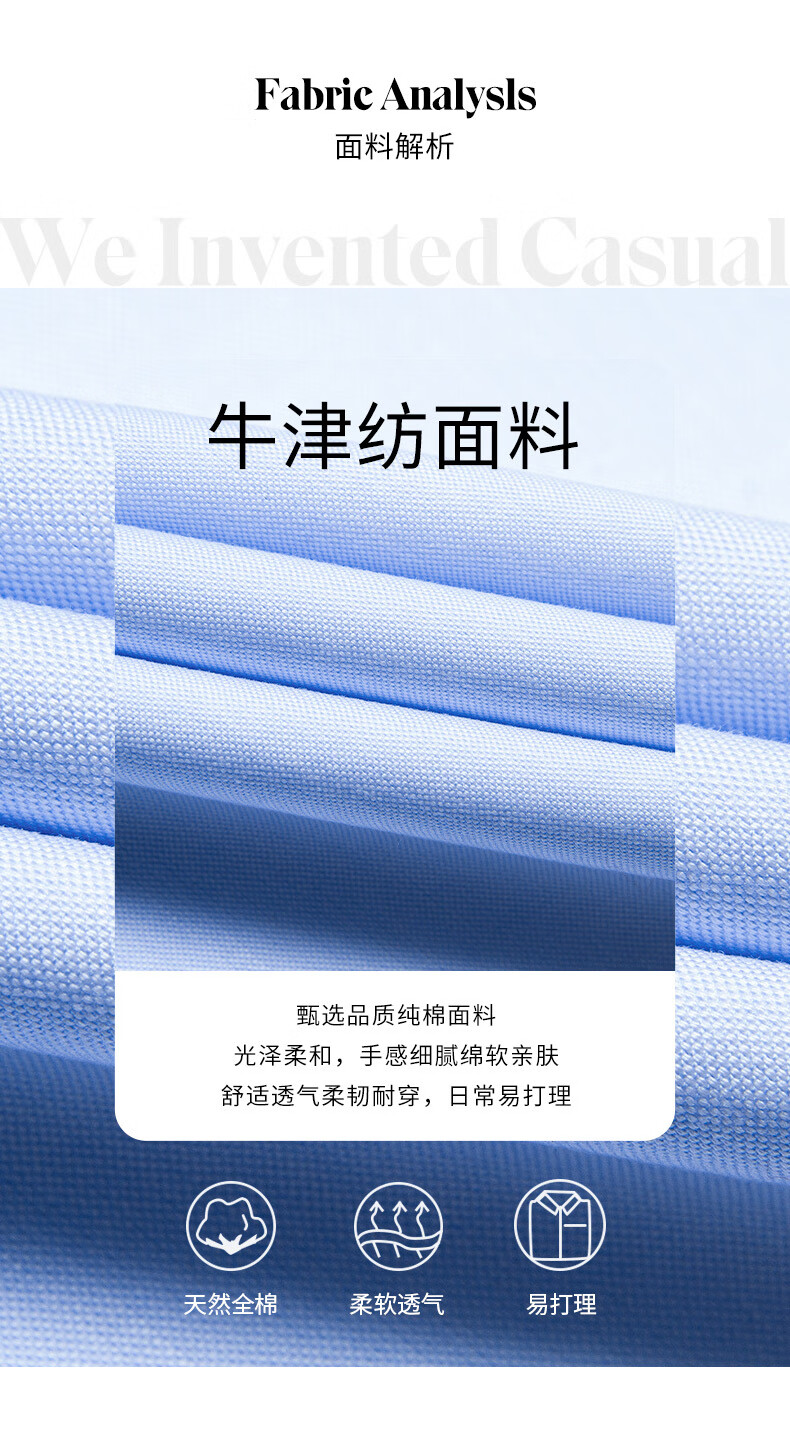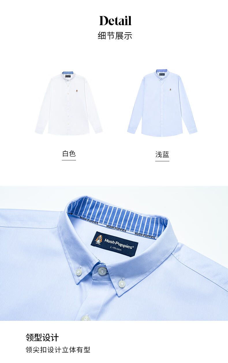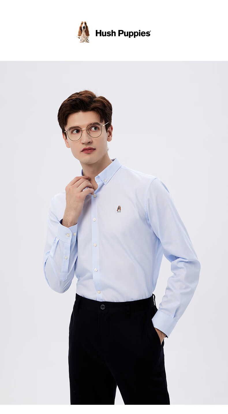 暇步士(Hush Puppies)男装春季新款纯棉基础款商务通勤休闲衬衫 025浅蓝2 L